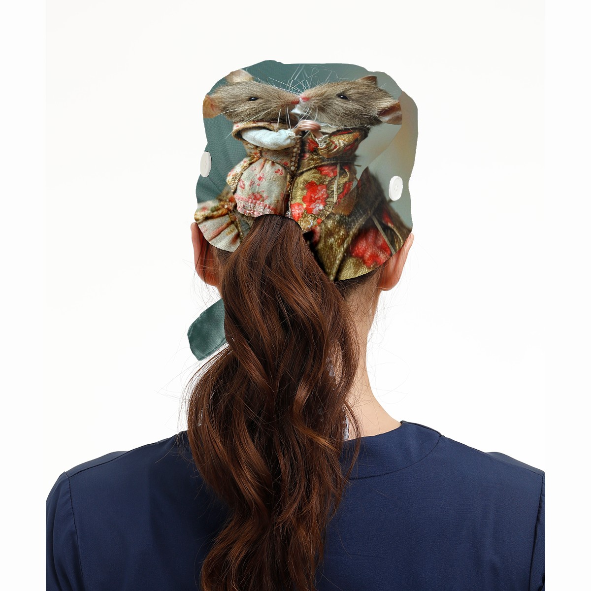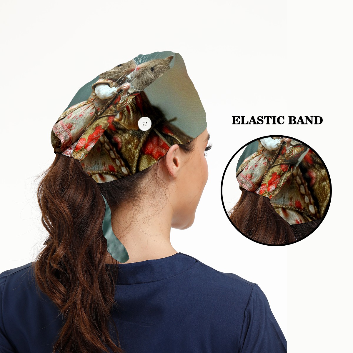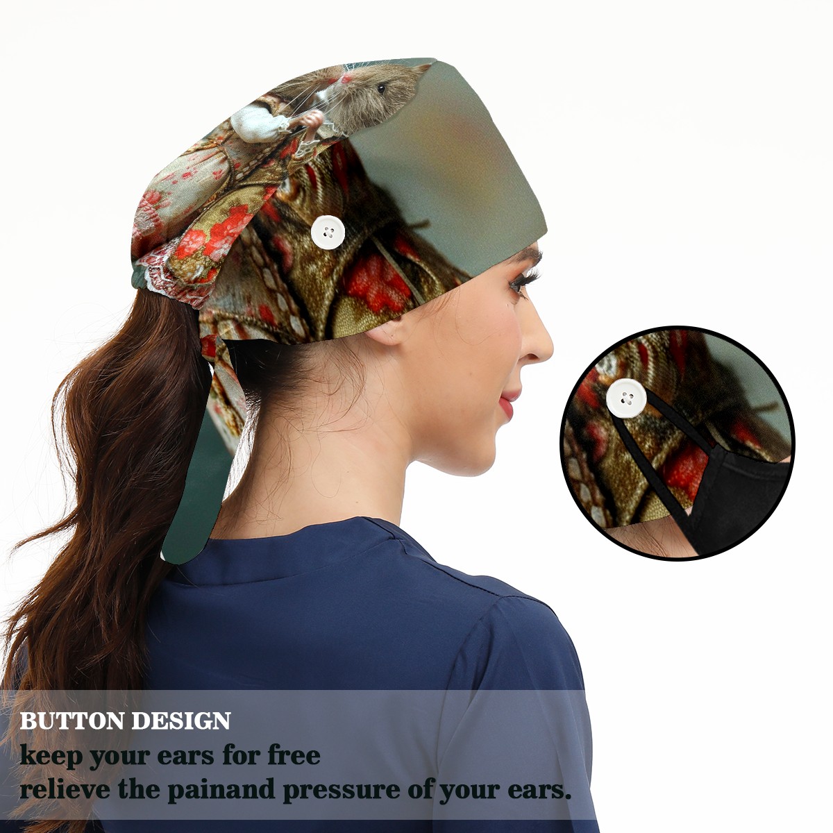 Working Caps with Button&Sweatband Satin Lined Cotton Adjustable Nurse Hats Elastic Band Scrub Cap Surgeon Hat Mouse