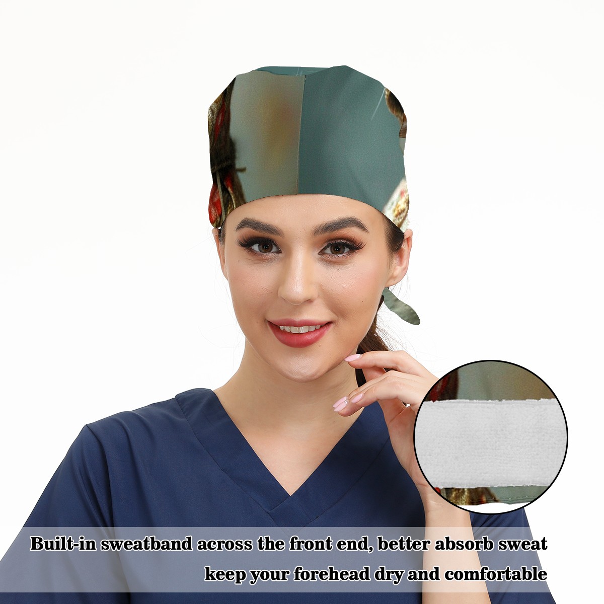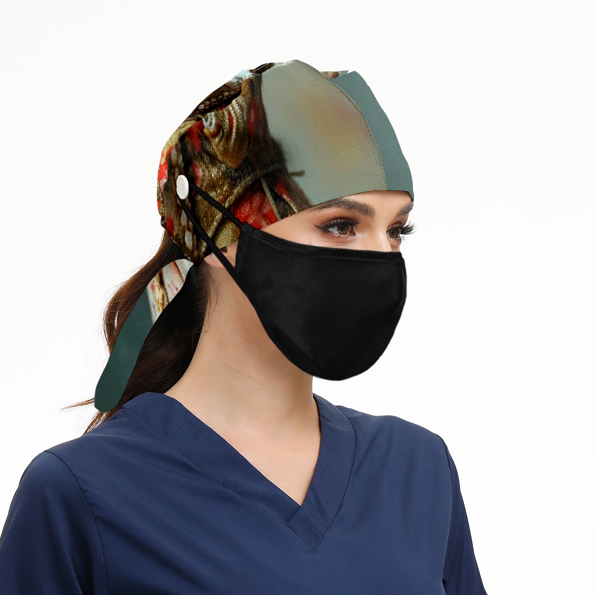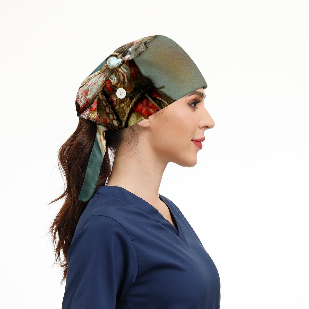 Working Caps with Button&Sweatband Satin Lined Cotton Adjustable Nurse Hats Elastic Band Scrub Cap Surgeon Hat Mouse