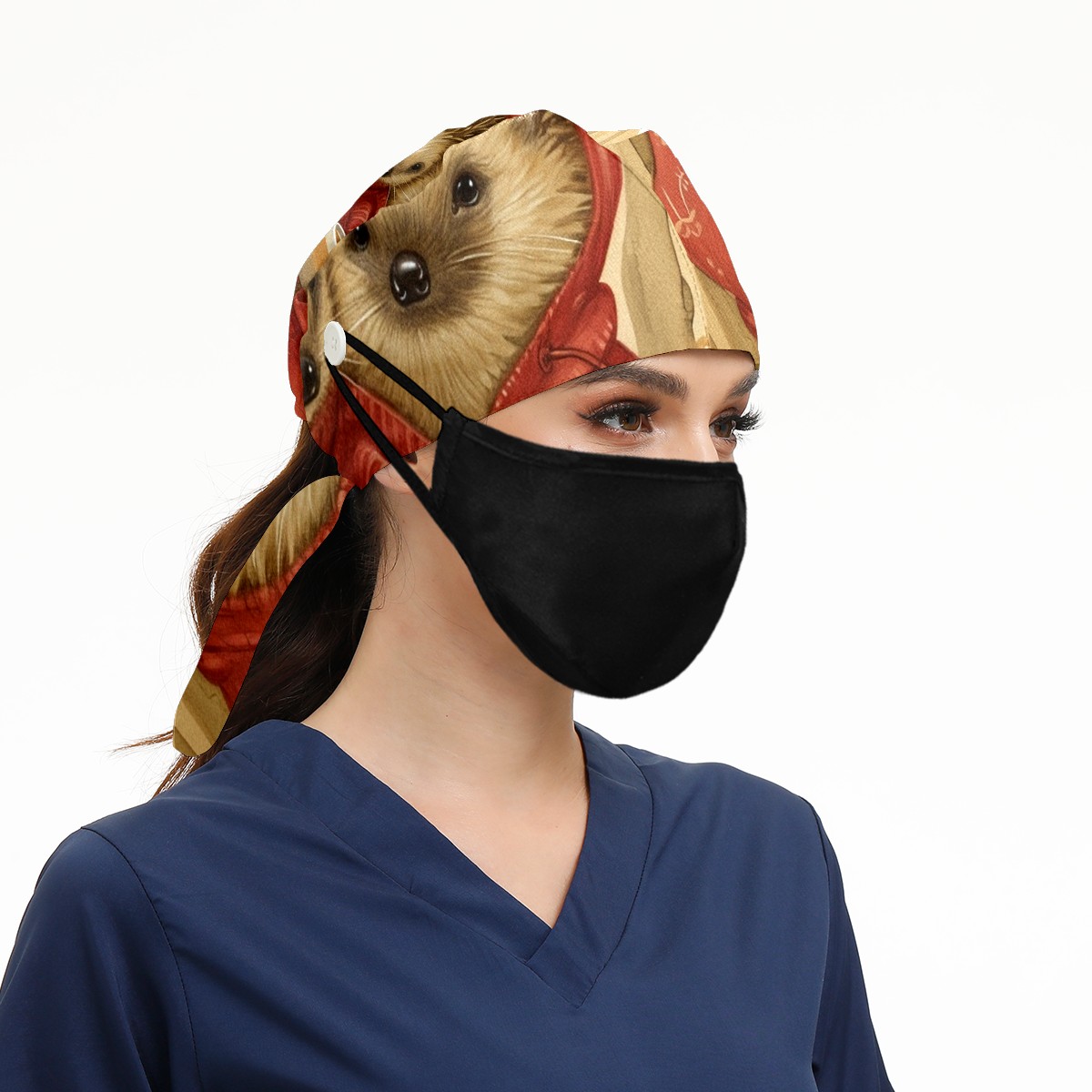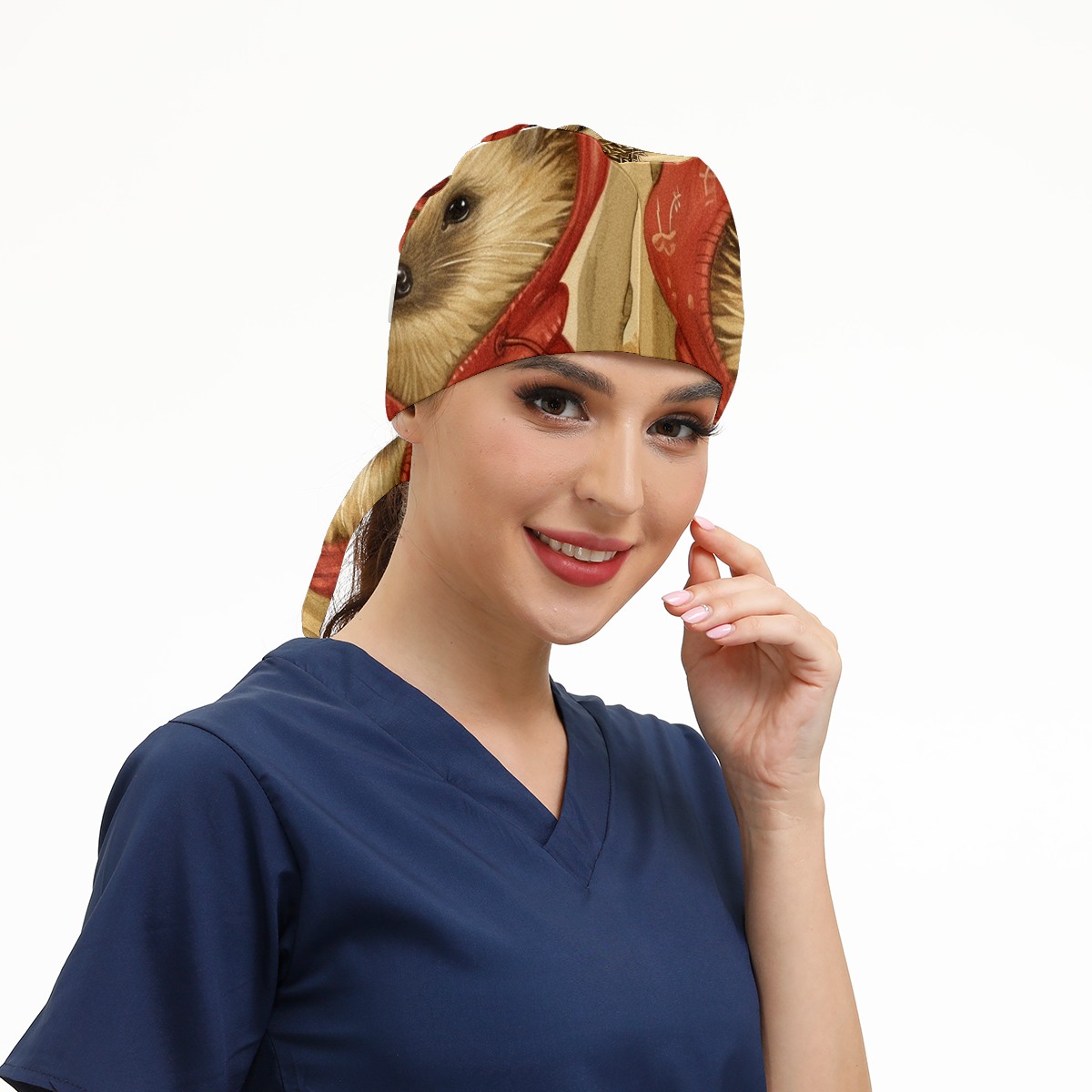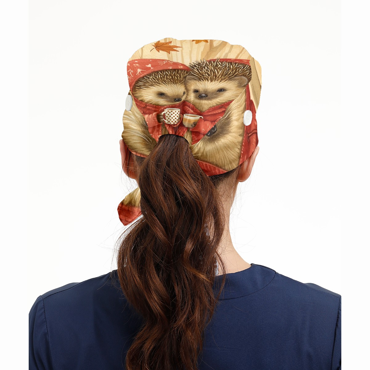 Working Caps with Button&Sweatband Satin Lined Cotton Adjustable Nurse Hats Elastic Band Scrub Cap Surgeon Hat Hedgehog