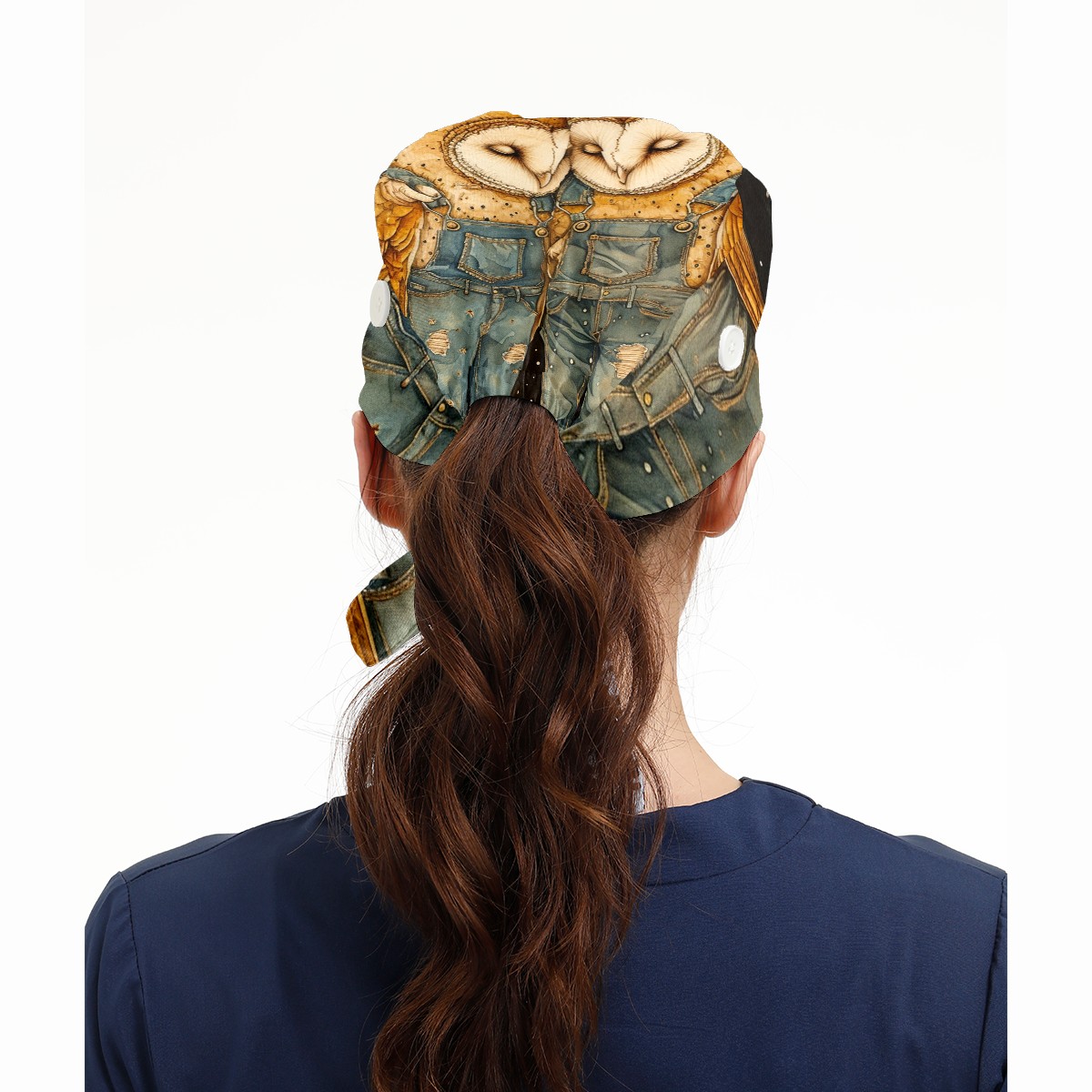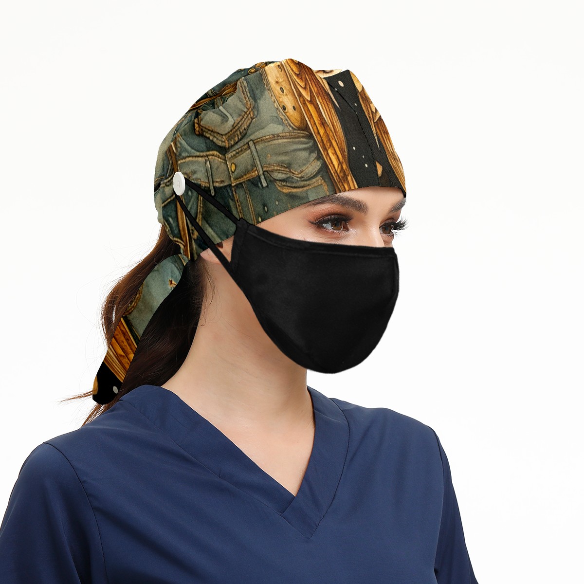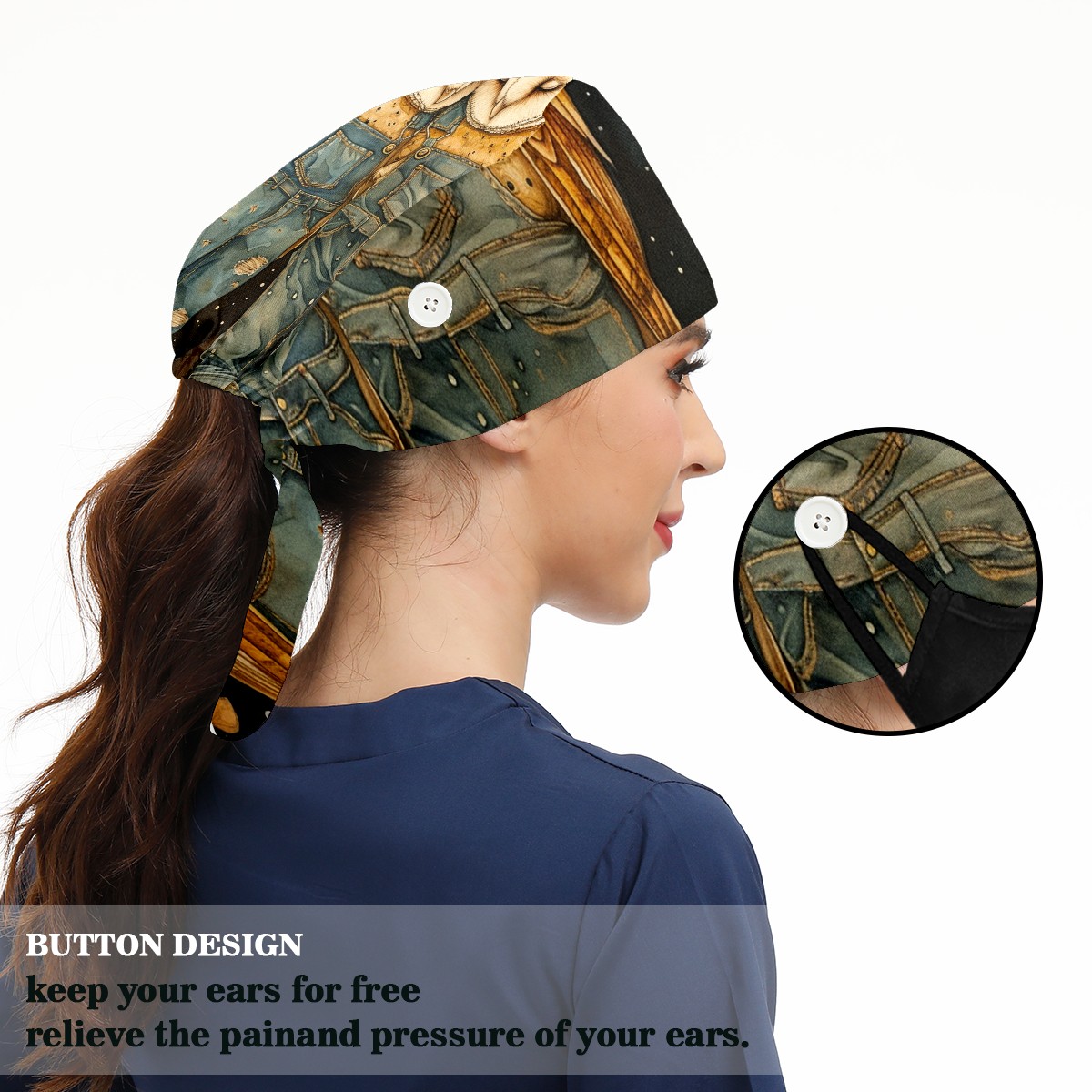 Working Caps with Button&Sweatband Satin Lined Cotton Adjustable Nurse Hats Elastic Band Scrub Cap Surgeon Hat Monkey