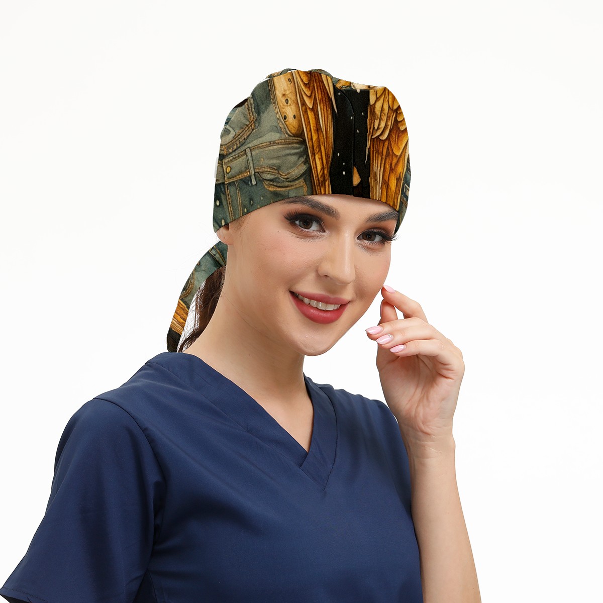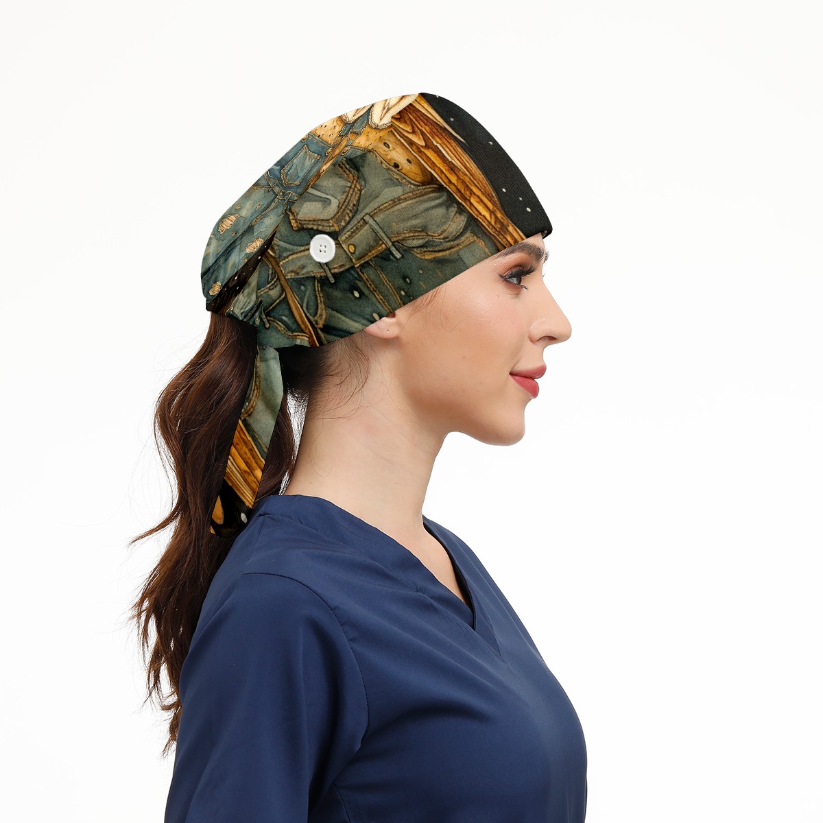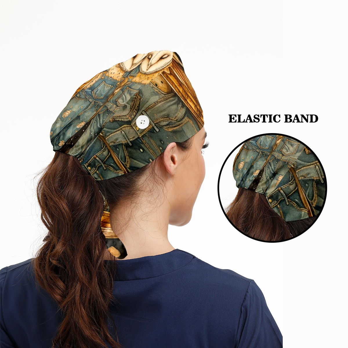 Working Caps with Button&Sweatband Satin Lined Cotton Adjustable Nurse Hats Elastic Band Scrub Cap Surgeon Hat Monkey