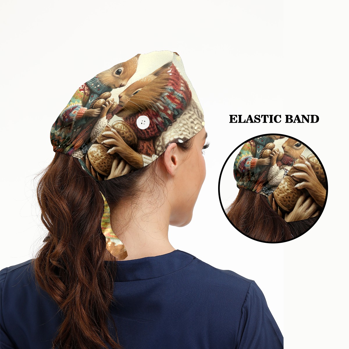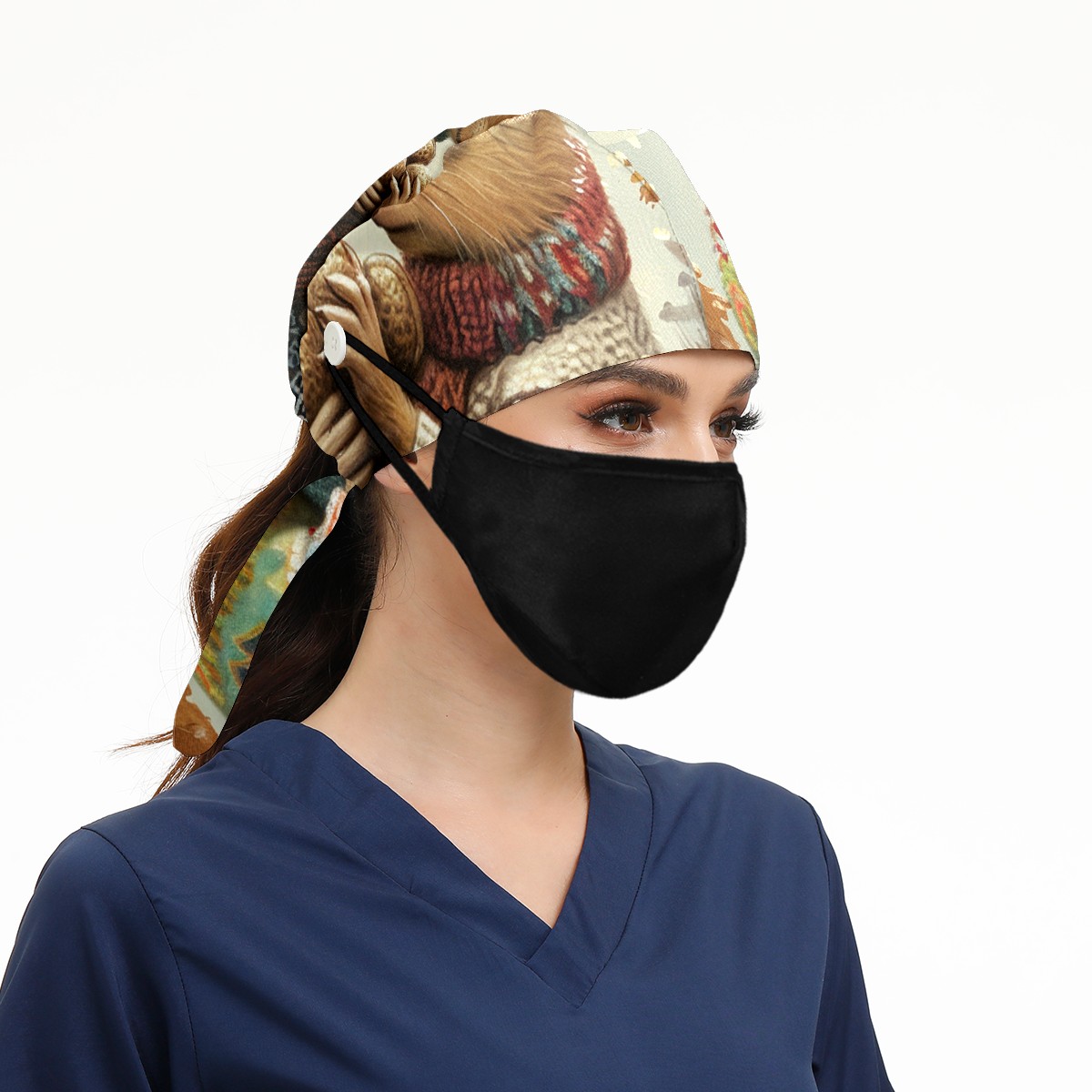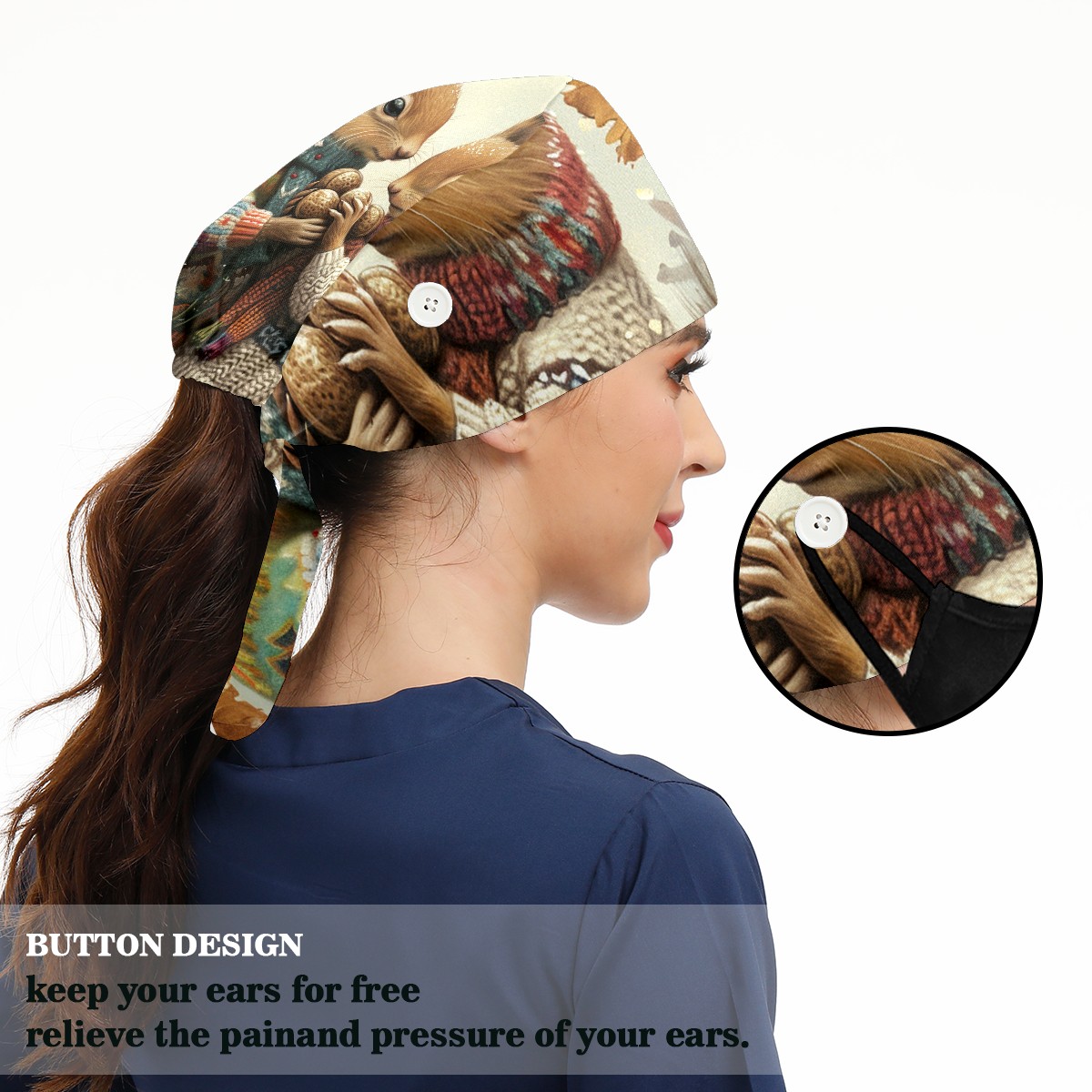 Working Caps with Button&Sweatband Satin Lined Cotton Adjustable Nurse Hats Elastic Band Scrub Cap Surgeon Hat Rabbit