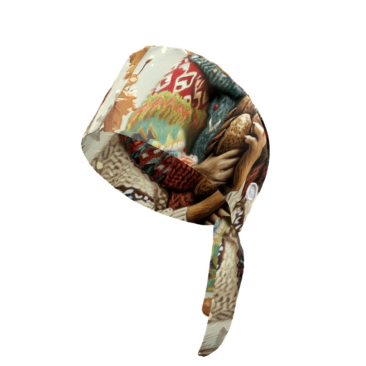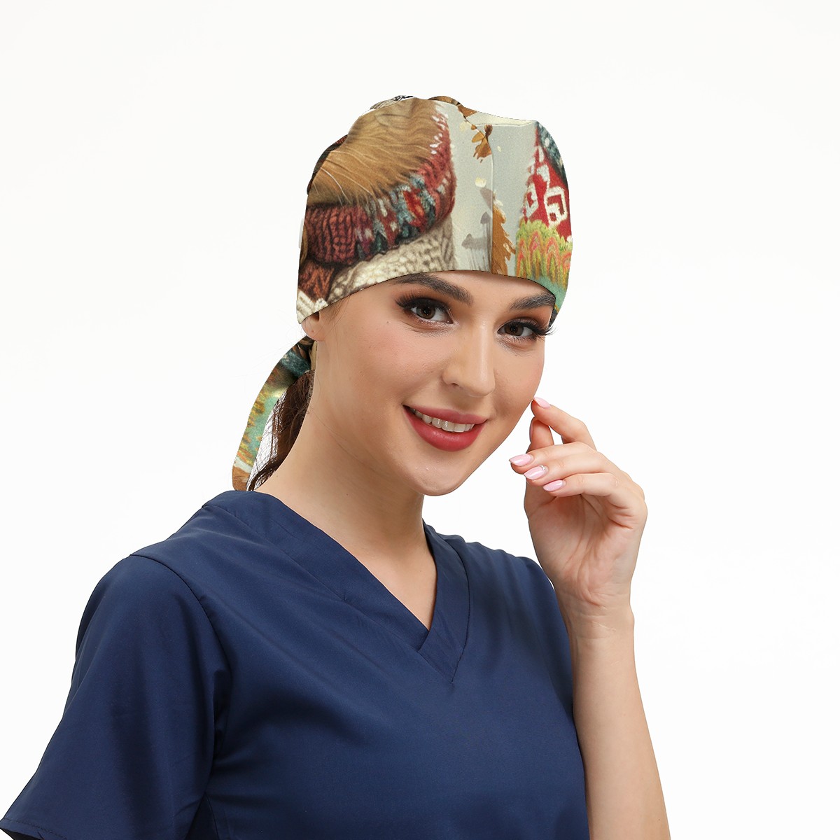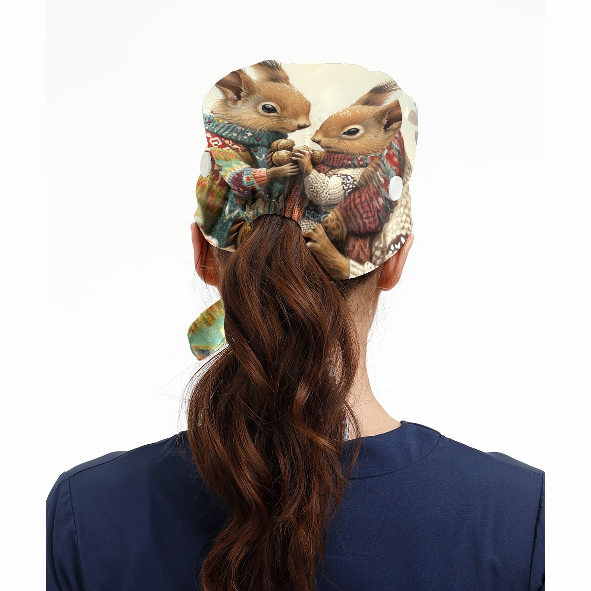 Working Caps with Button&Sweatband Satin Lined Cotton Adjustable Nurse Hats Elastic Band Scrub Cap Surgeon Hat Rabbit