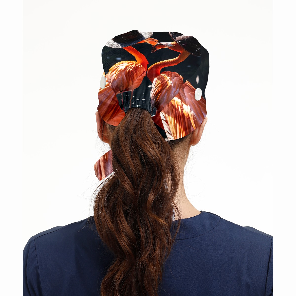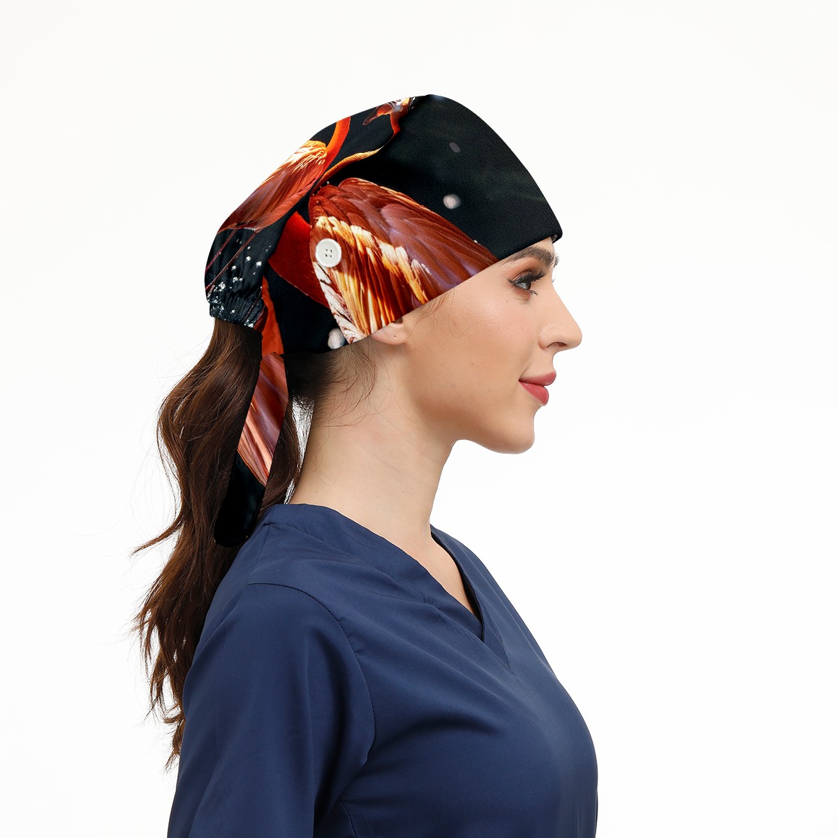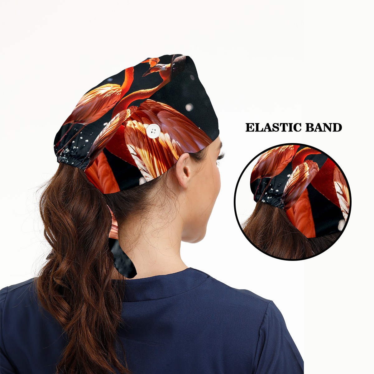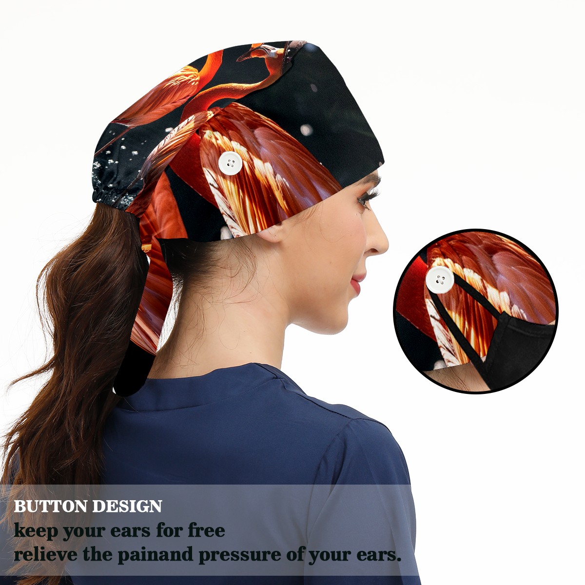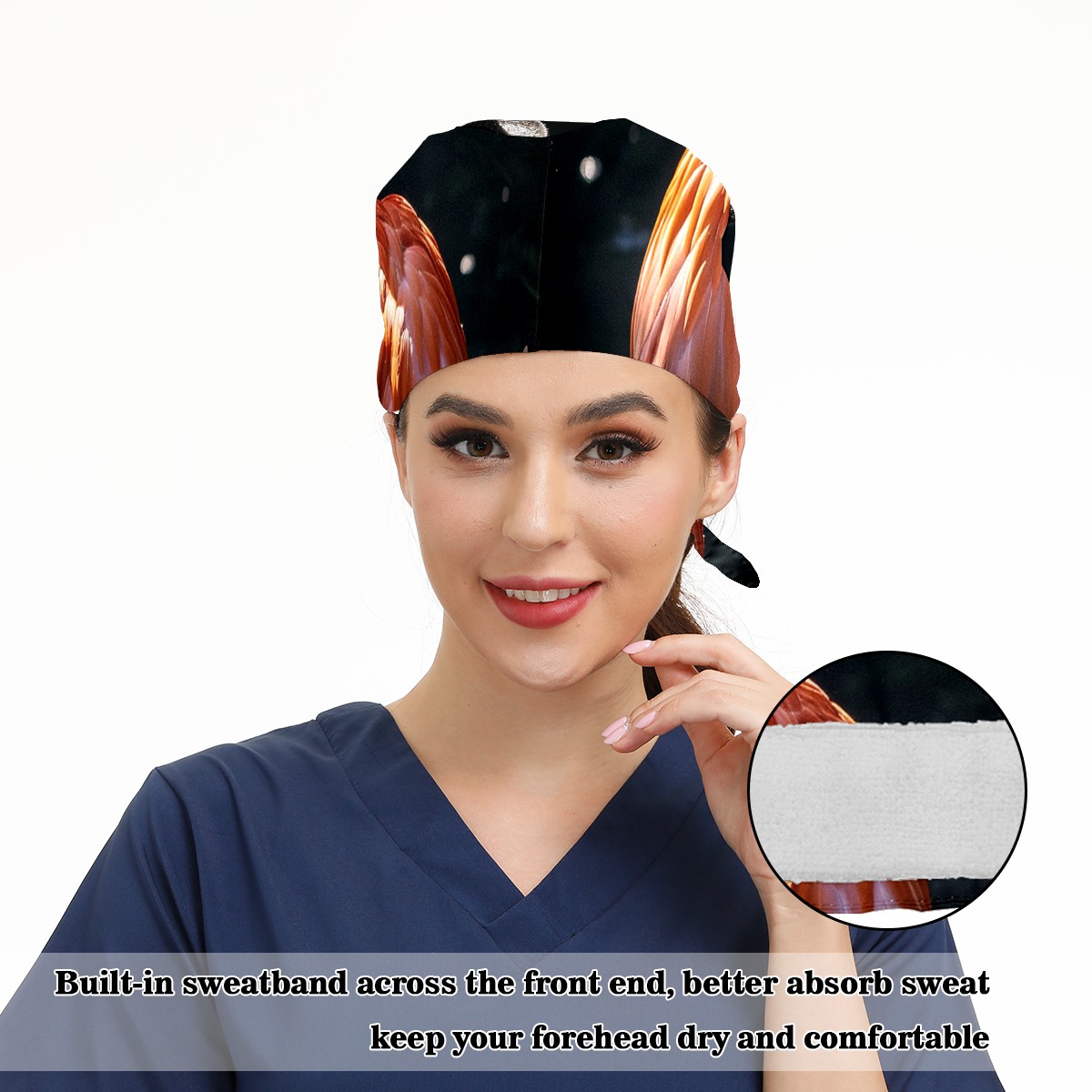 Working Caps with Button&Sweatband Satin Lined Cotton Adjustable Nurse Hats Elastic Band Scrub Cap Surgeon Hat Crane