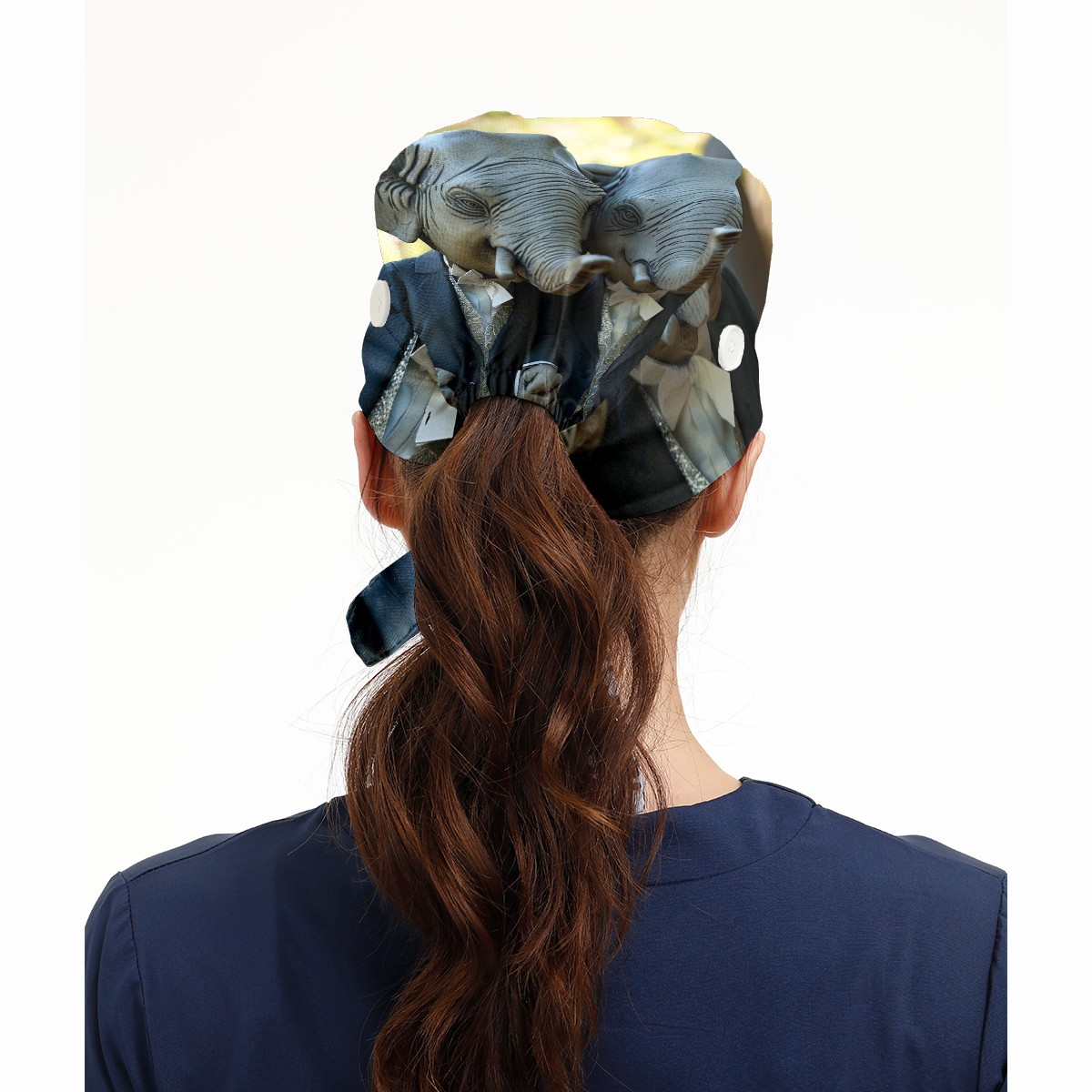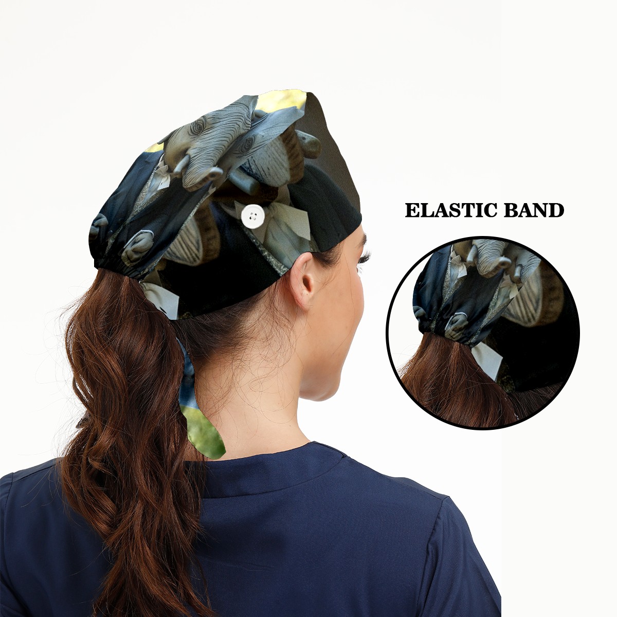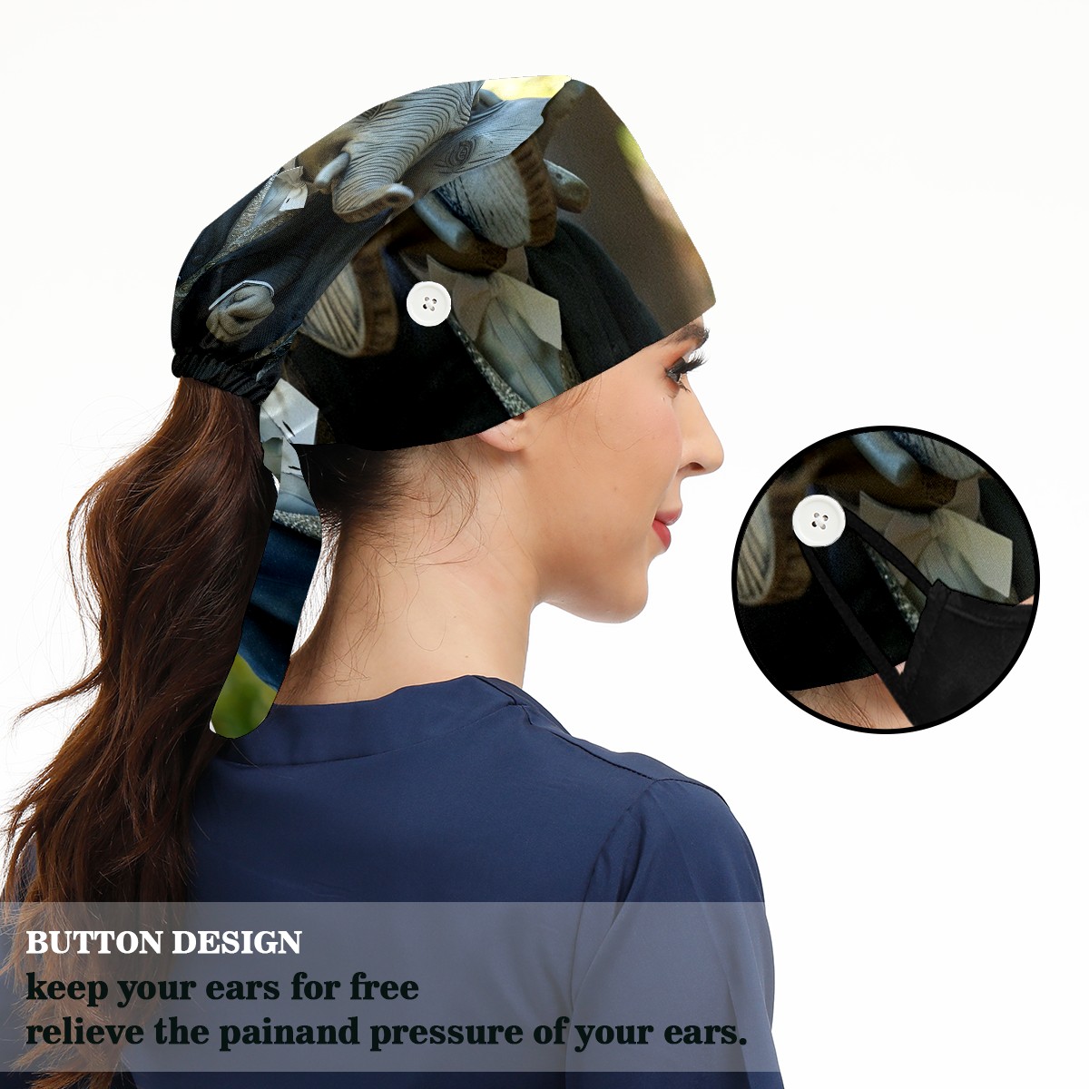 Working Caps with Button&Sweatband Satin Lined Cotton Adjustable Nurse Hats Elastic Band Scrub Cap Surgeon Hat Elephant