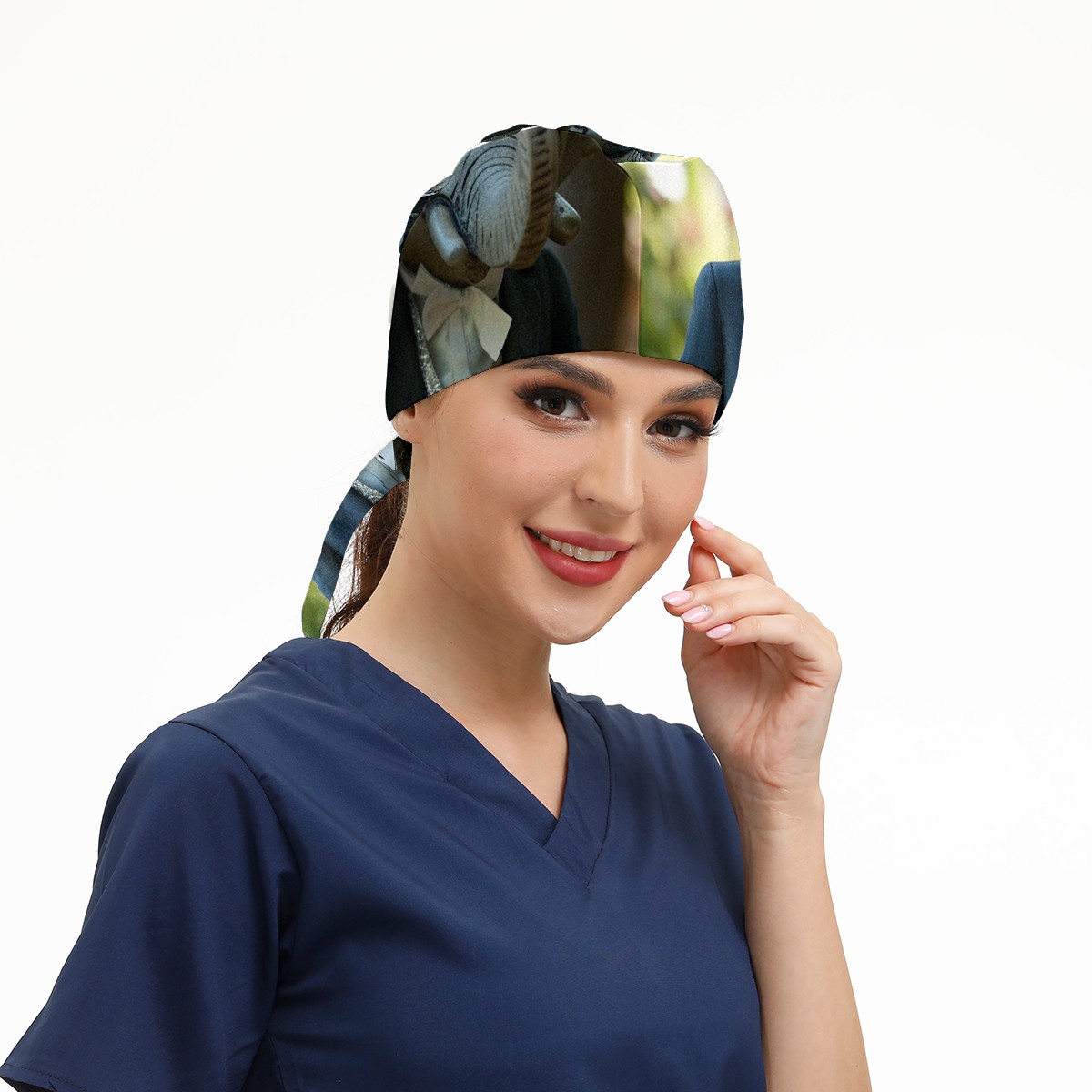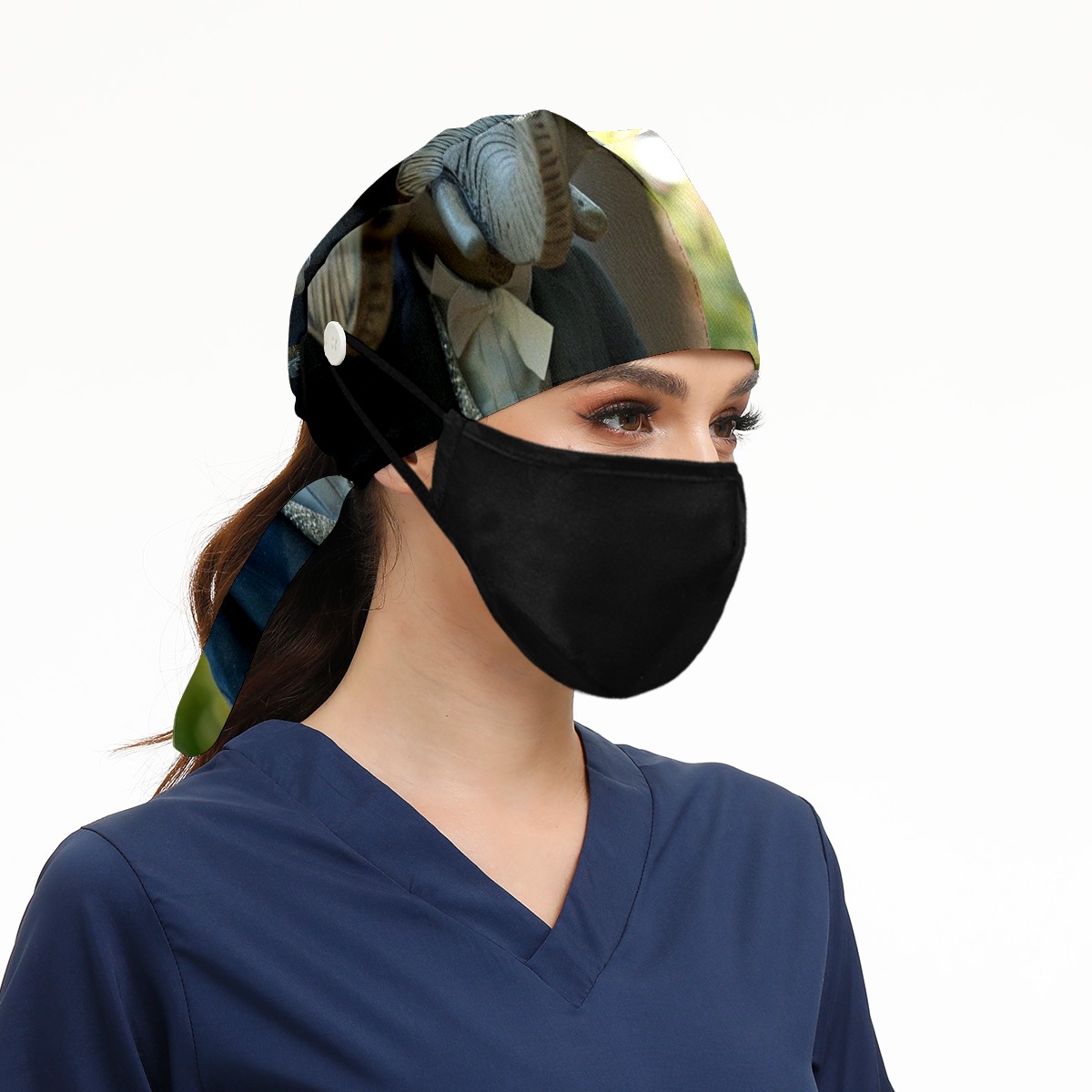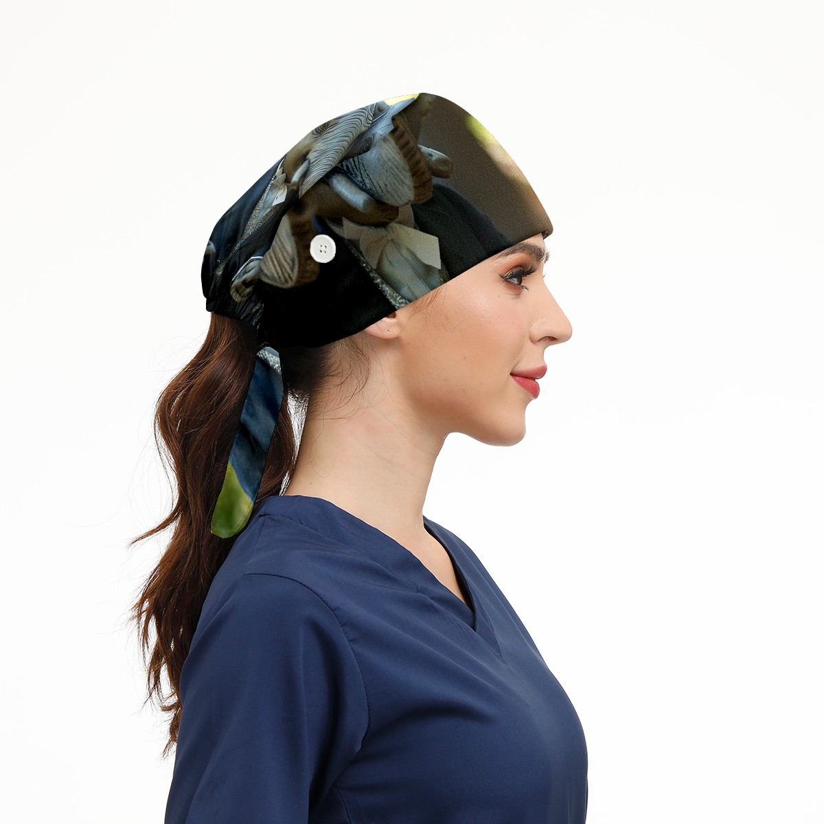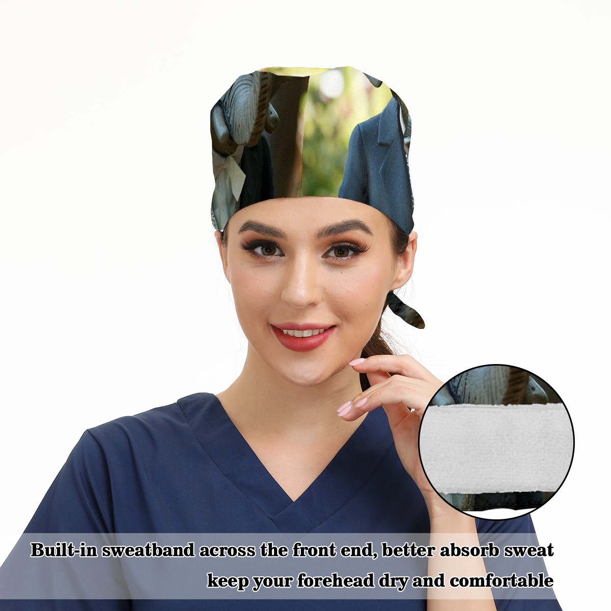Working Caps with Button&Sweatband Satin Lined Cotton Adjustable Nurse Hats Elastic Band Scrub Cap Surgeon Hat Elephant