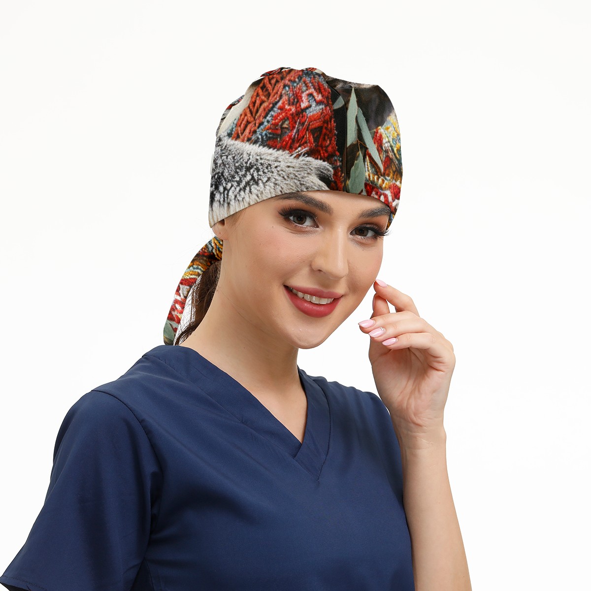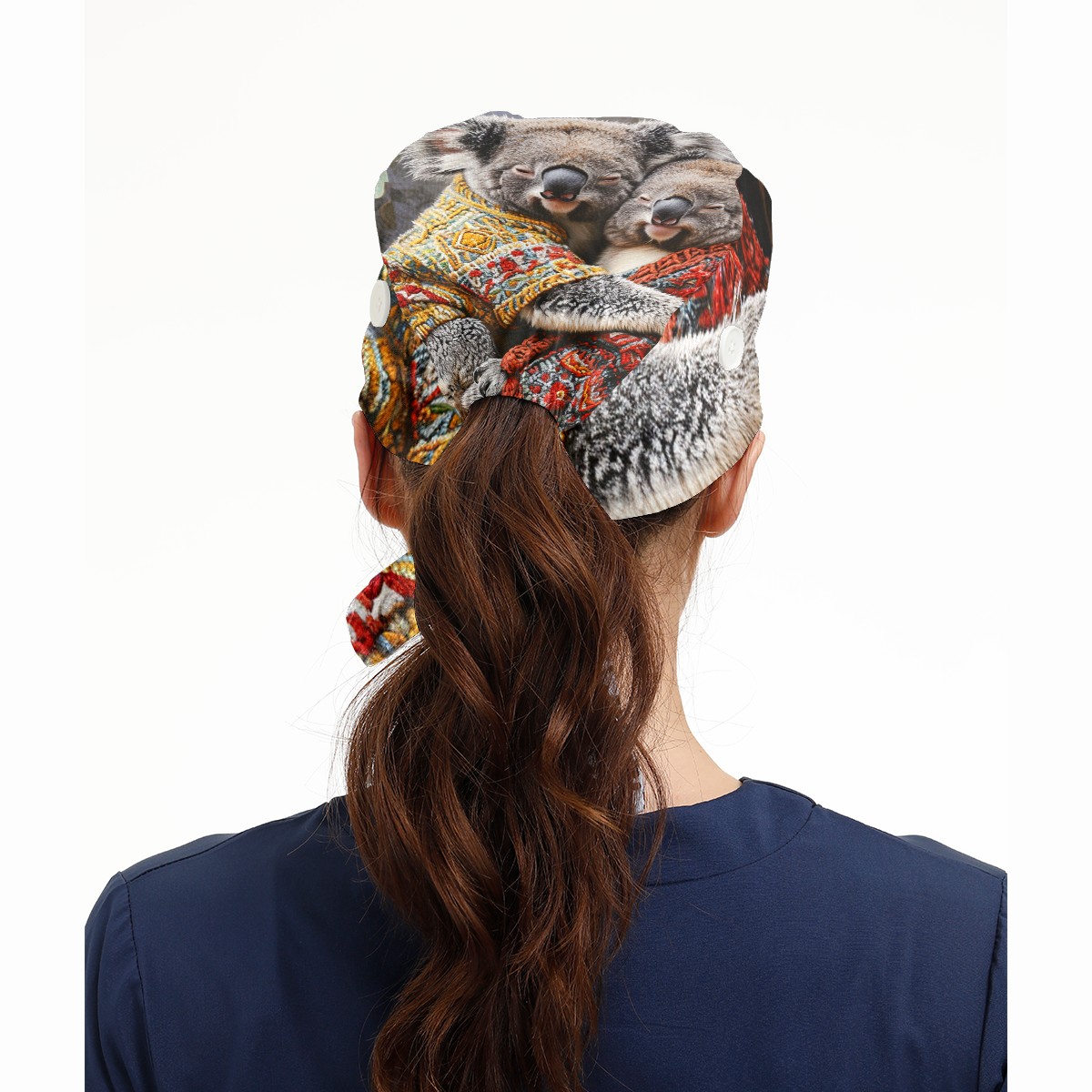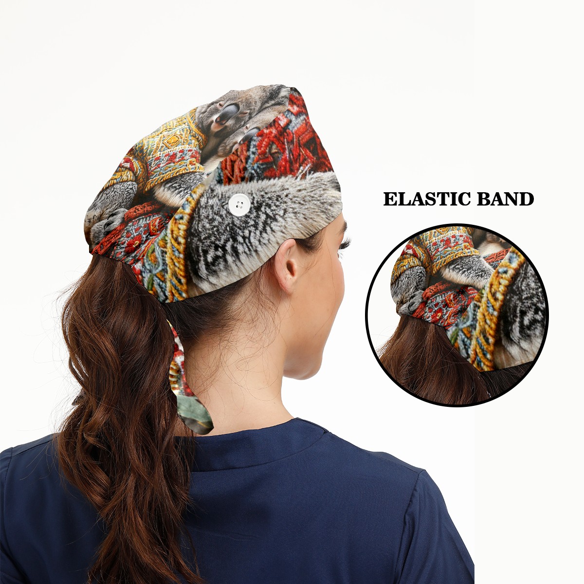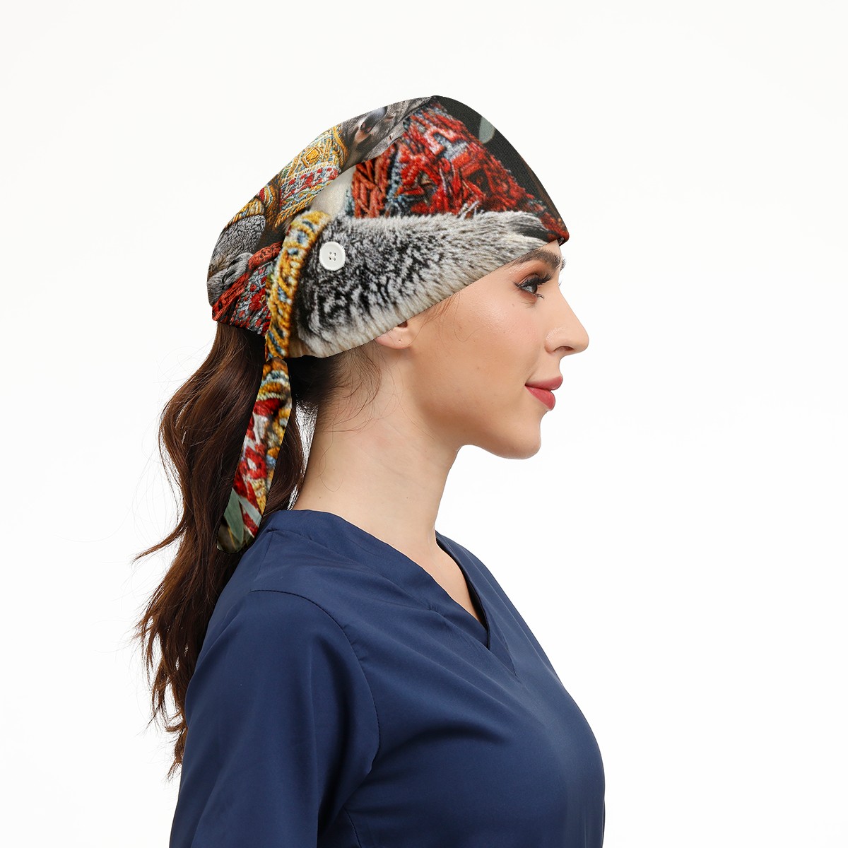 Working Caps with Button&Sweatband Satin Lined Cotton Adjustable Nurse Hats Elastic Band Scrub Cap Surgeon Hat Bear