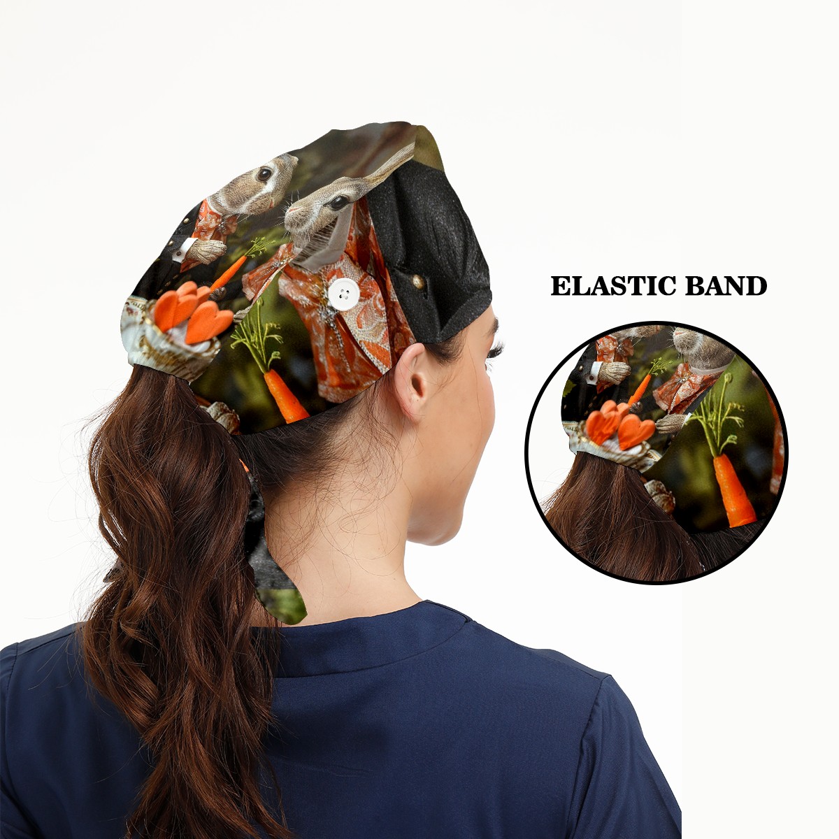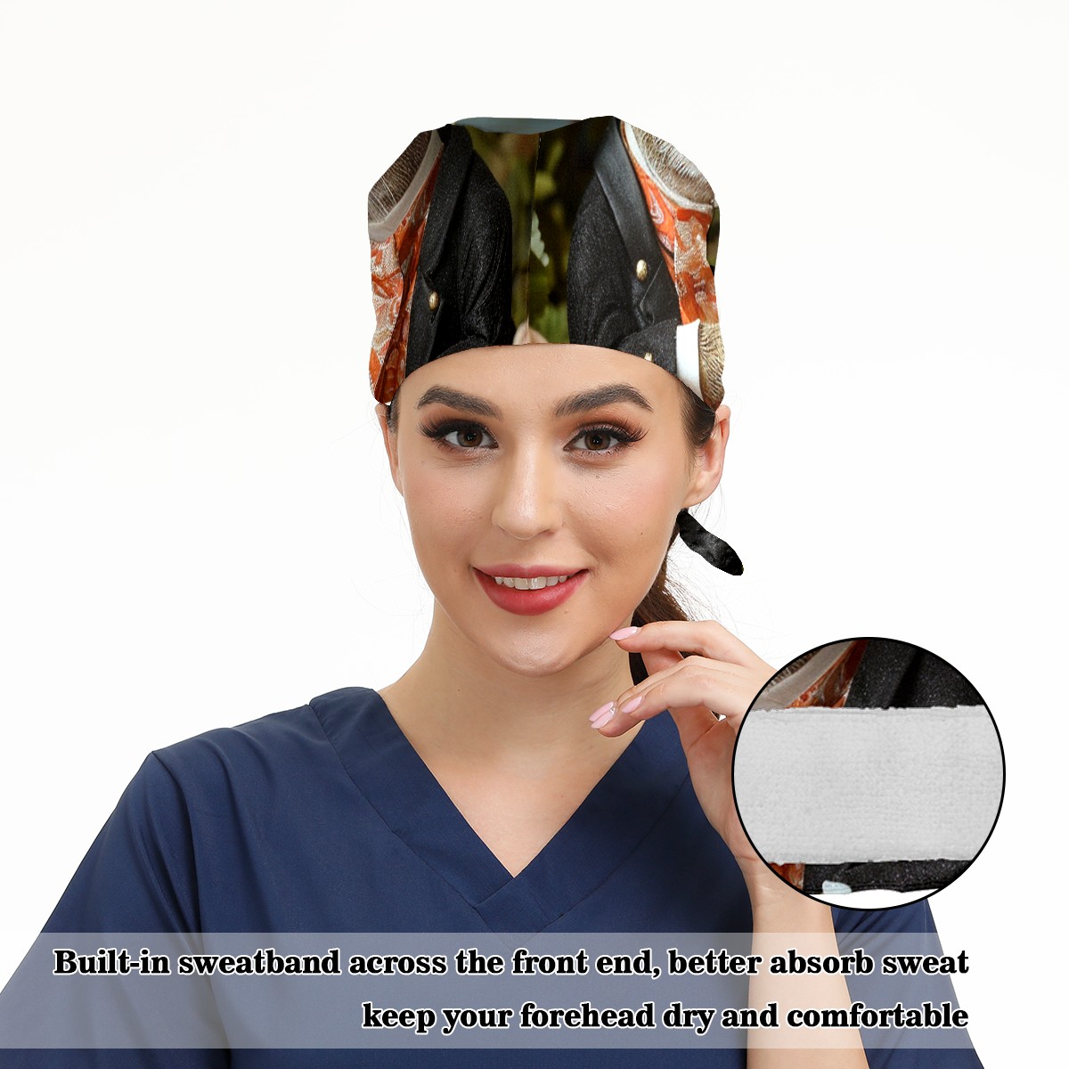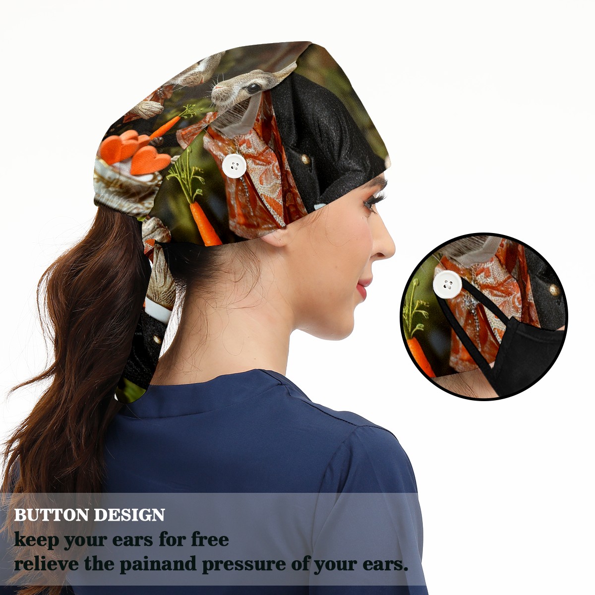 Working Caps with Button&Sweatband Satin Lined Cotton Adjustable Nurse Hats Elastic Band Scrub Cap Surgeon Hat Squirrel