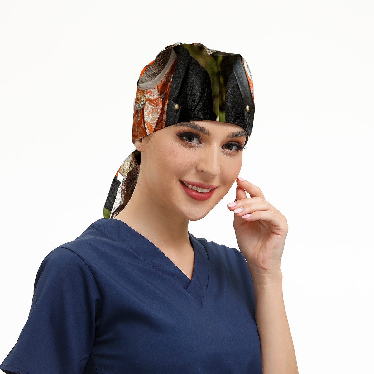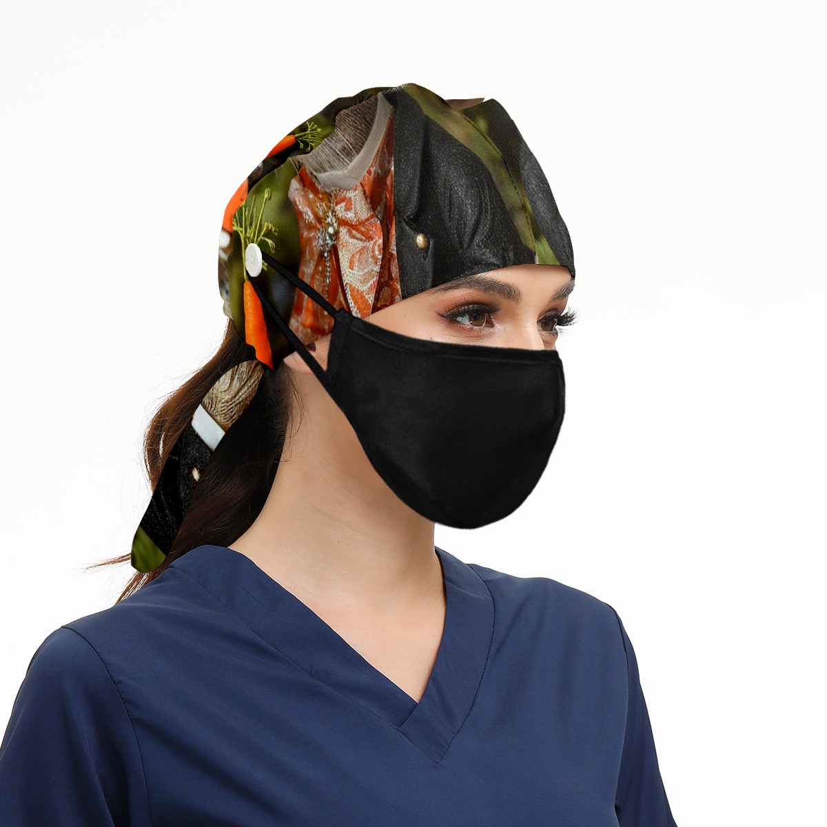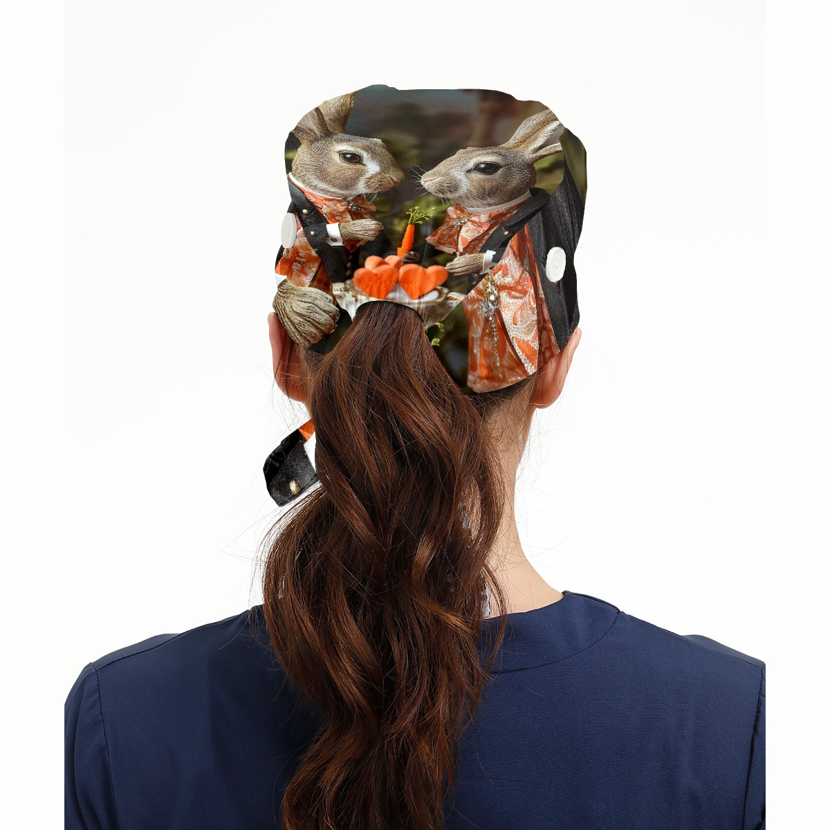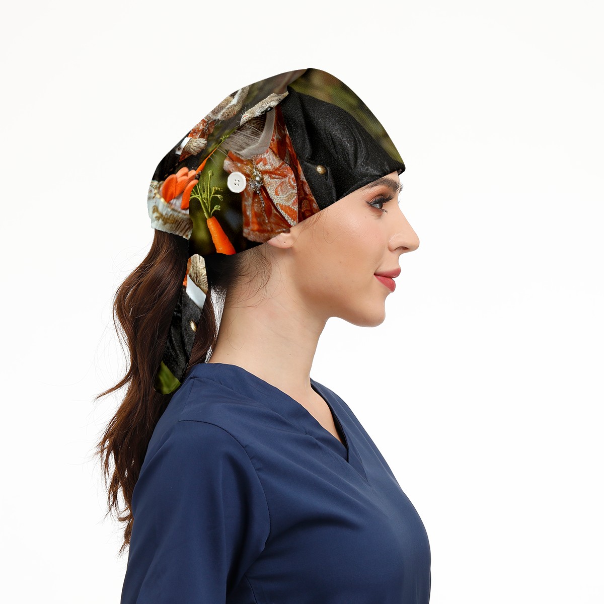 Working Caps with Button&Sweatband Satin Lined Cotton Adjustable Nurse Hats Elastic Band Scrub Cap Surgeon Hat Squirrel