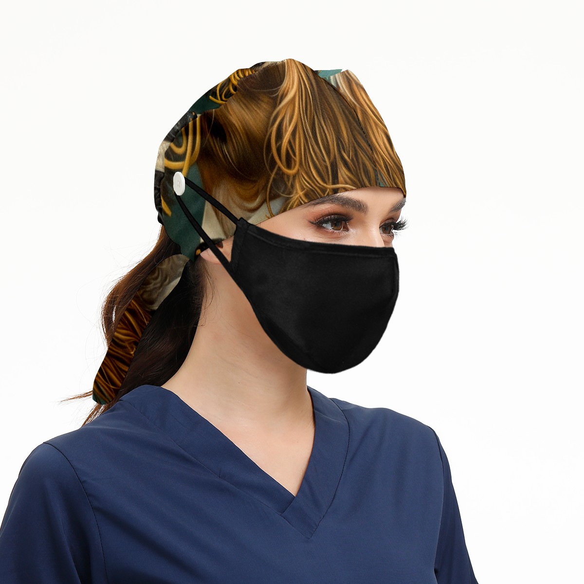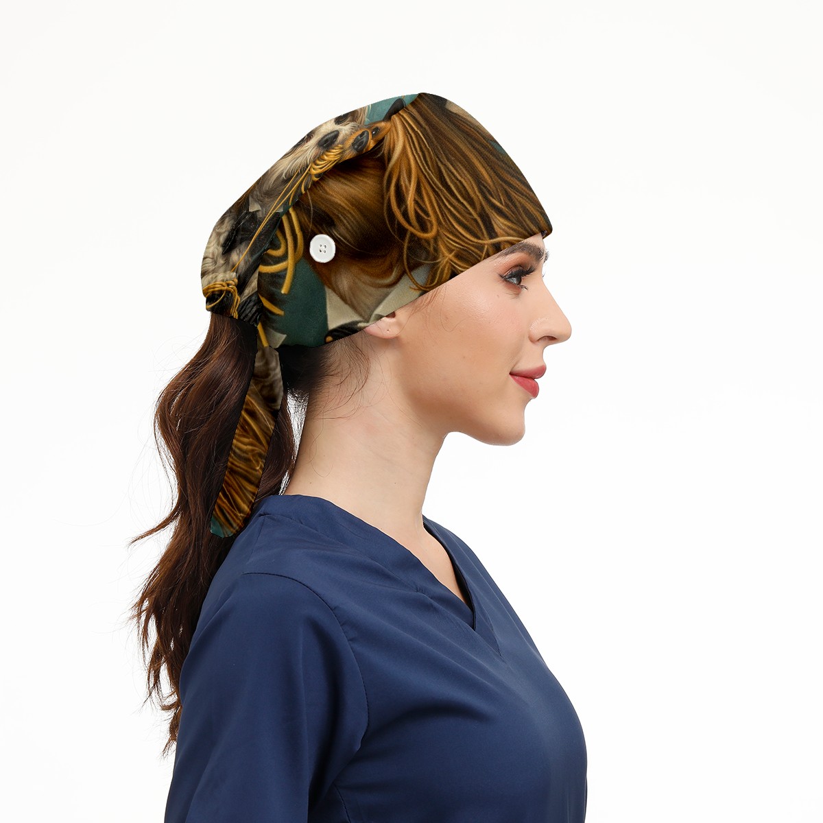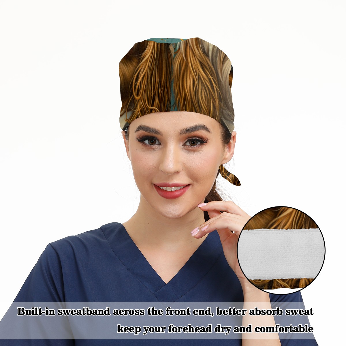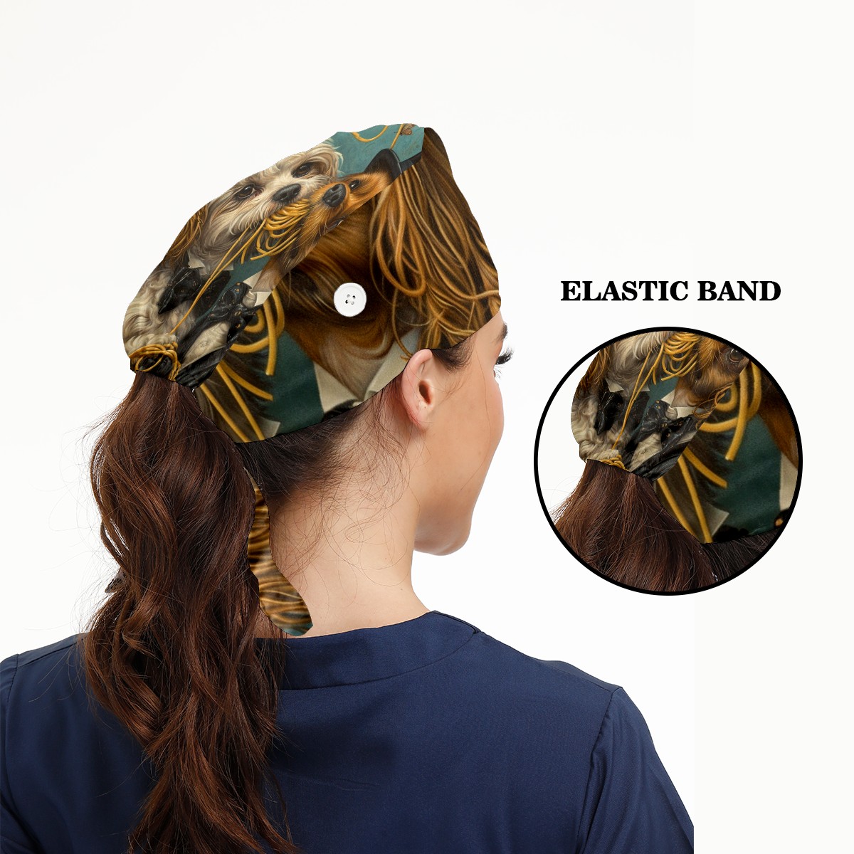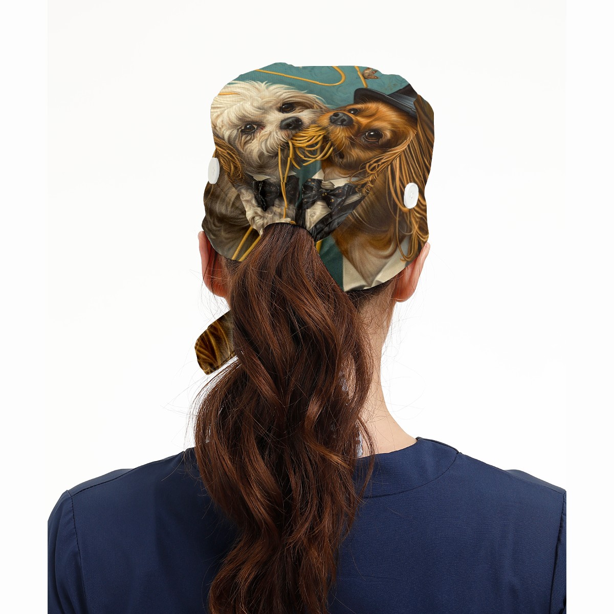 Working Caps with Button&Sweatband Satin Lined Cotton Adjustable Nurse Hats Elastic Band Scrub Cap Surgeon Hat Dog