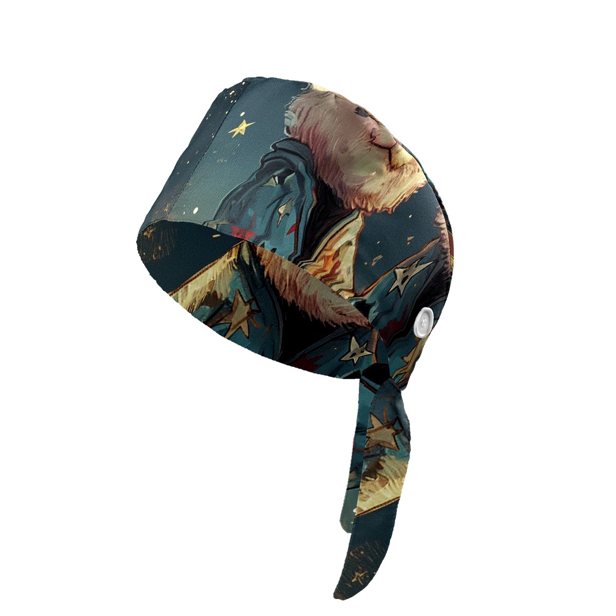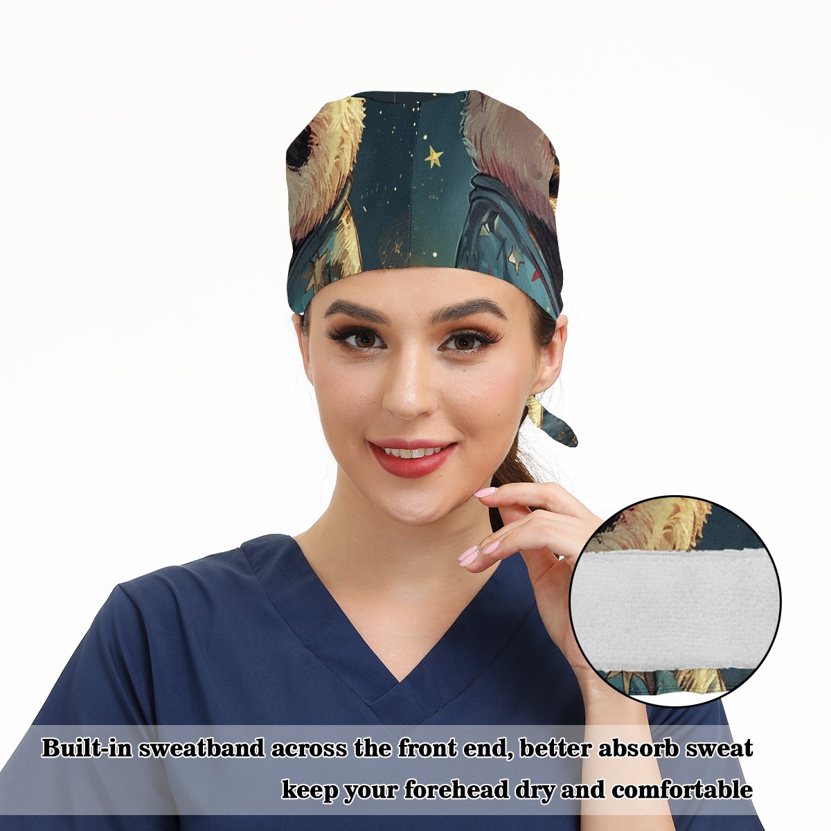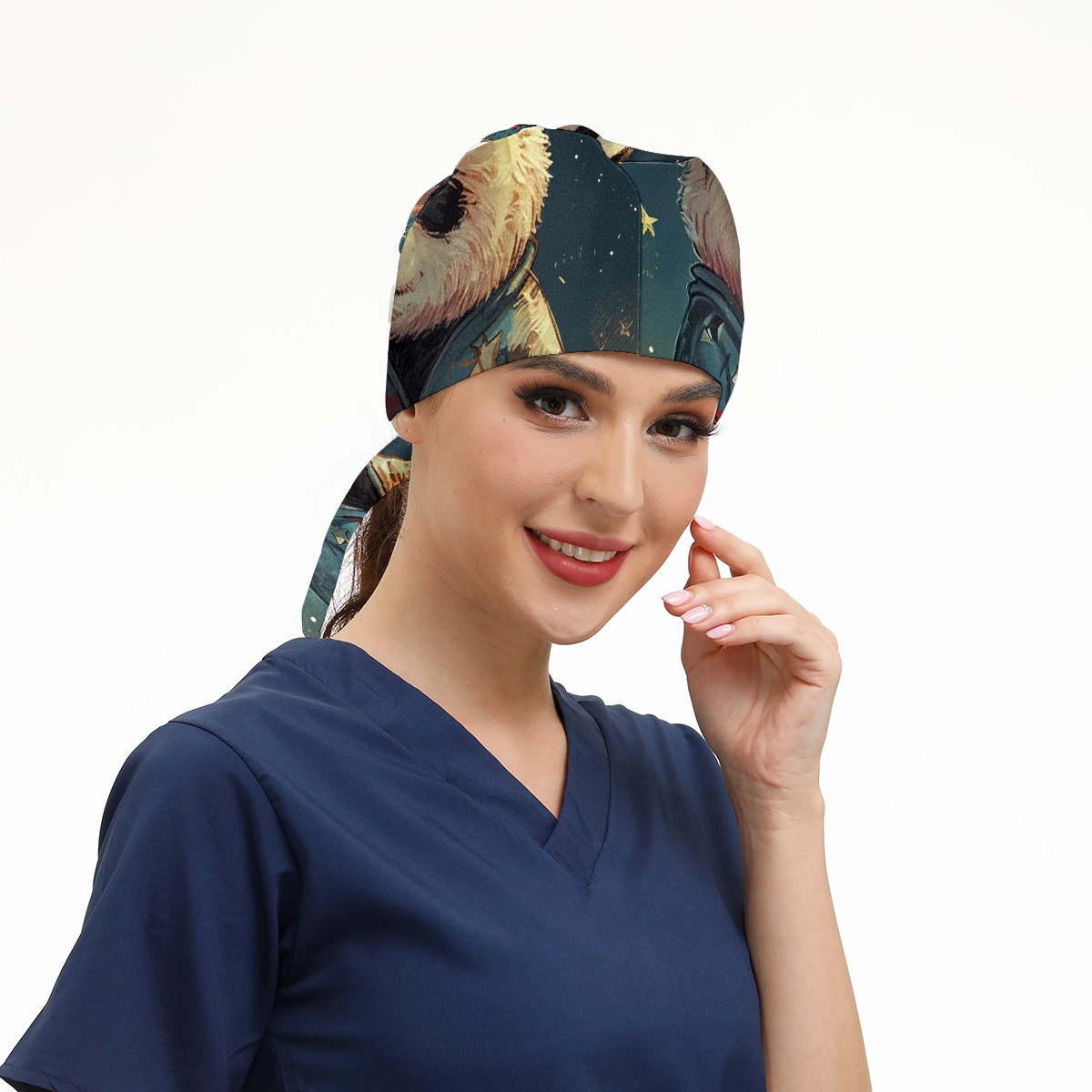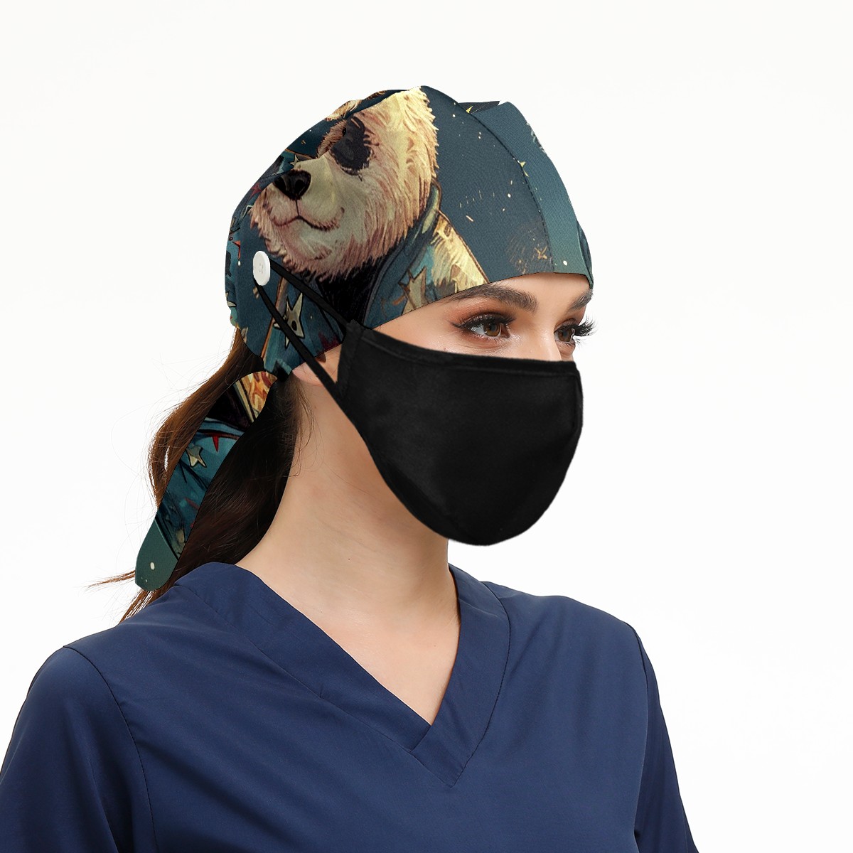 Working Caps with Button&Sweatband Satin Lined Cotton Adjustable Nurse Hats Elastic Band Scrub Cap Surgeon Hat Panda