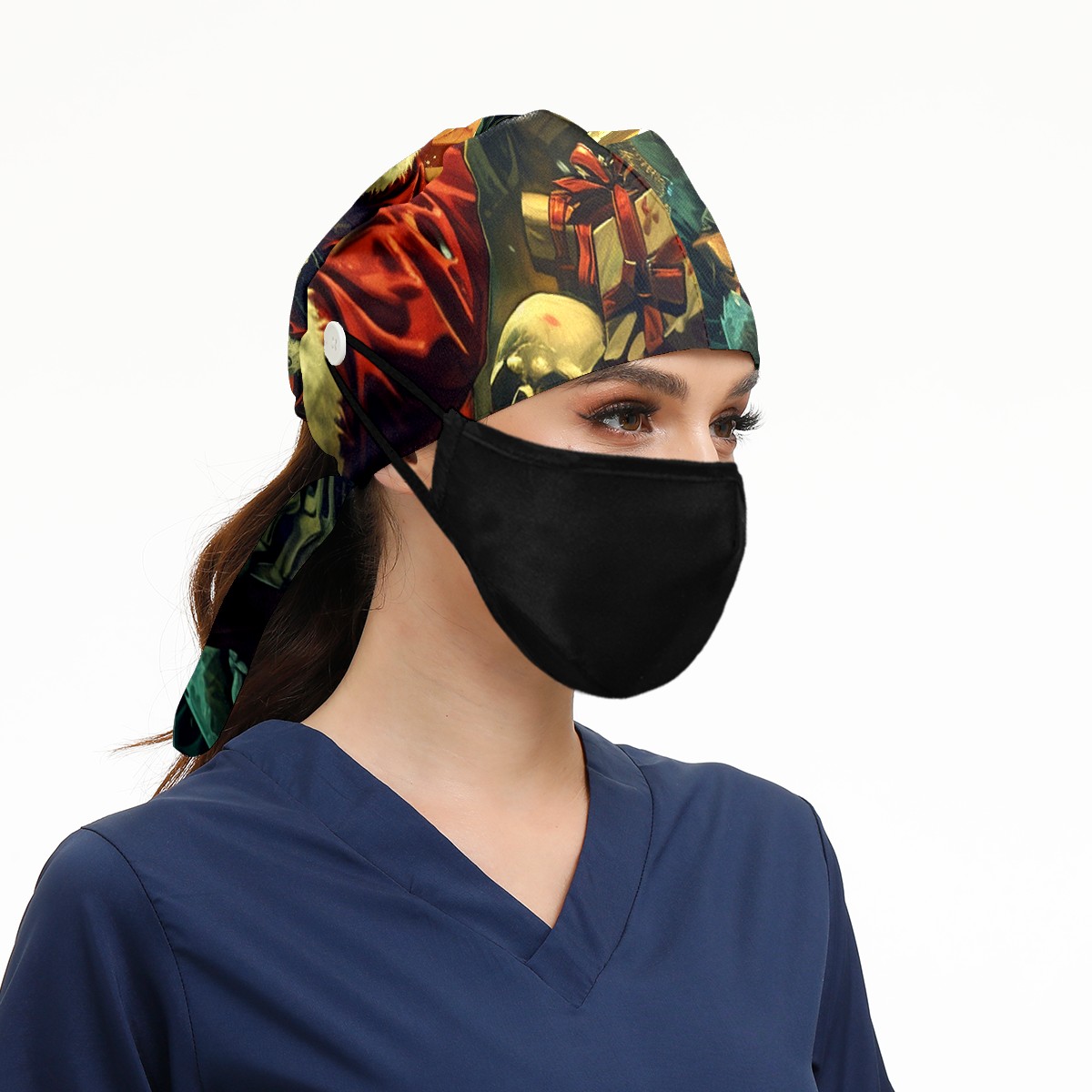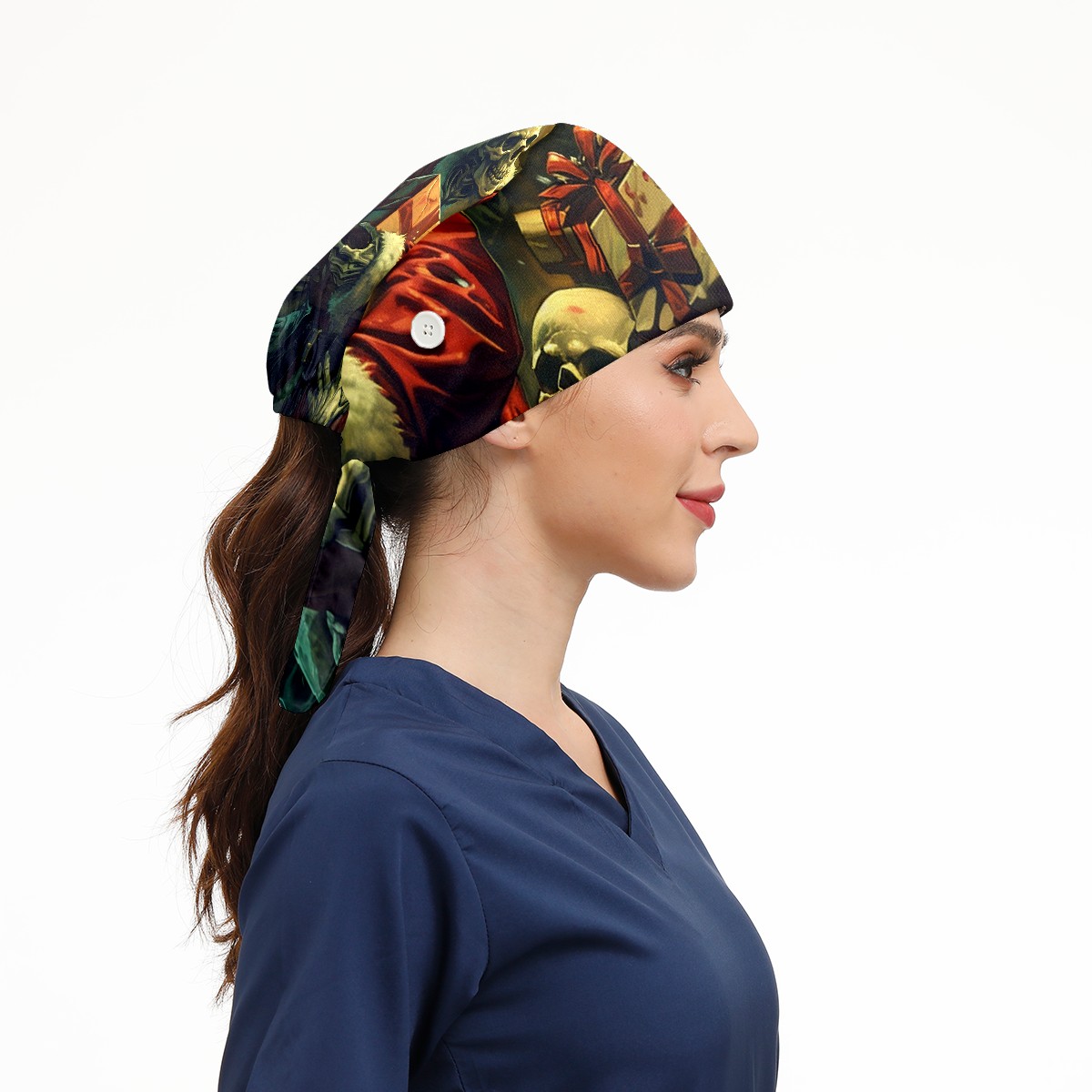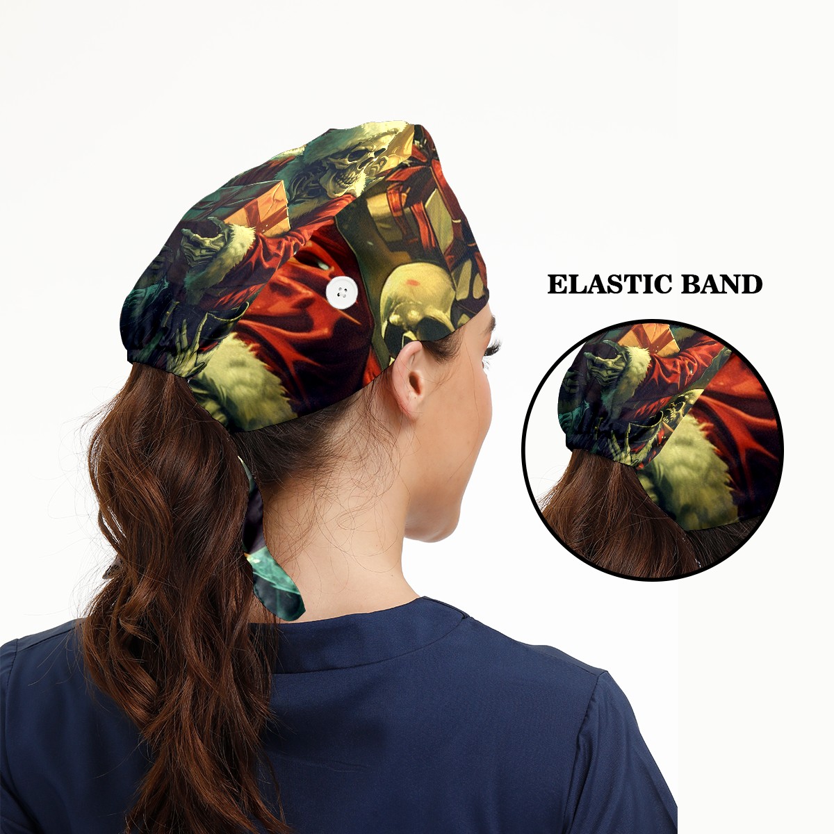 Working Caps with Button&Sweatband Satin Lined Cotton Adjustable Nurse Hats Elastic Band Scrub Cap Surgeon Hat Zombie