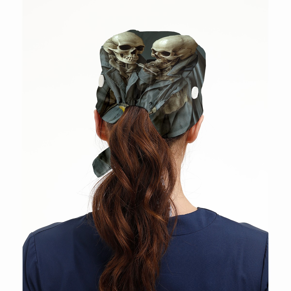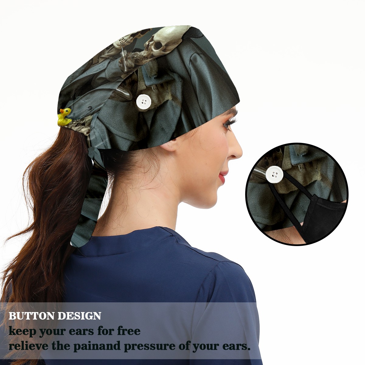 Working Caps with Button&Sweatband Satin Lined Cotton Adjustable Nurse Hats Elastic Band Scrub Cap Surgeon Hat Skull Head