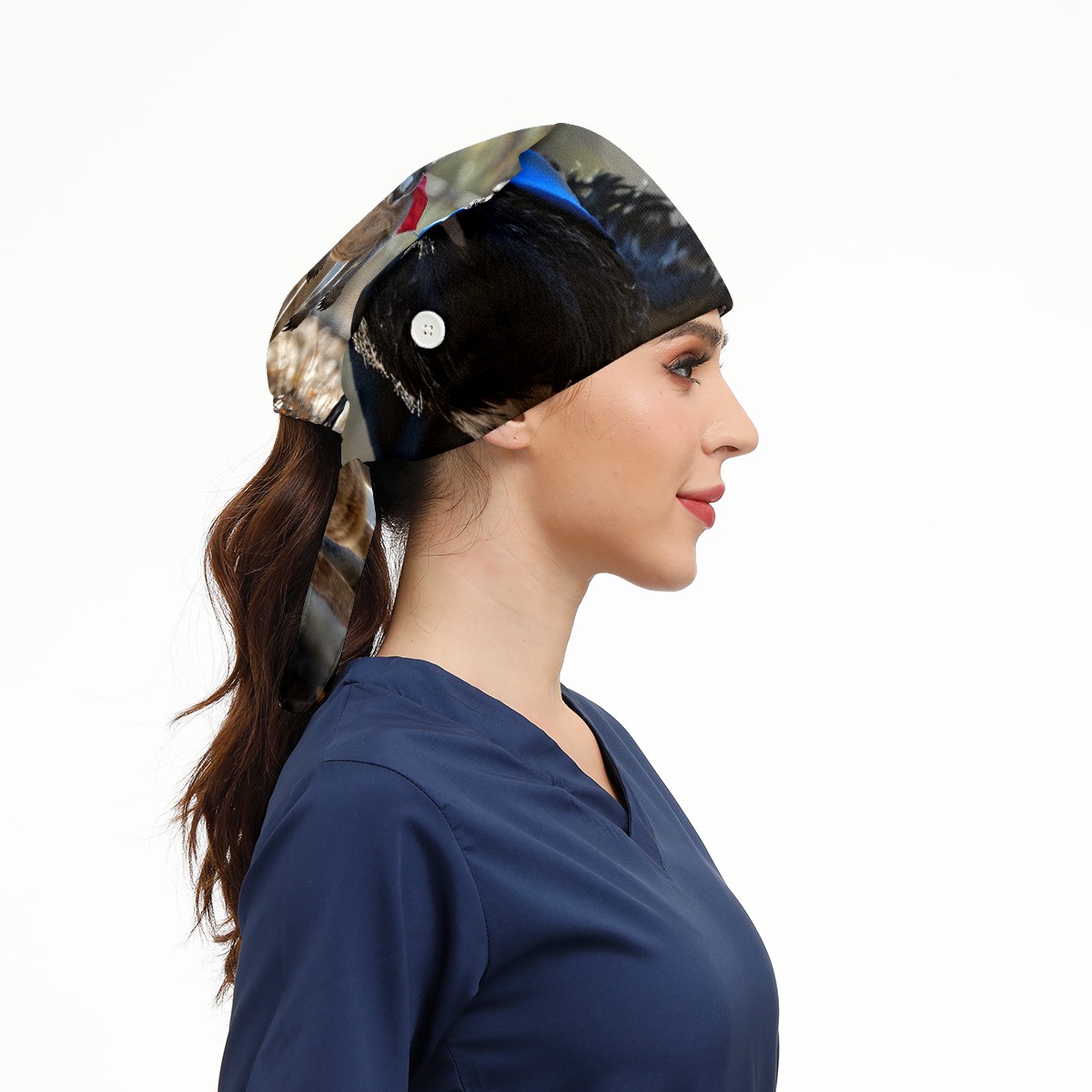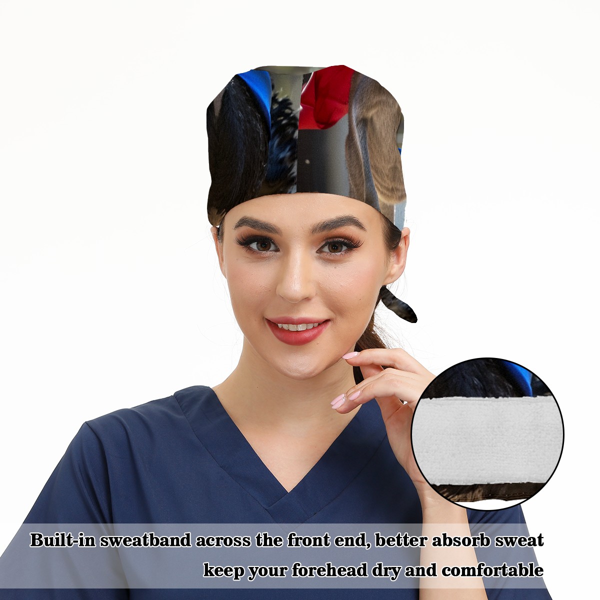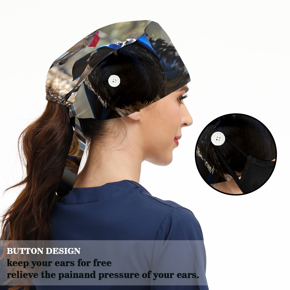 Working Caps with Button&Sweatband Satin Lined Cotton Adjustable Nurse Hats Elastic Band Scrub Cap Surgeon Hat Kangaroo