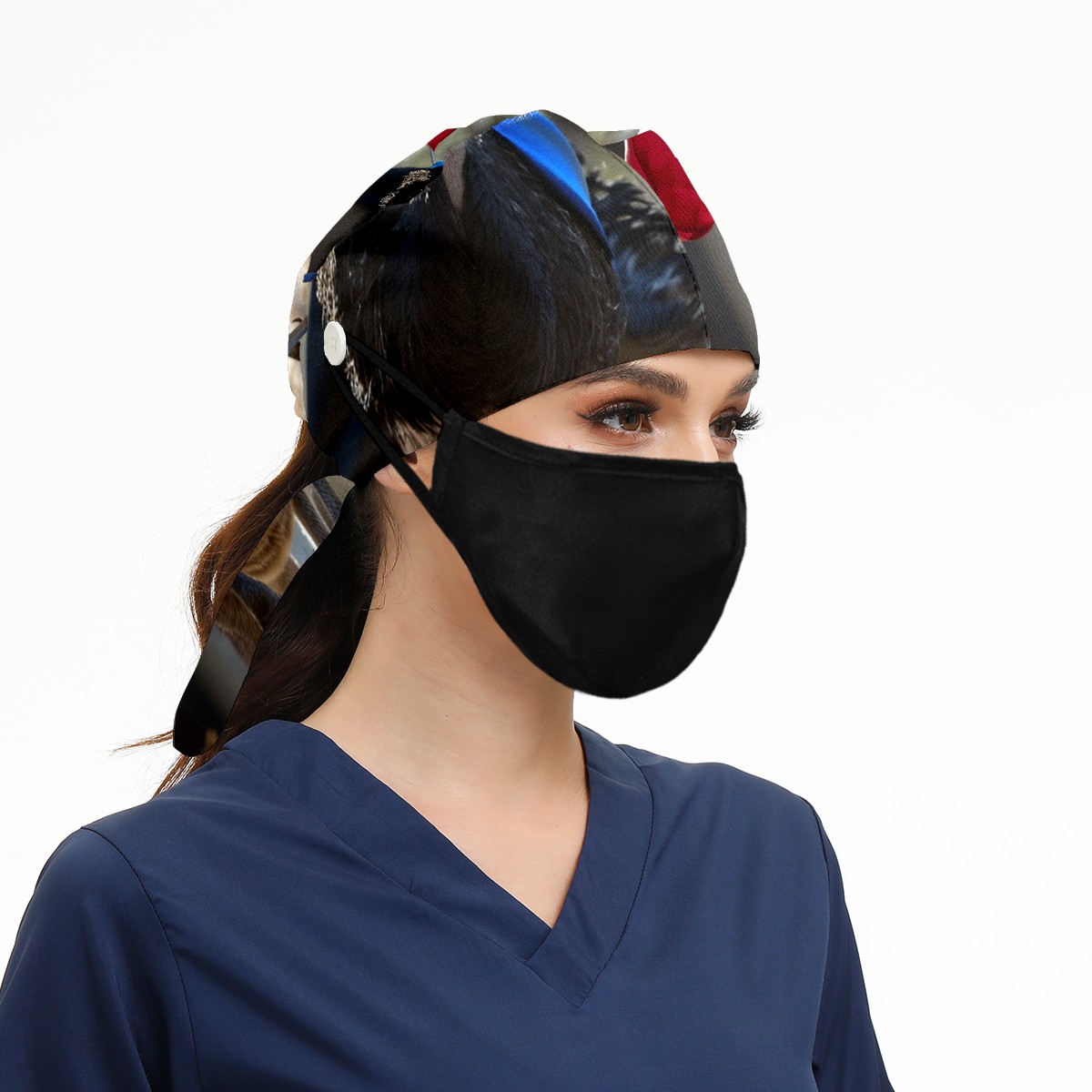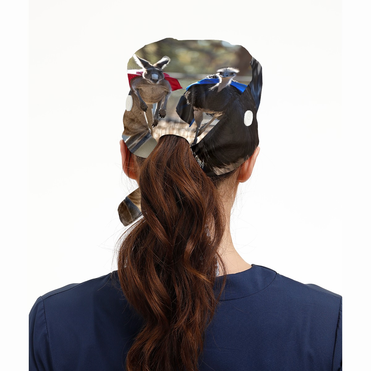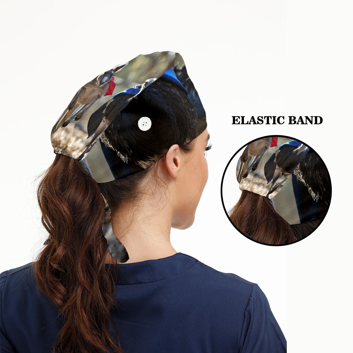 Working Caps with Button&Sweatband Satin Lined Cotton Adjustable Nurse Hats Elastic Band Scrub Cap Surgeon Hat Kangaroo