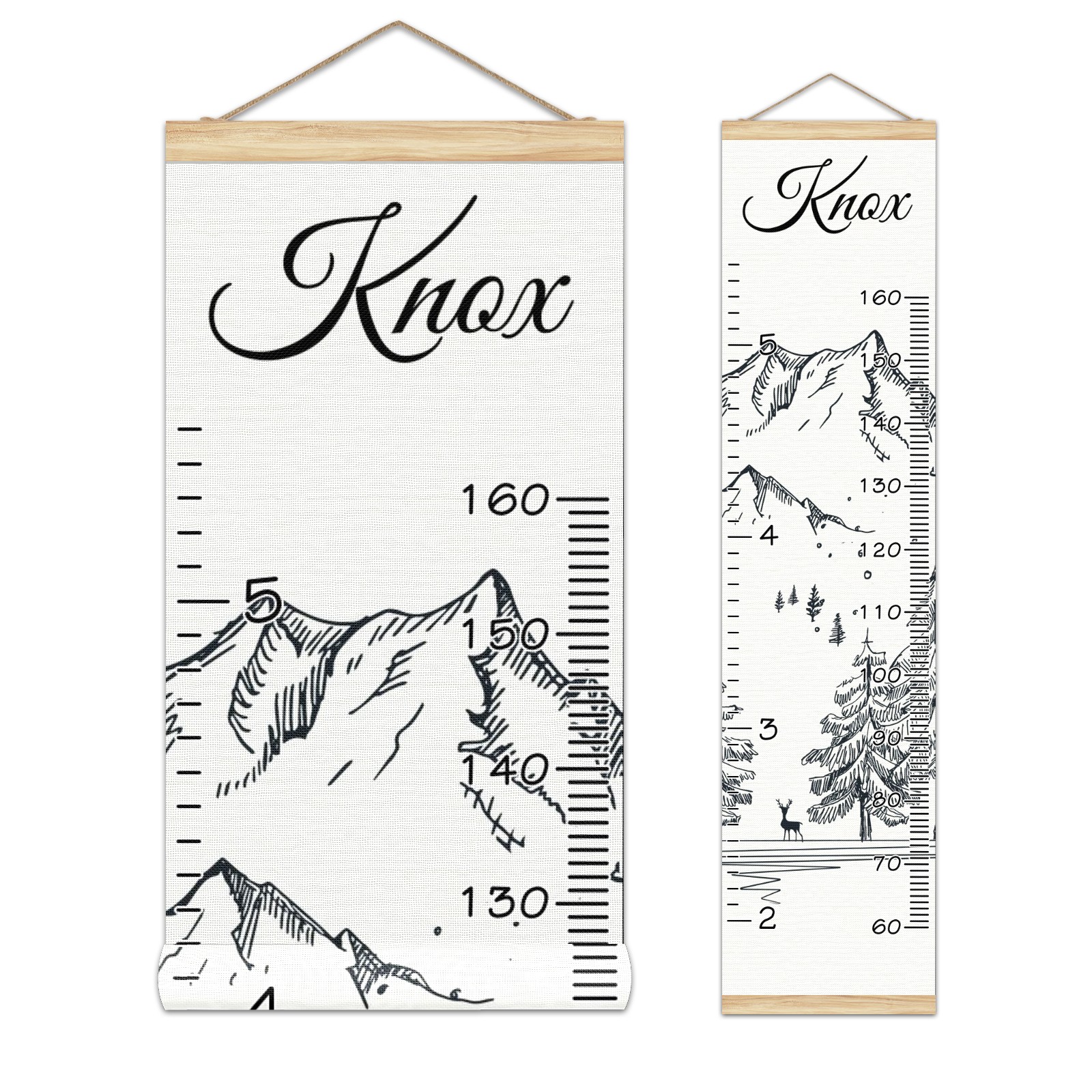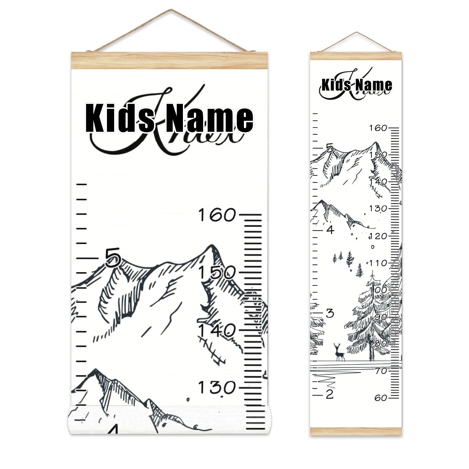 Personalized Kids Name Growth Chart Ruler for Wall Wood Frame Height Measure Chart 13.4x56 in Linen Hanging Height Growth Chart Winter Mountain4.24 Kids Room Decor