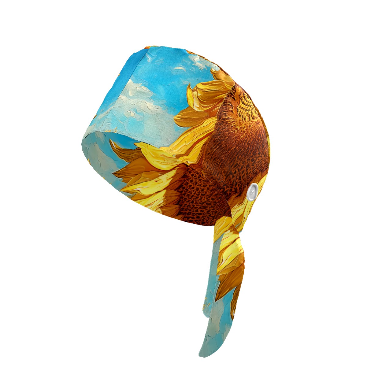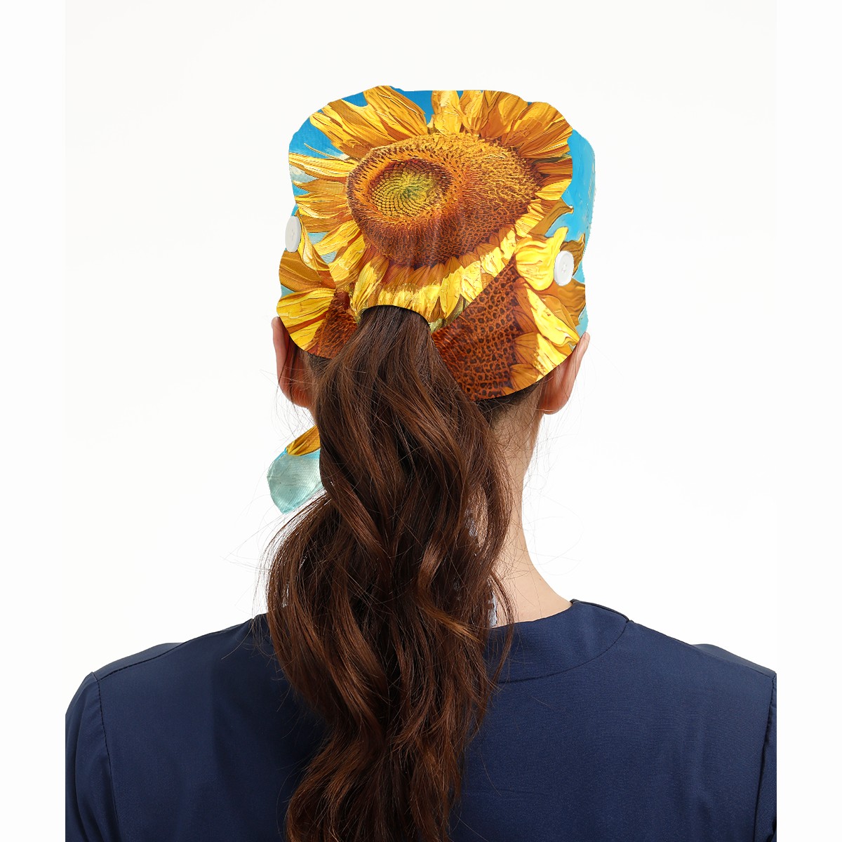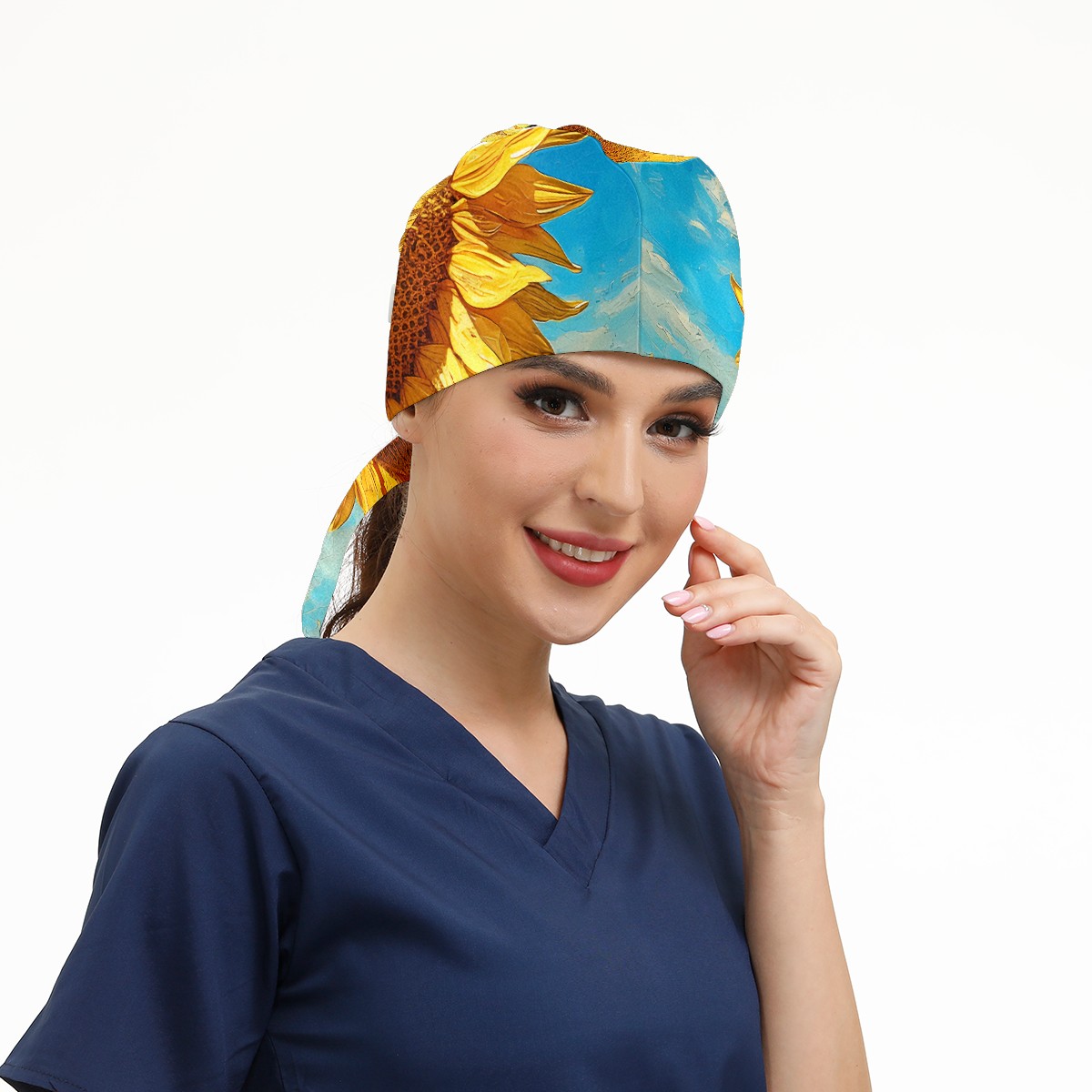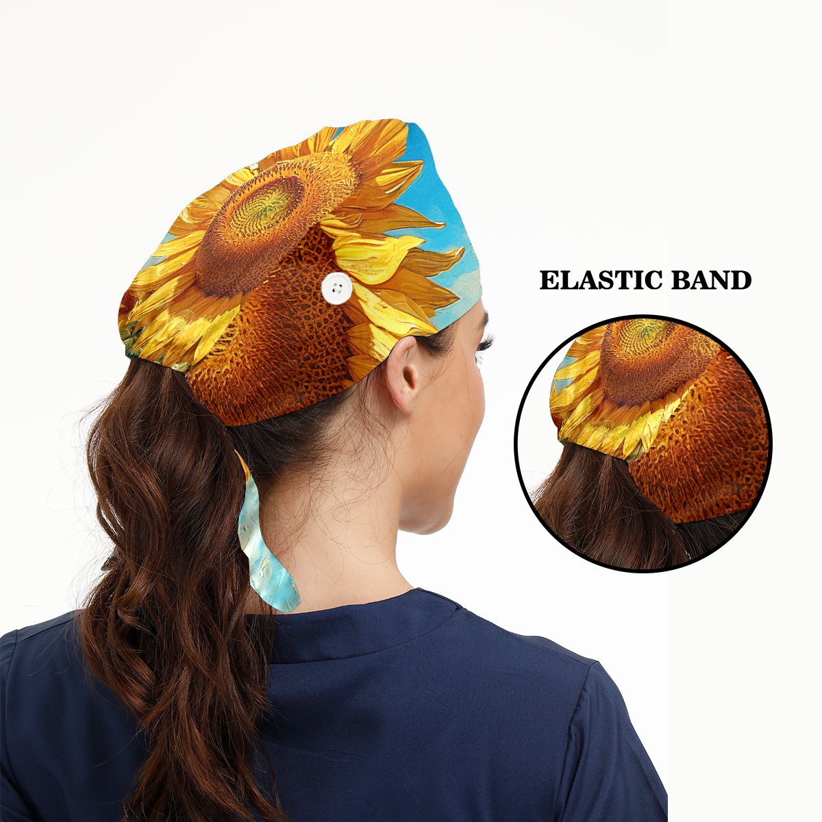 Working Caps with Button&Sweatband Satin Lined Cotton Adjustable Nurse Hats Elastic Band Scrub Cap Surgeon Hat Cute Bouquet C