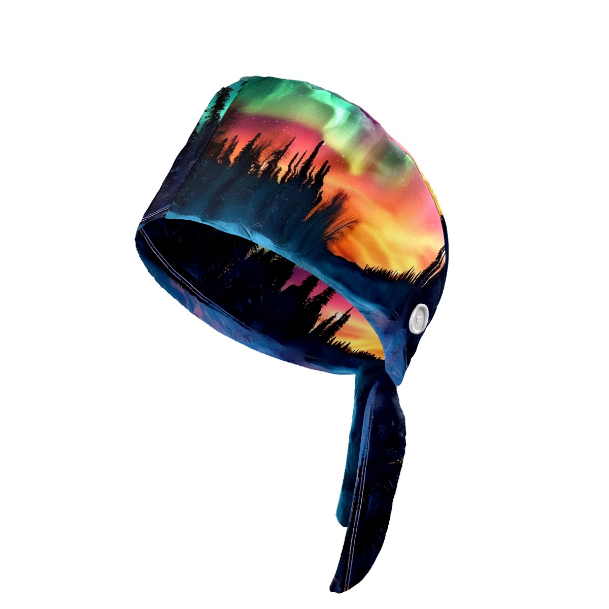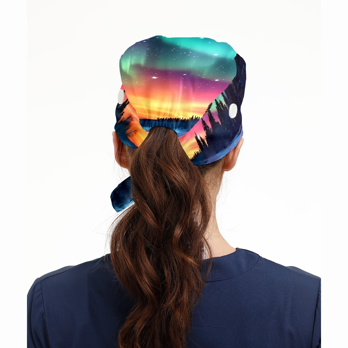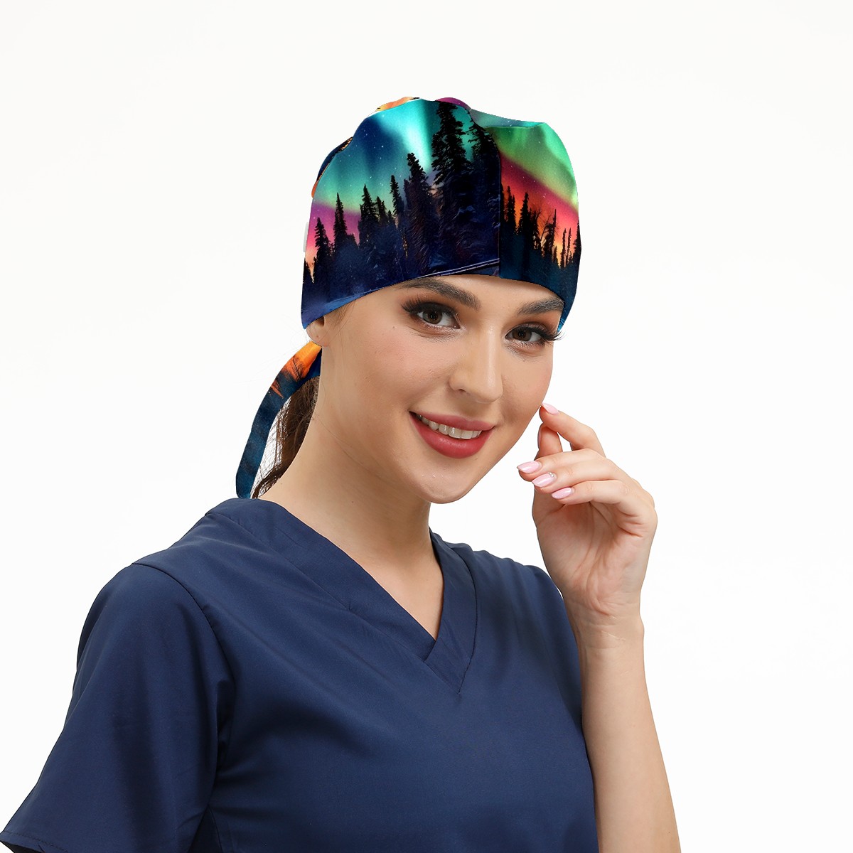 Working Caps with Button&Sweatband Satin Lined Cotton Adjustable Nurse Hats Elastic Band Scrub Cap Surgeon Hat Northern Light