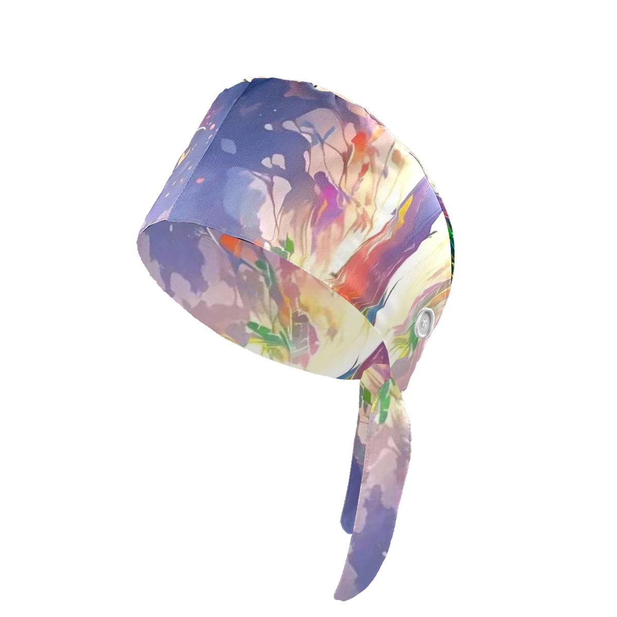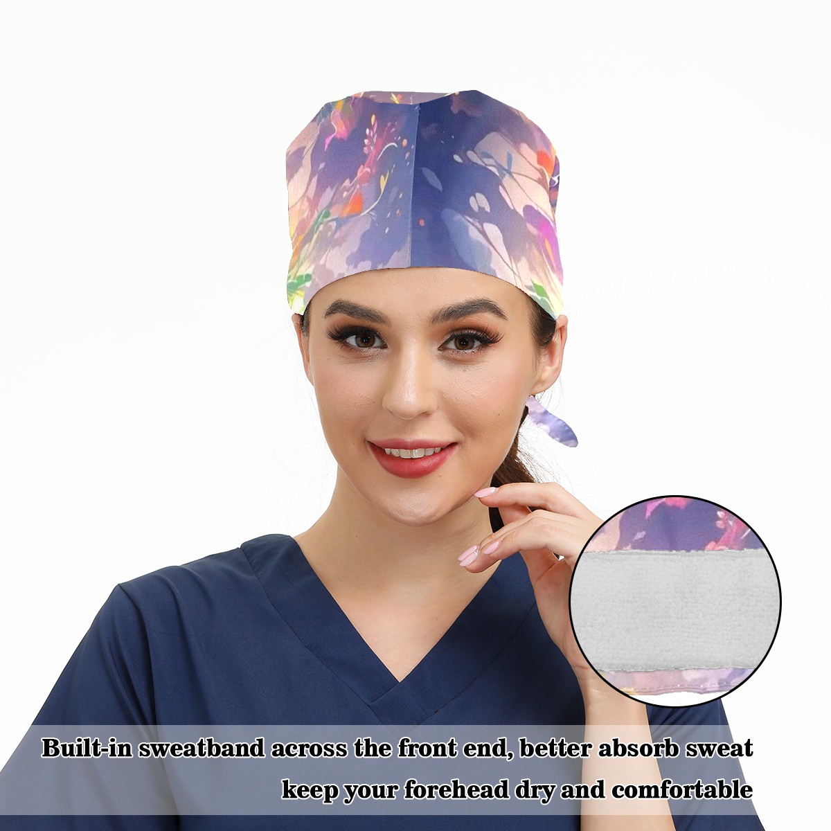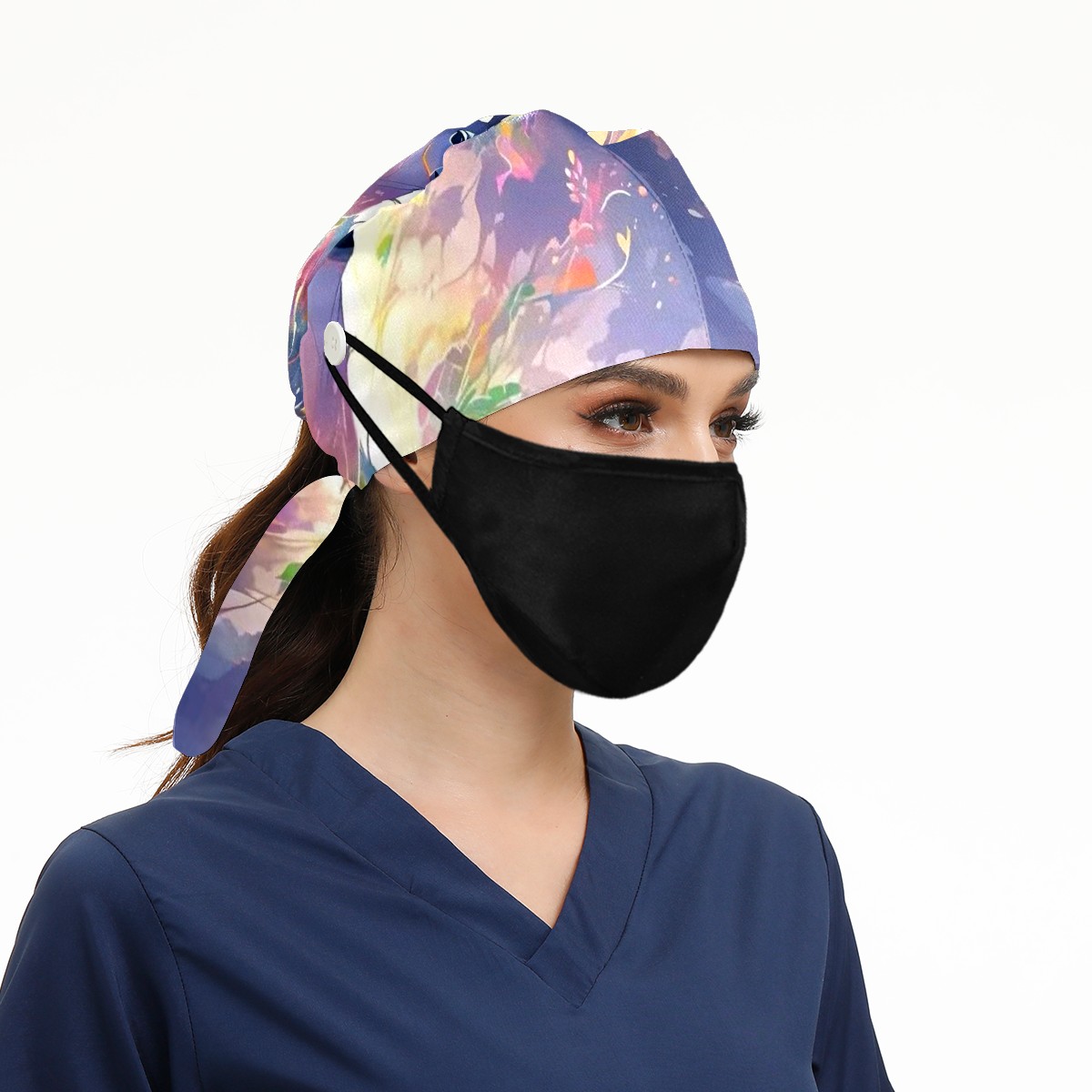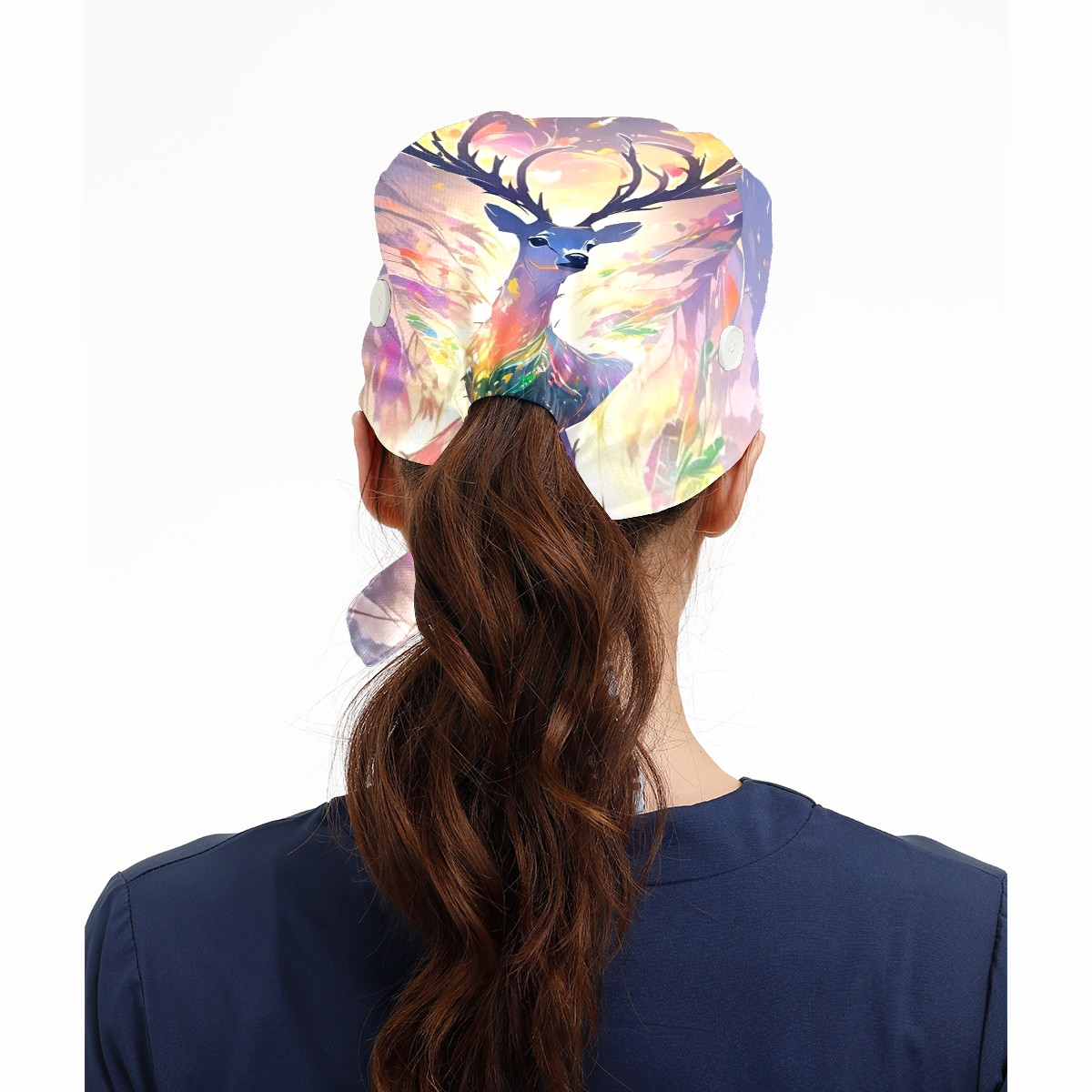 Working Caps with Button&Sweatband Satin Lined Cotton Adjustable Nurse Hats Elastic Band Scrub Cap Surgeon Hat Colorful Deer