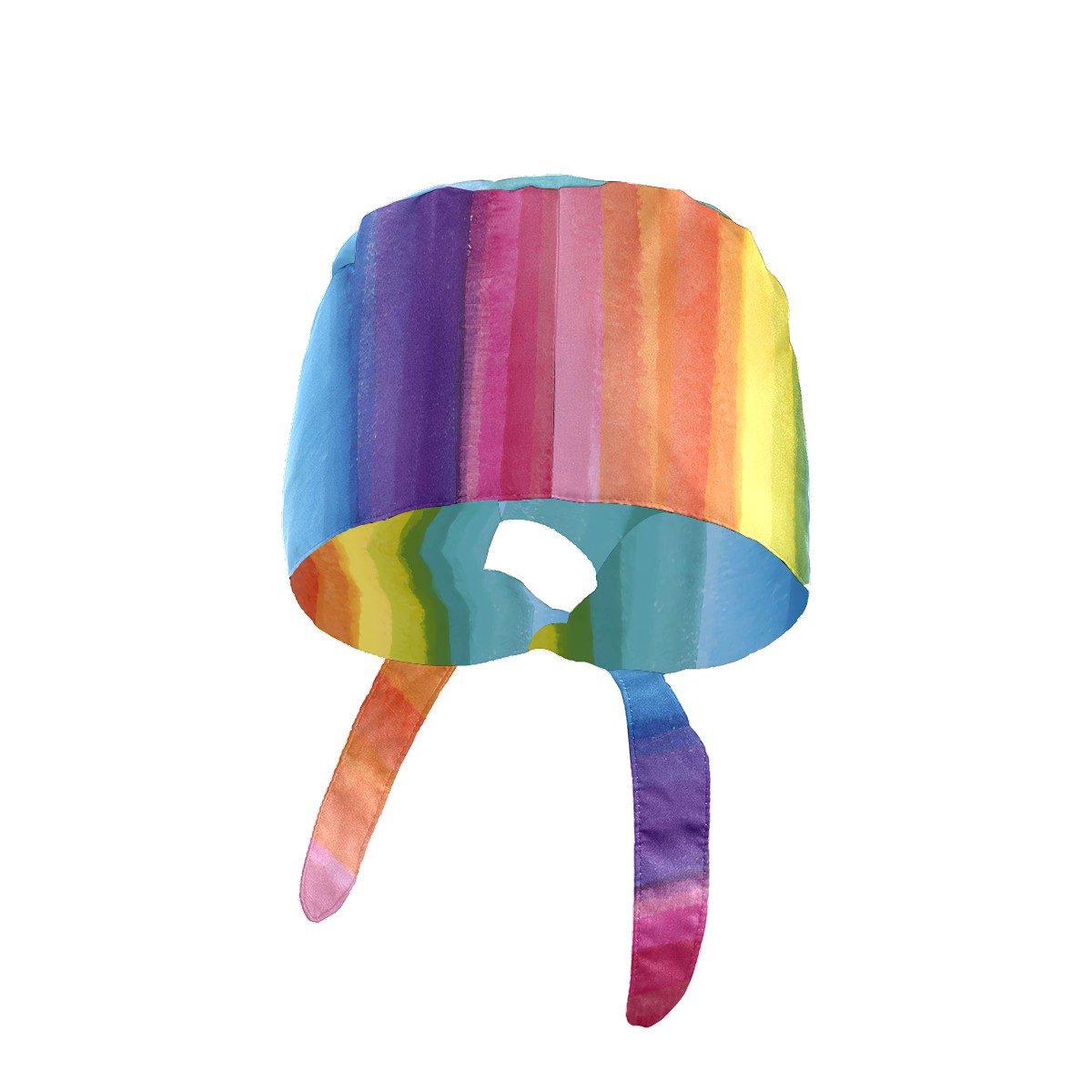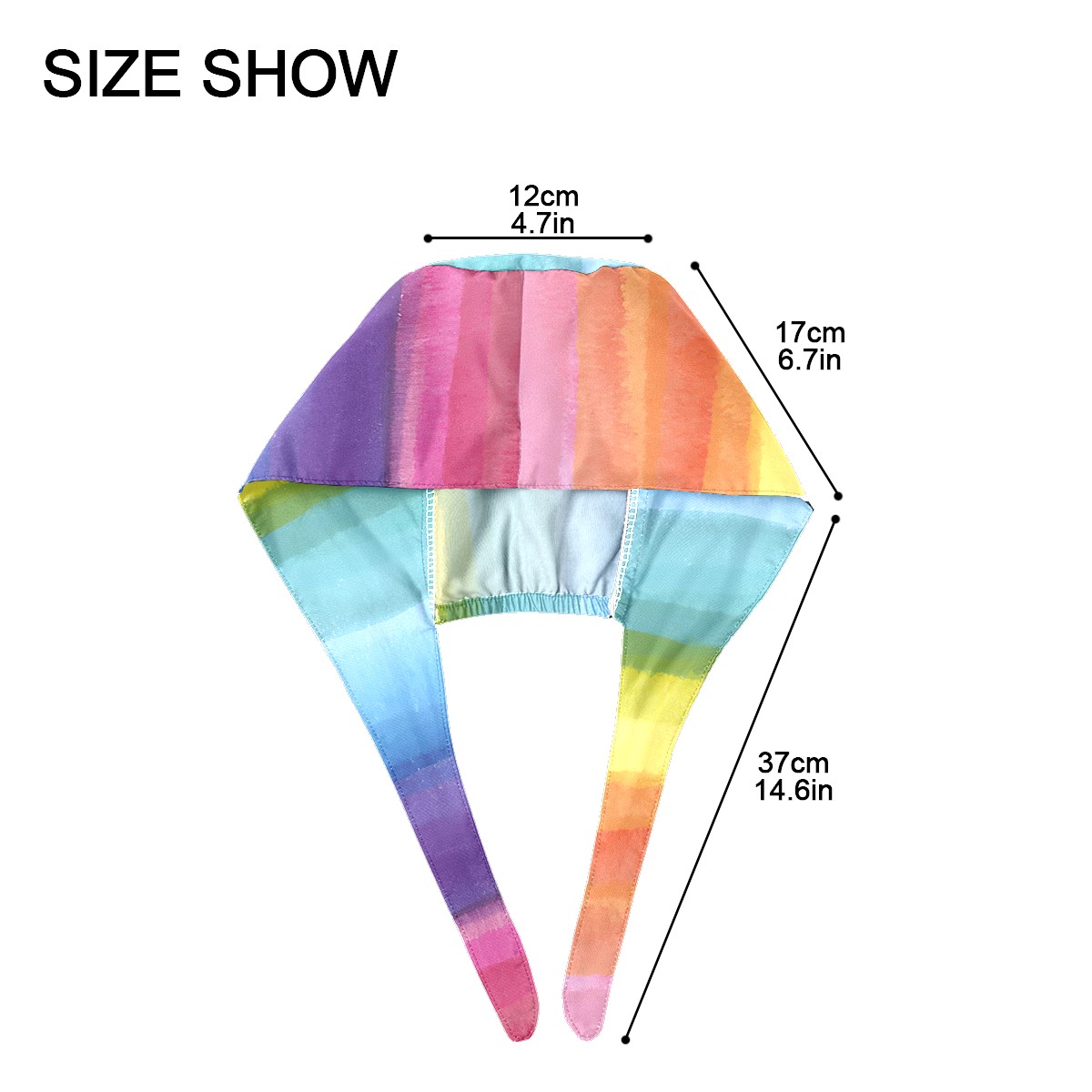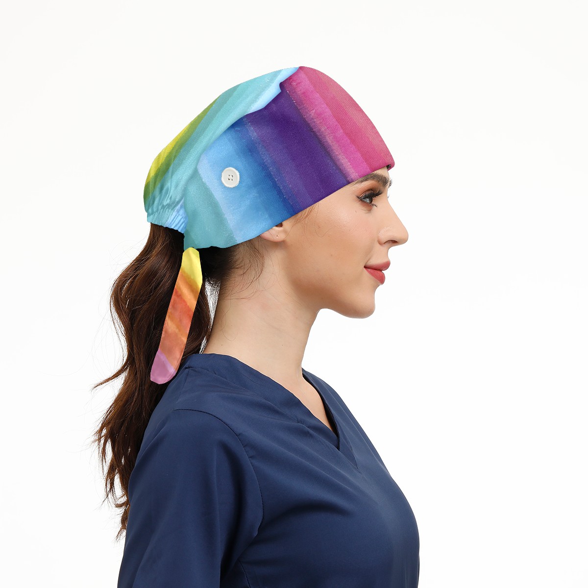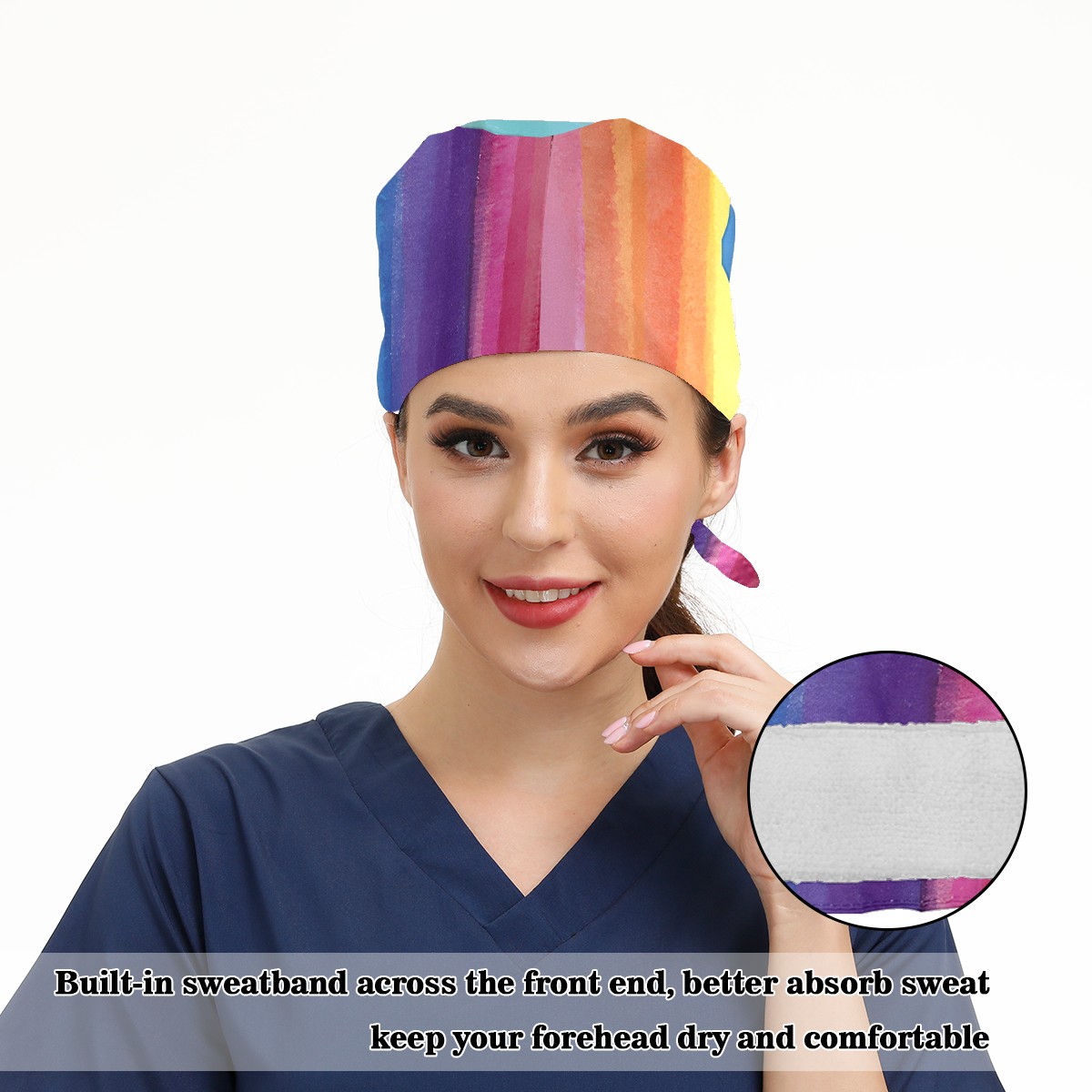 Working Caps with Button&Sweatband Satin Lined Cotton Adjustable Nurse Hats Elastic Band Scrub Cap Surgeon Hat Watercolor Rainbow