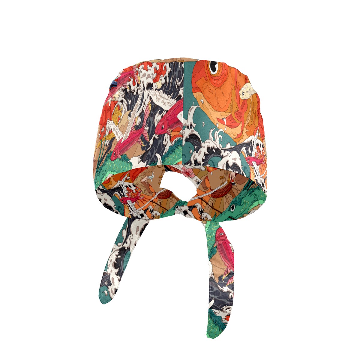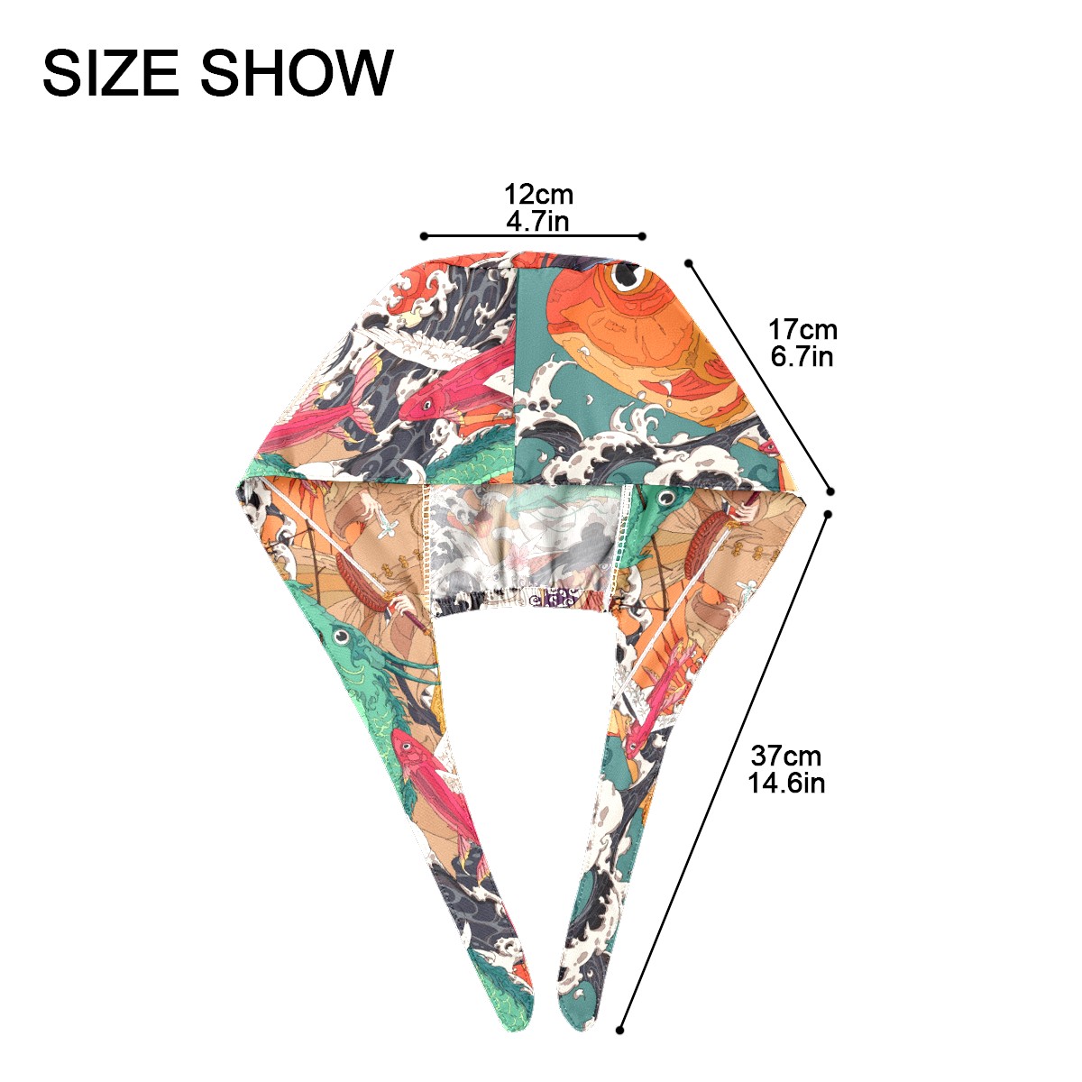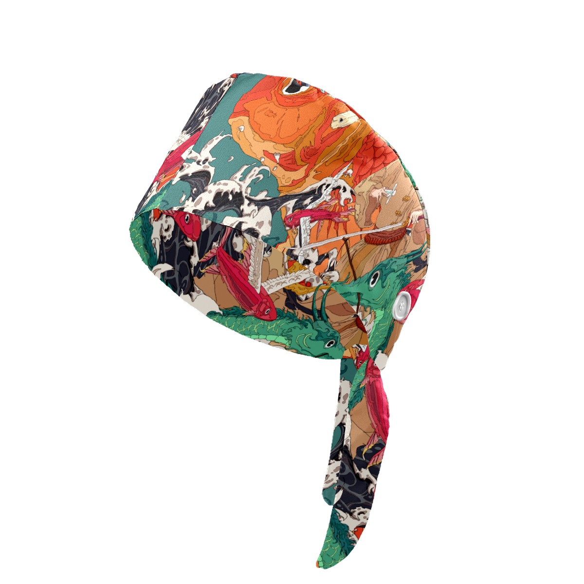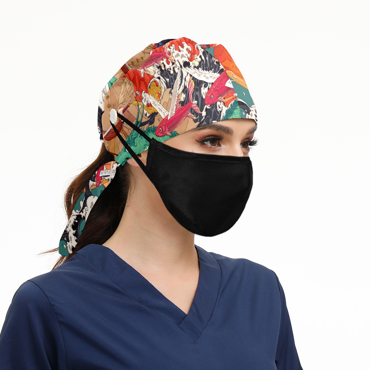 Working Caps with Button&Sweatband Satin Lined Cotton Adjustable Nurse Hats Elastic Band Scrub Cap Surgeon Hat Chinese Dragon Waves