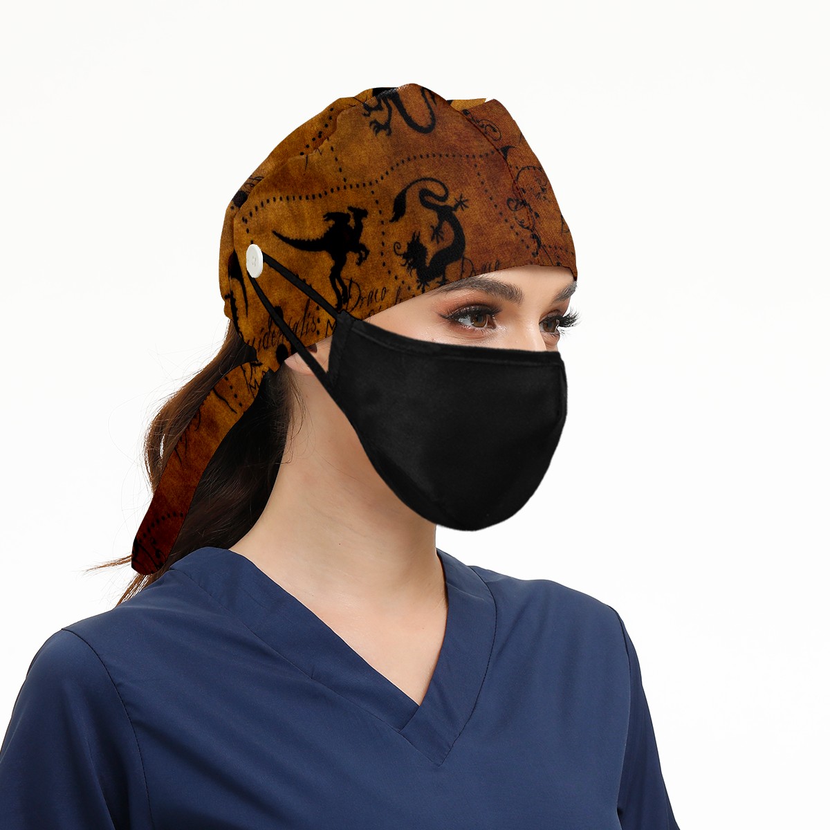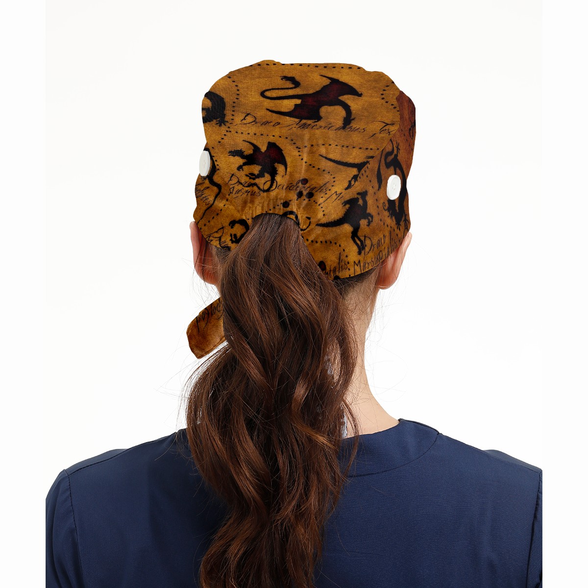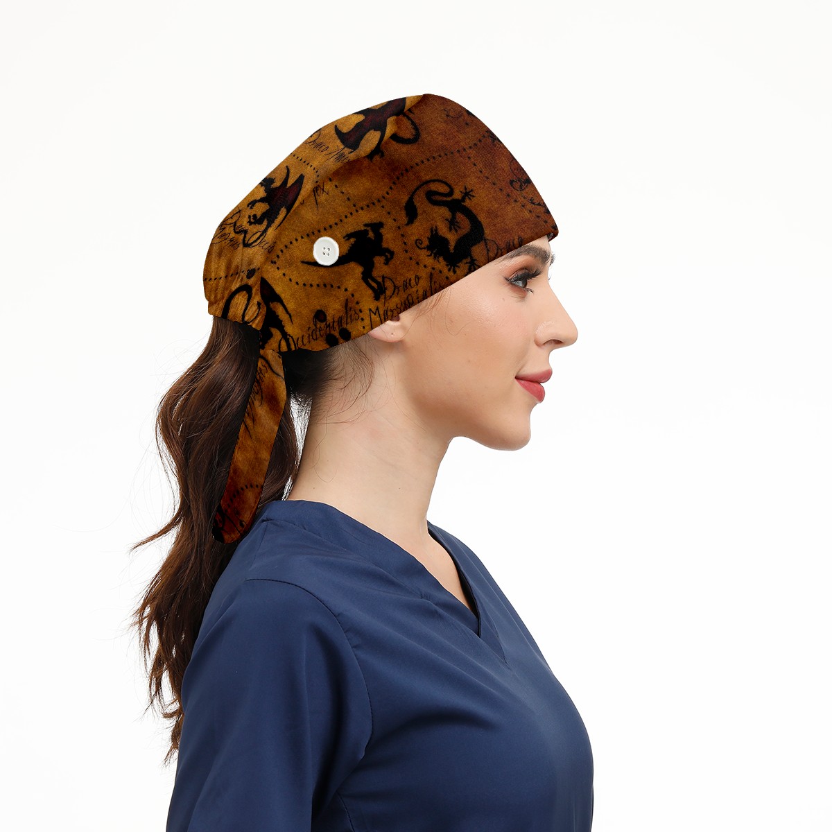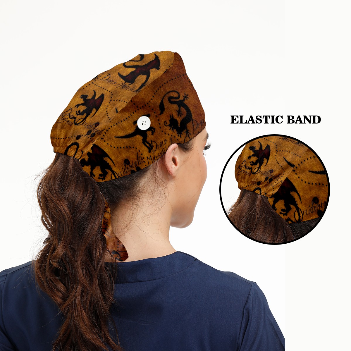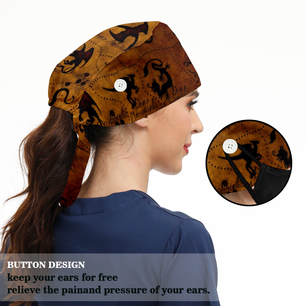 Working Caps with Button&Sweatband Satin Lined Cotton Adjustable Nurse Hats Elastic Band Scrub Cap Surgeon Hat Dragon Atlase