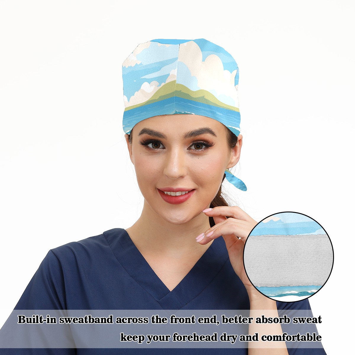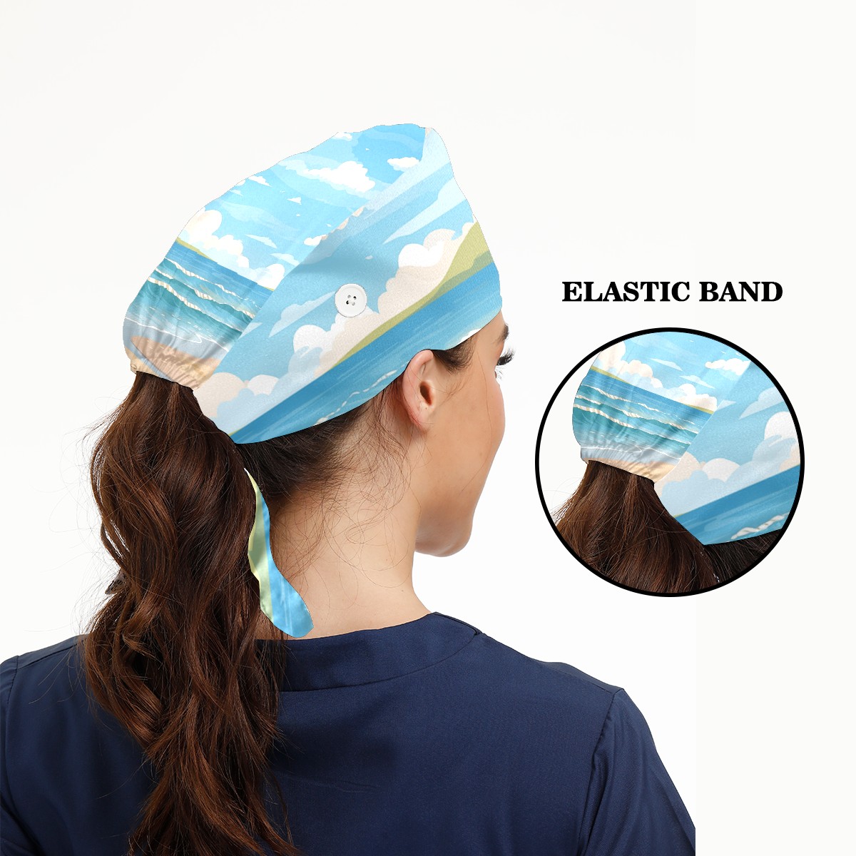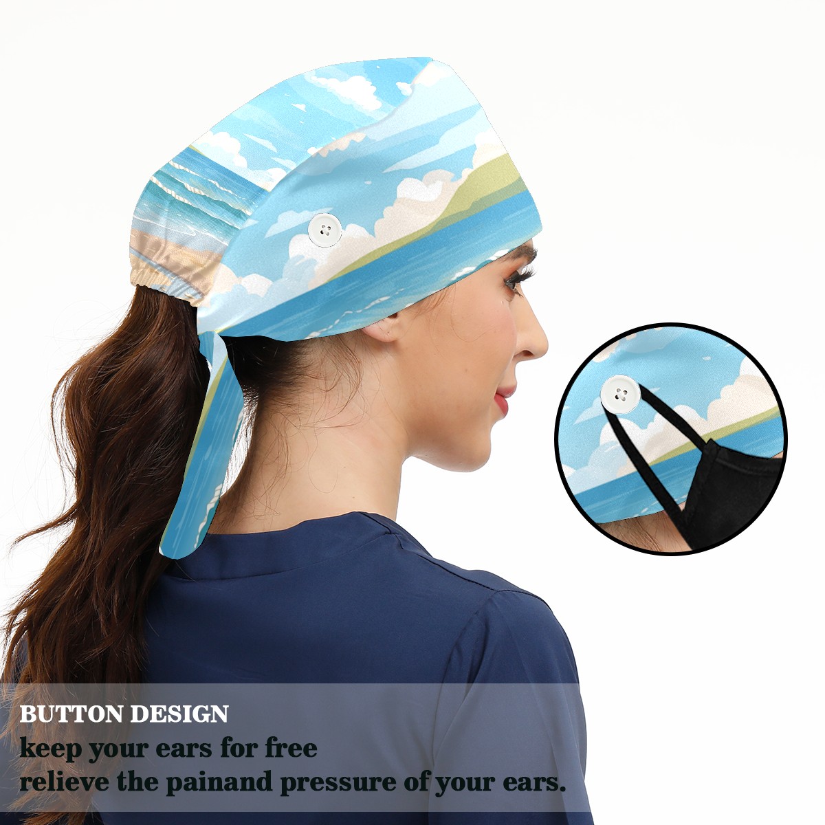 Working Caps with Button&Sweatband Satin Lined Cotton Adjustable Nurse Hats Elastic Band Scrub Cap Surgeon Hat Seaside