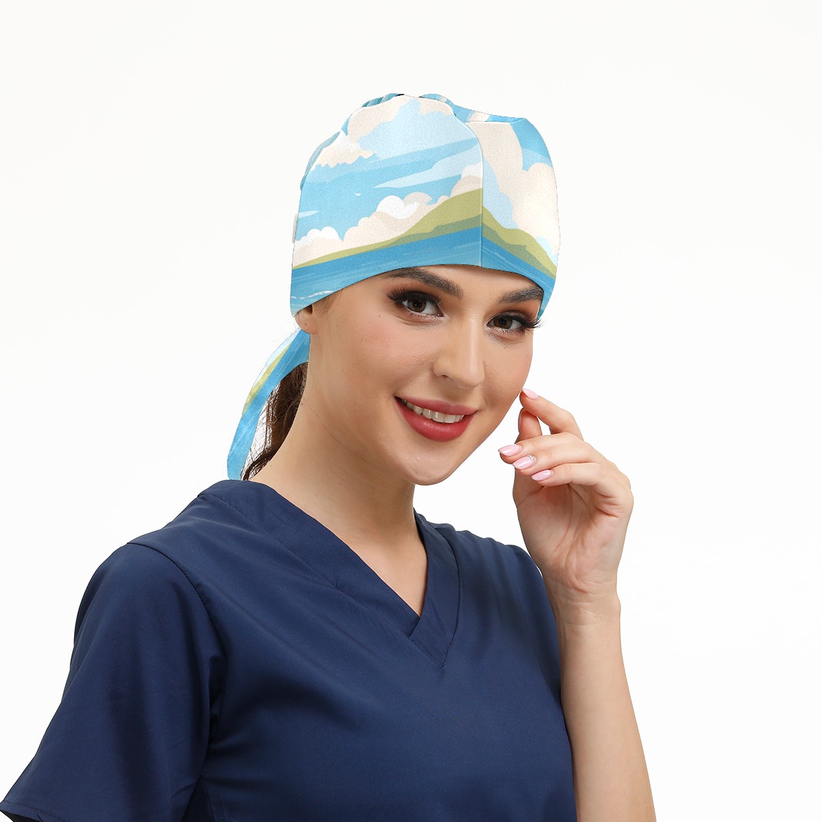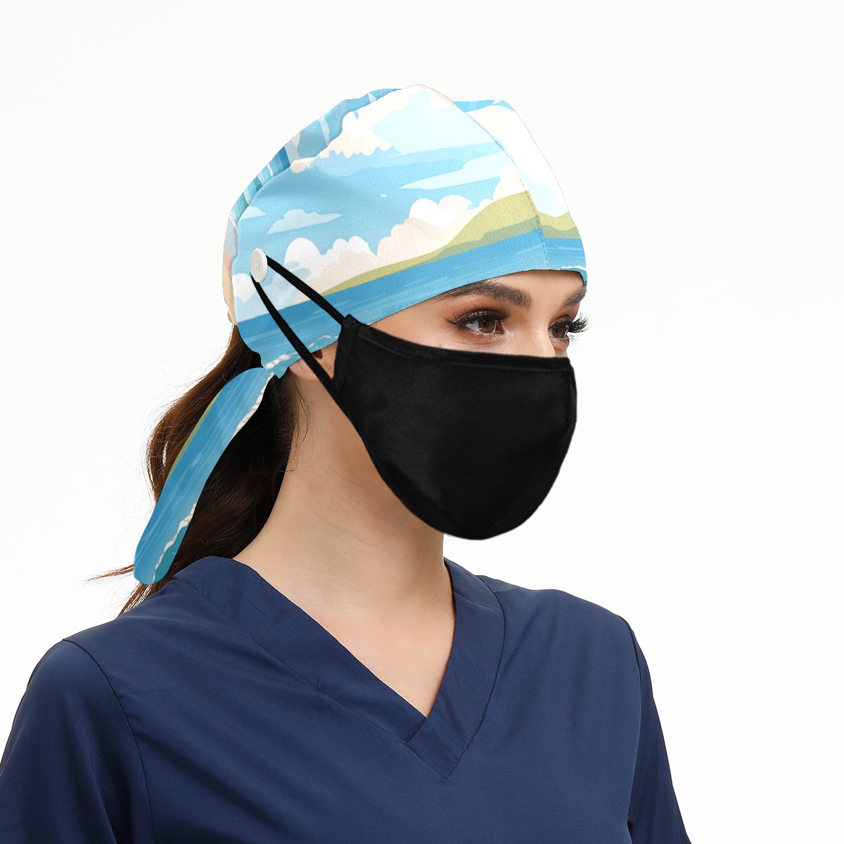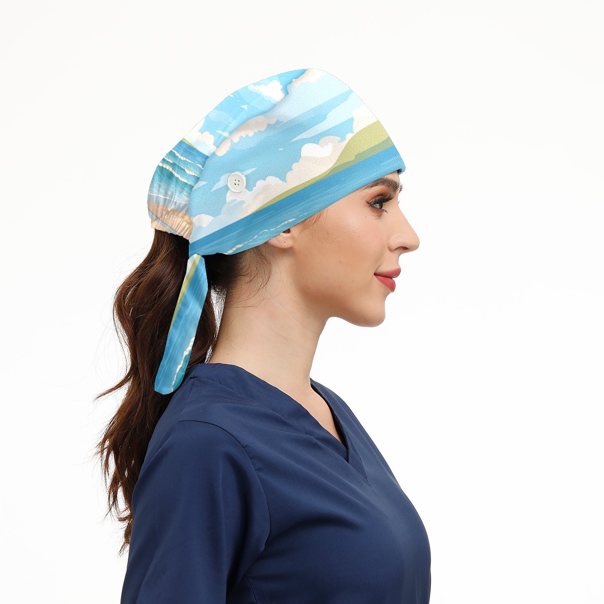 Working Caps with Button&Sweatband Satin Lined Cotton Adjustable Nurse Hats Elastic Band Scrub Cap Surgeon Hat Seaside