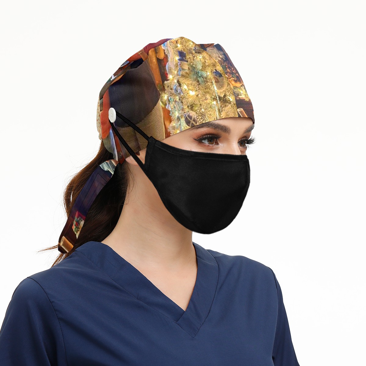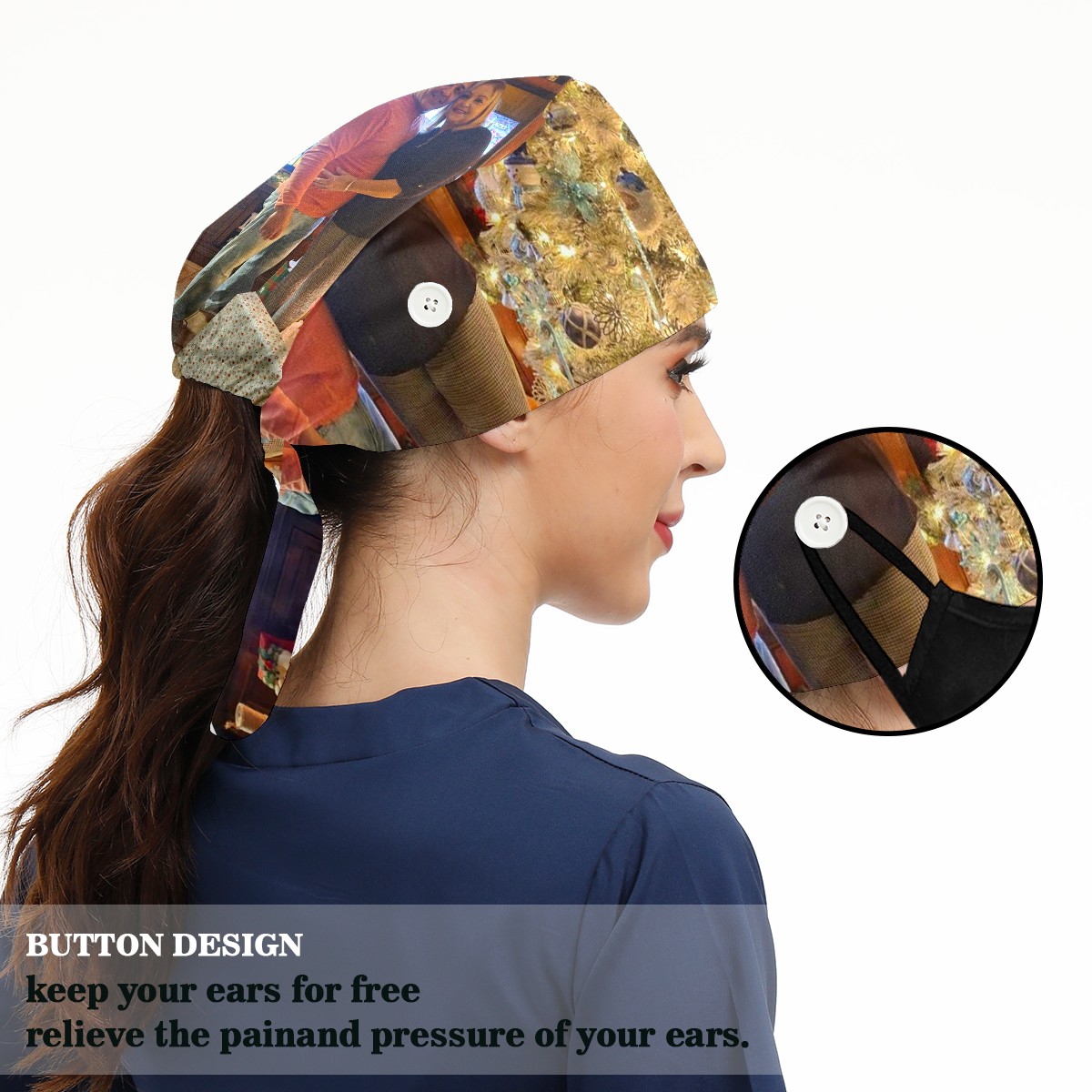 Working Caps with Button&Sweatband Satin Lined Cotton Adjustable Nurse Hats Elastic Band Scrub Cap Surgeon Hat 1448239