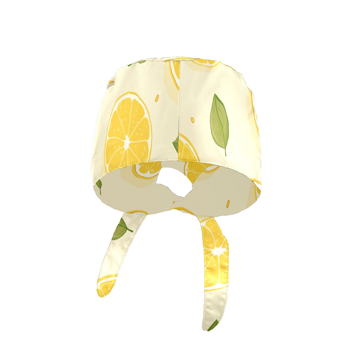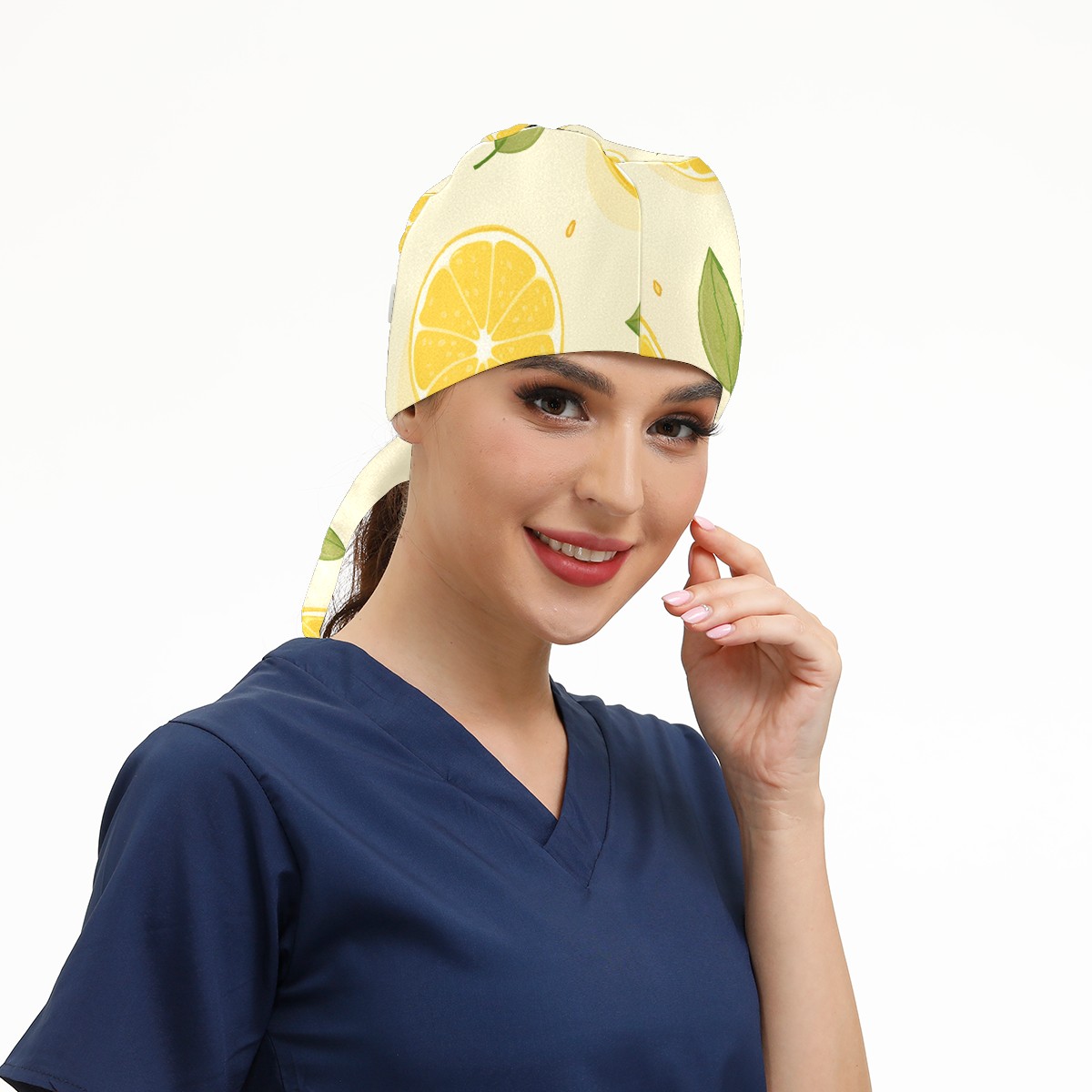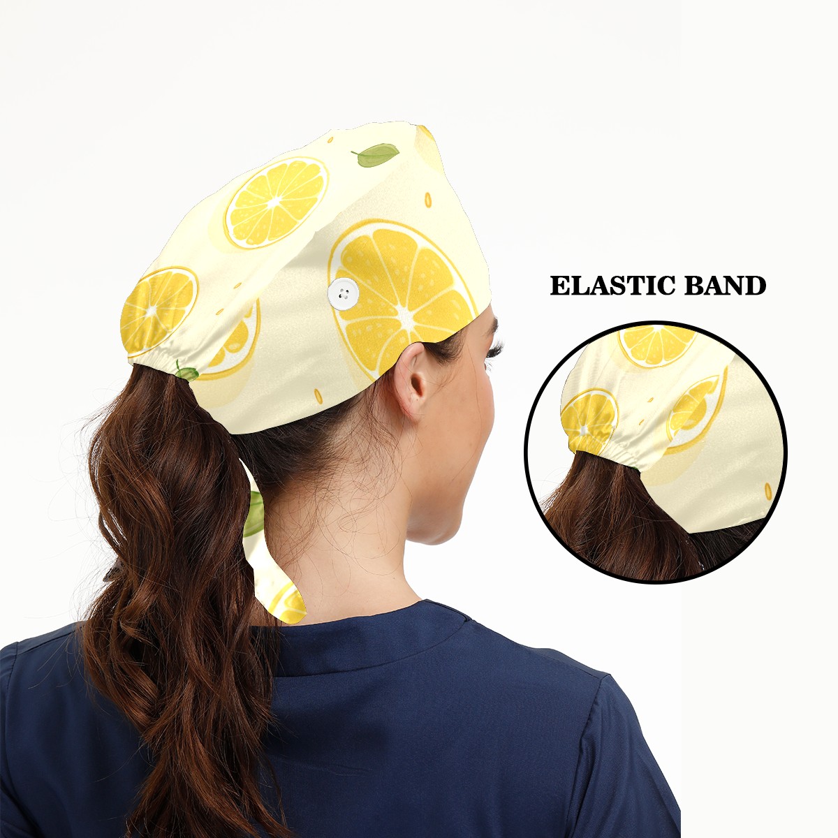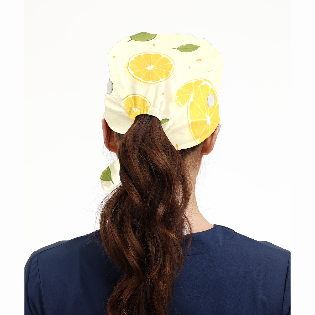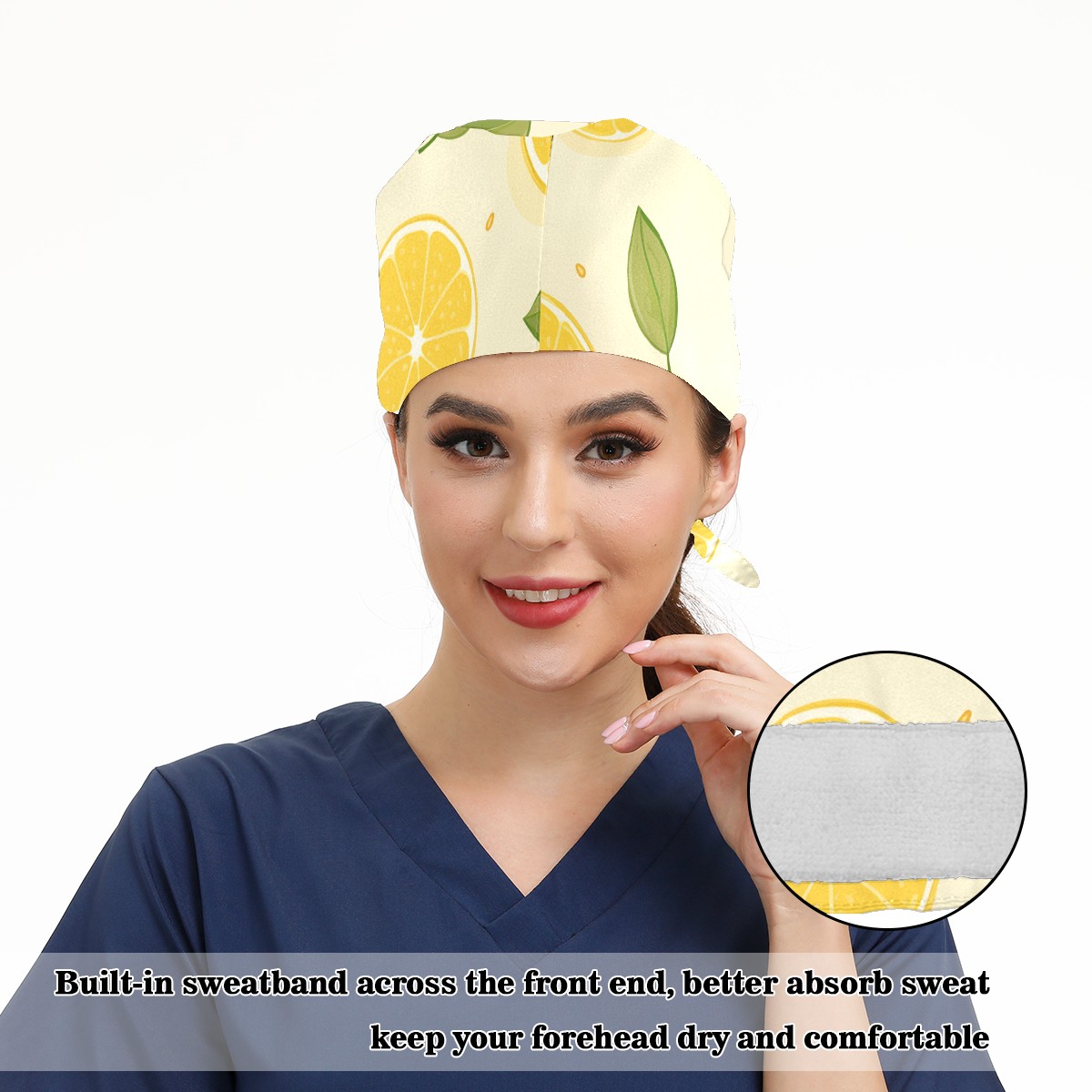 Working Caps with Button&Sweatband Satin Lined Cotton Adjustable Nurse Hats Elastic Band Scrub Cap Surgeon Hat Fresh Lemon