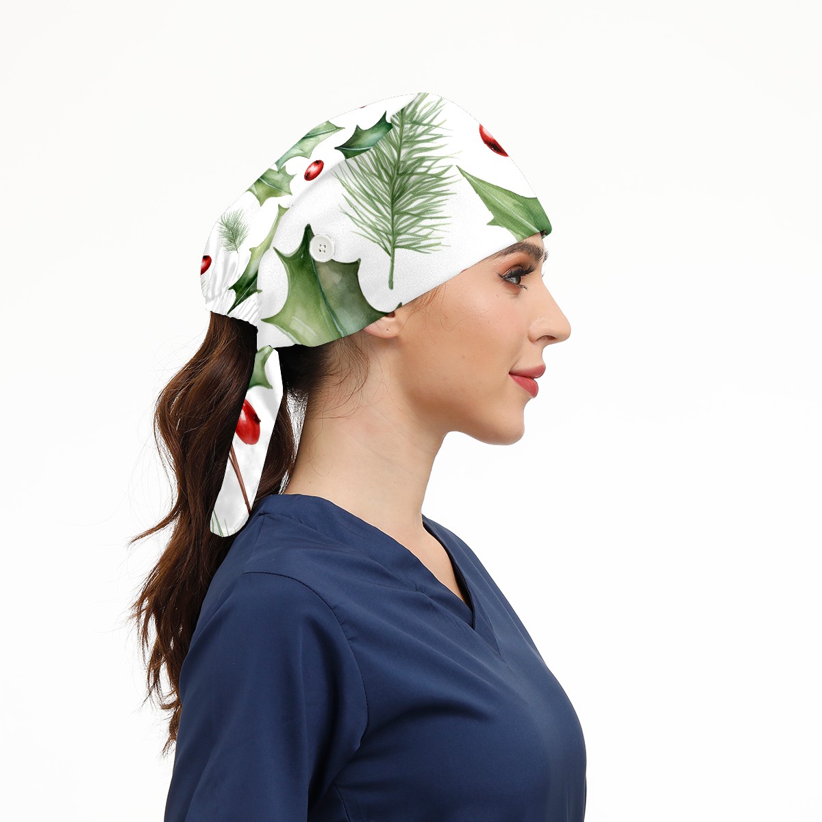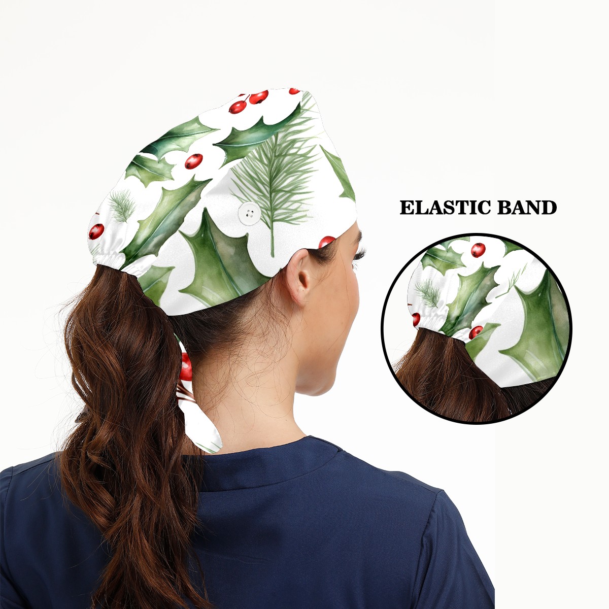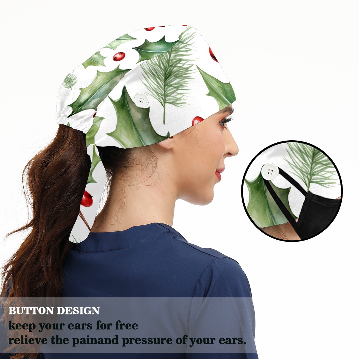 Working Caps with Button&Sweatband Satin Lined Cotton Adjustable Nurse Hats Elastic Band Scrub Cap Surgeon Hat Christmas Pines
