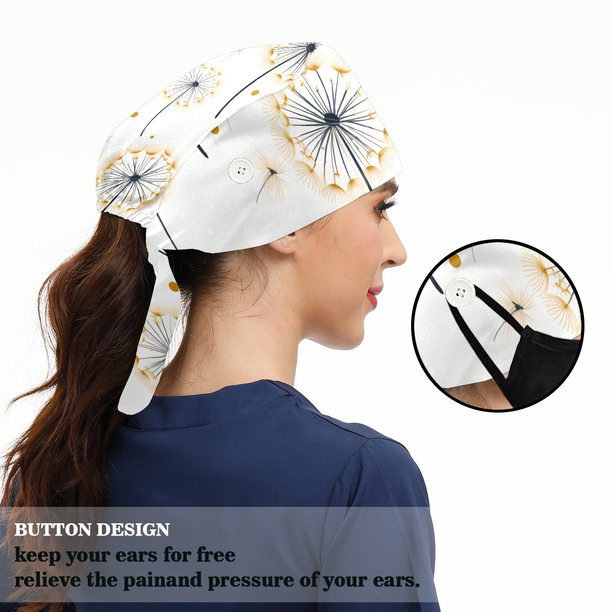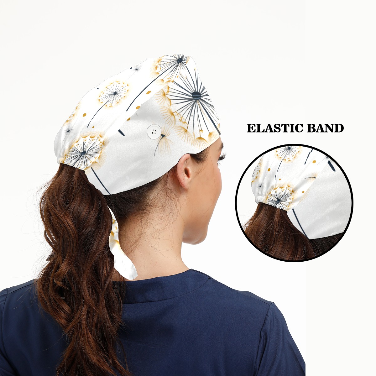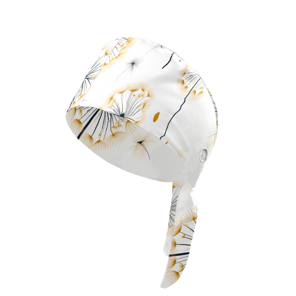 Working Caps with Button&Sweatband Satin Lined Cotton Adjustable Nurse Hats Elastic Band Scrub Cap Surgeon Hat Dandelions