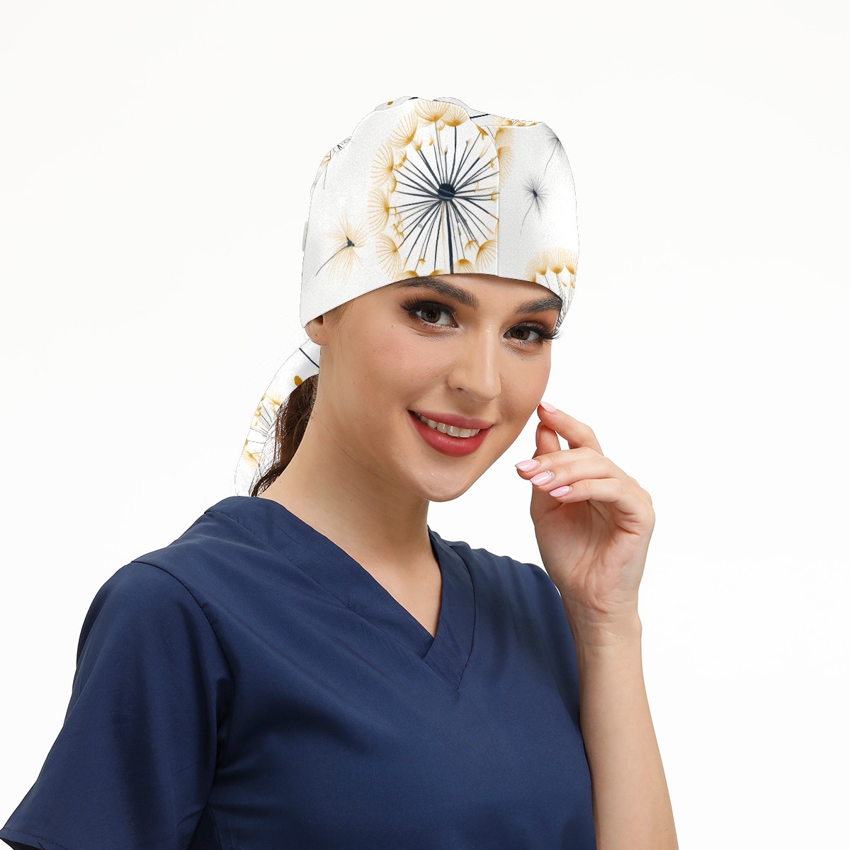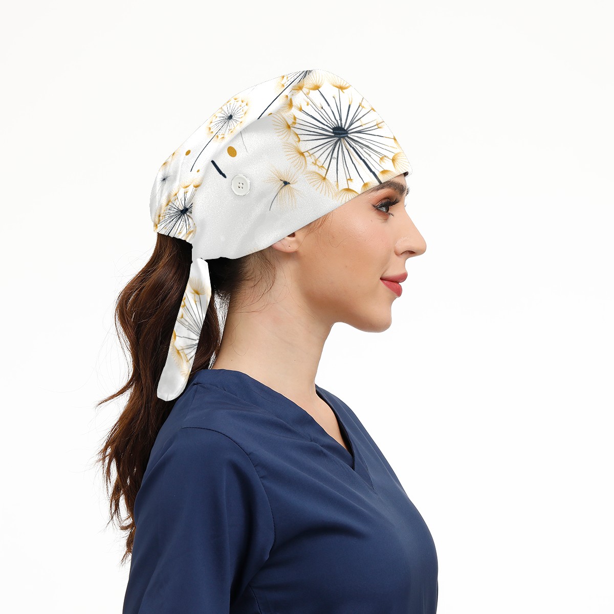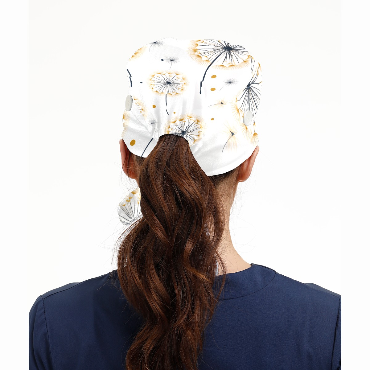Working Caps with Button&Sweatband Satin Lined Cotton Adjustable Nurse Hats Elastic Band Scrub Cap Surgeon Hat Dandelions