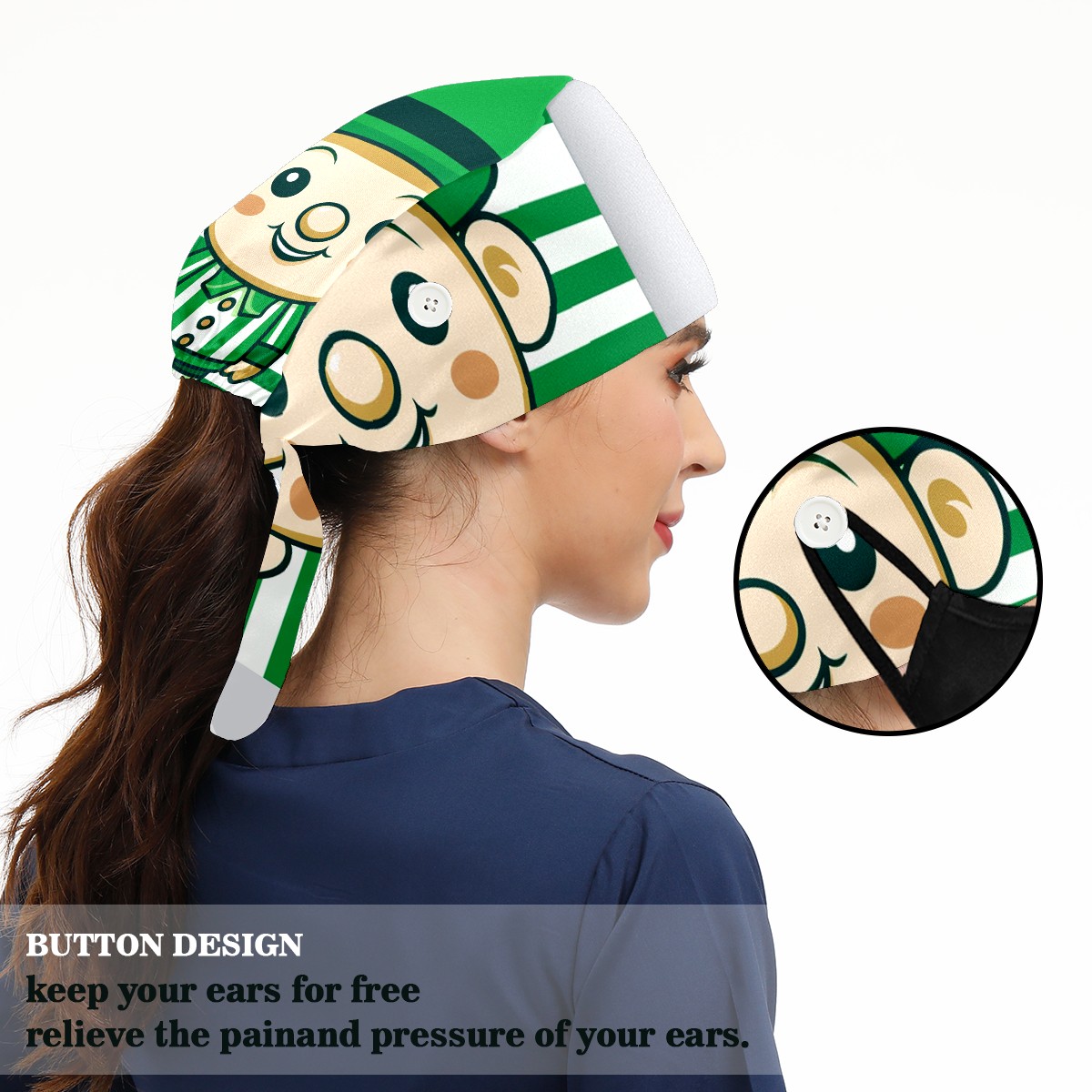 Working Caps with Button&Sweatband Satin Lined Cotton Adjustable Nurse Hats Elastic Band Scrub Cap Surgeon Hat ST Patrick 125