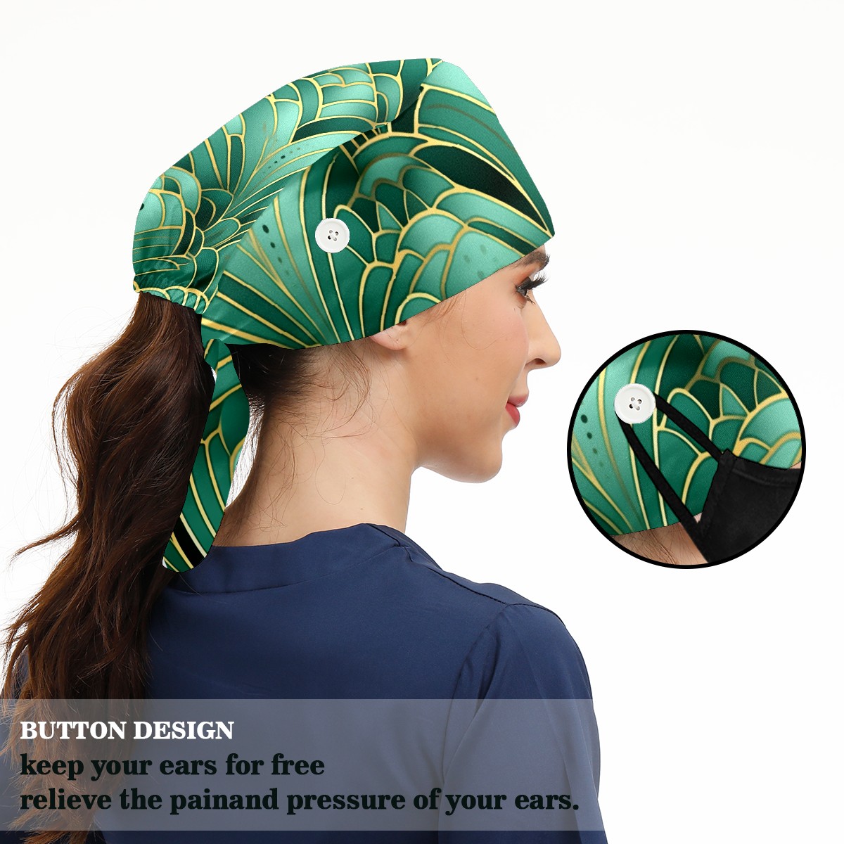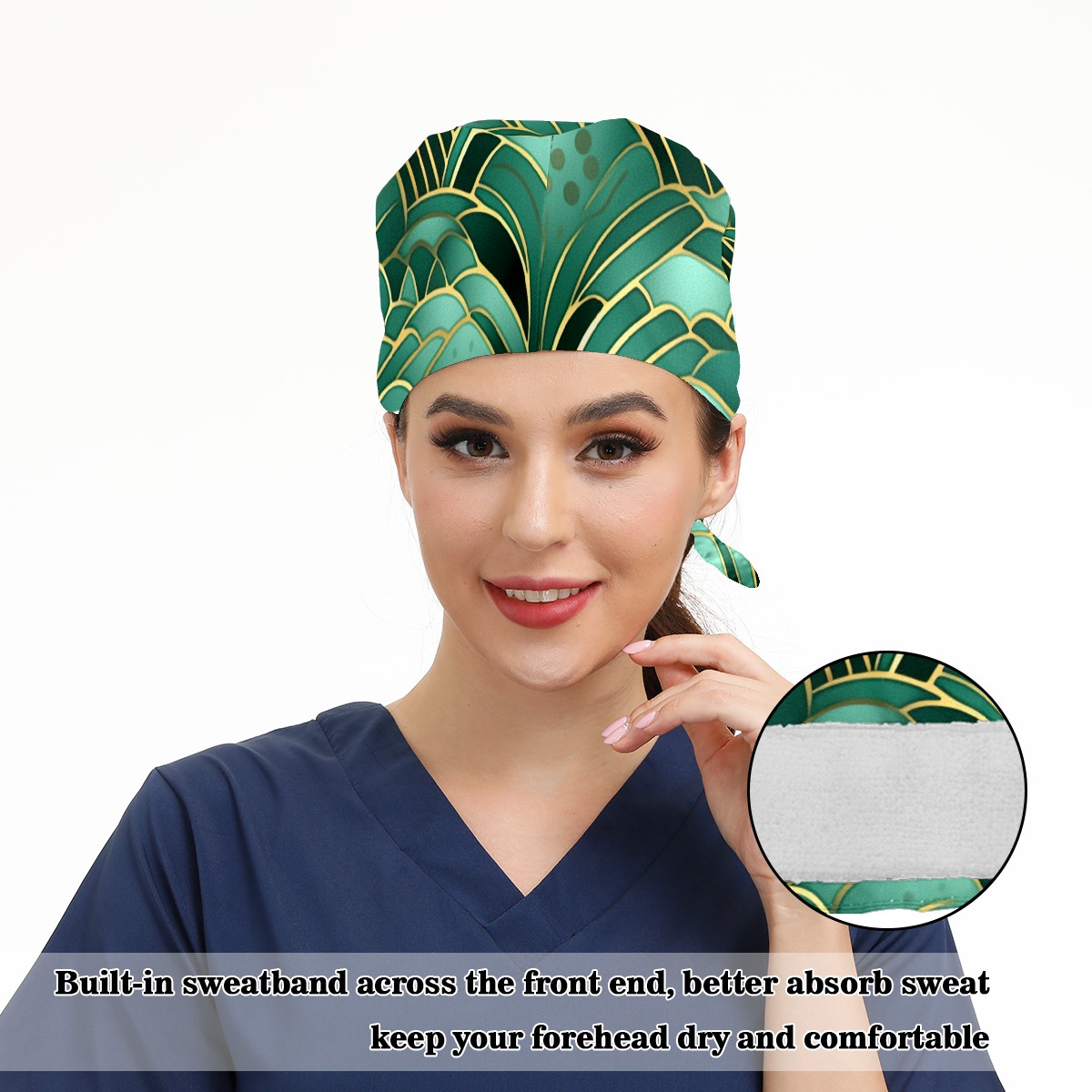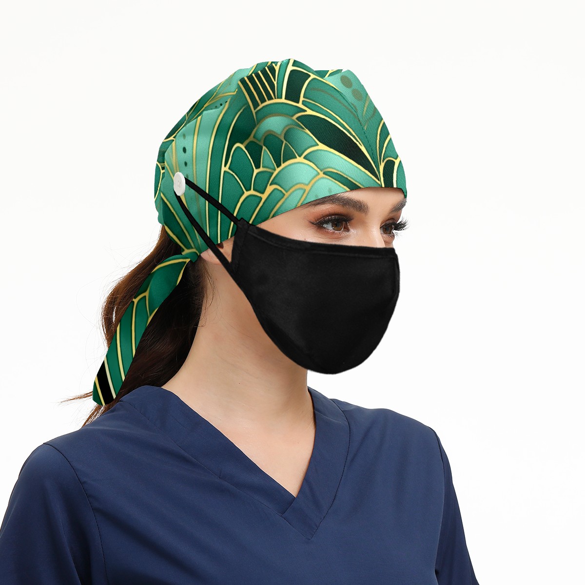 Working Caps with Button&Sweatband Satin Lined Cotton Adjustable Nurse Hats Elastic Band Scrub Cap Surgeon Hat ST Patrick 119
