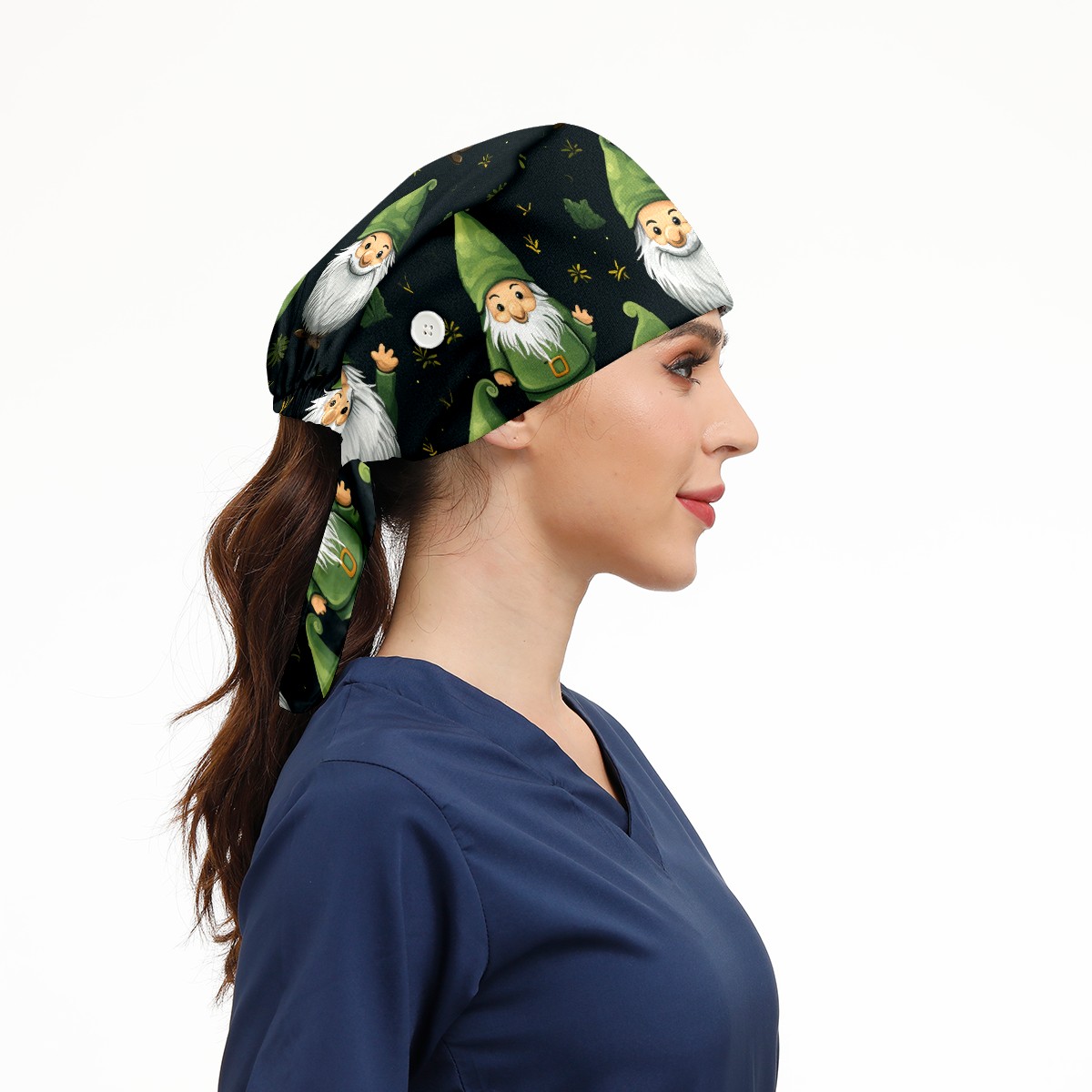 Working Caps with Button&Sweatband Satin Lined Cotton Adjustable Nurse Hats Elastic Band Scrub Cap Surgeon Hat ST Patrick 99