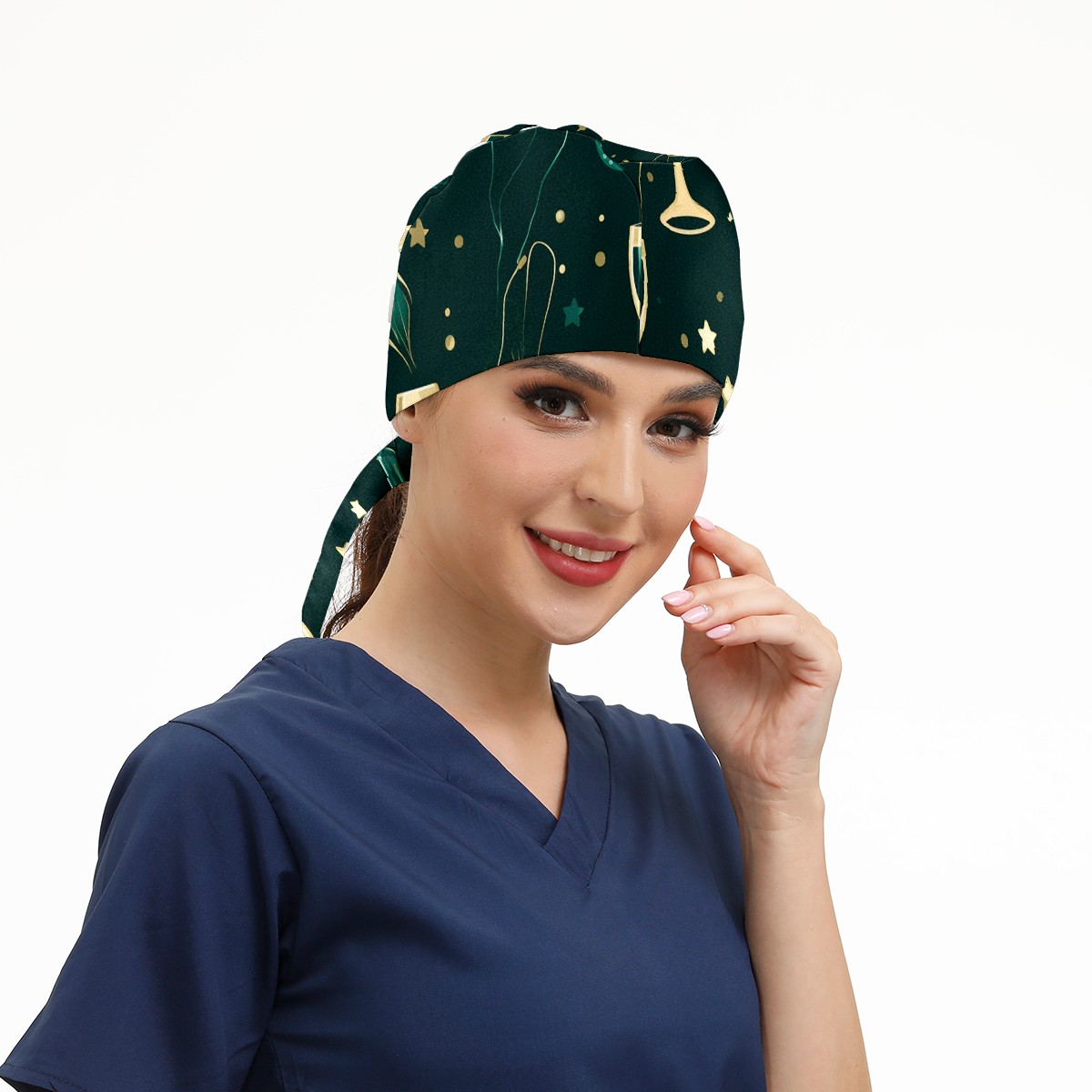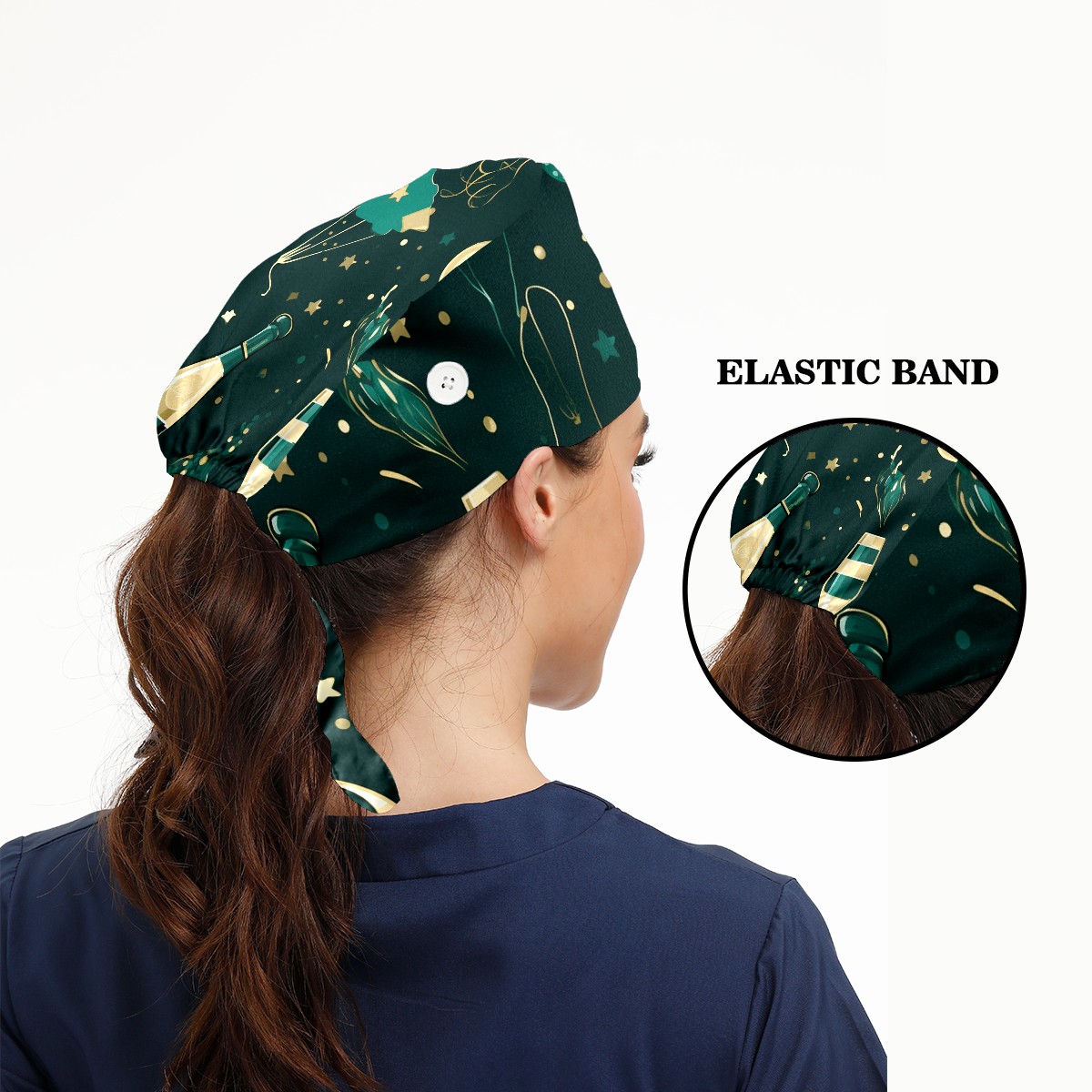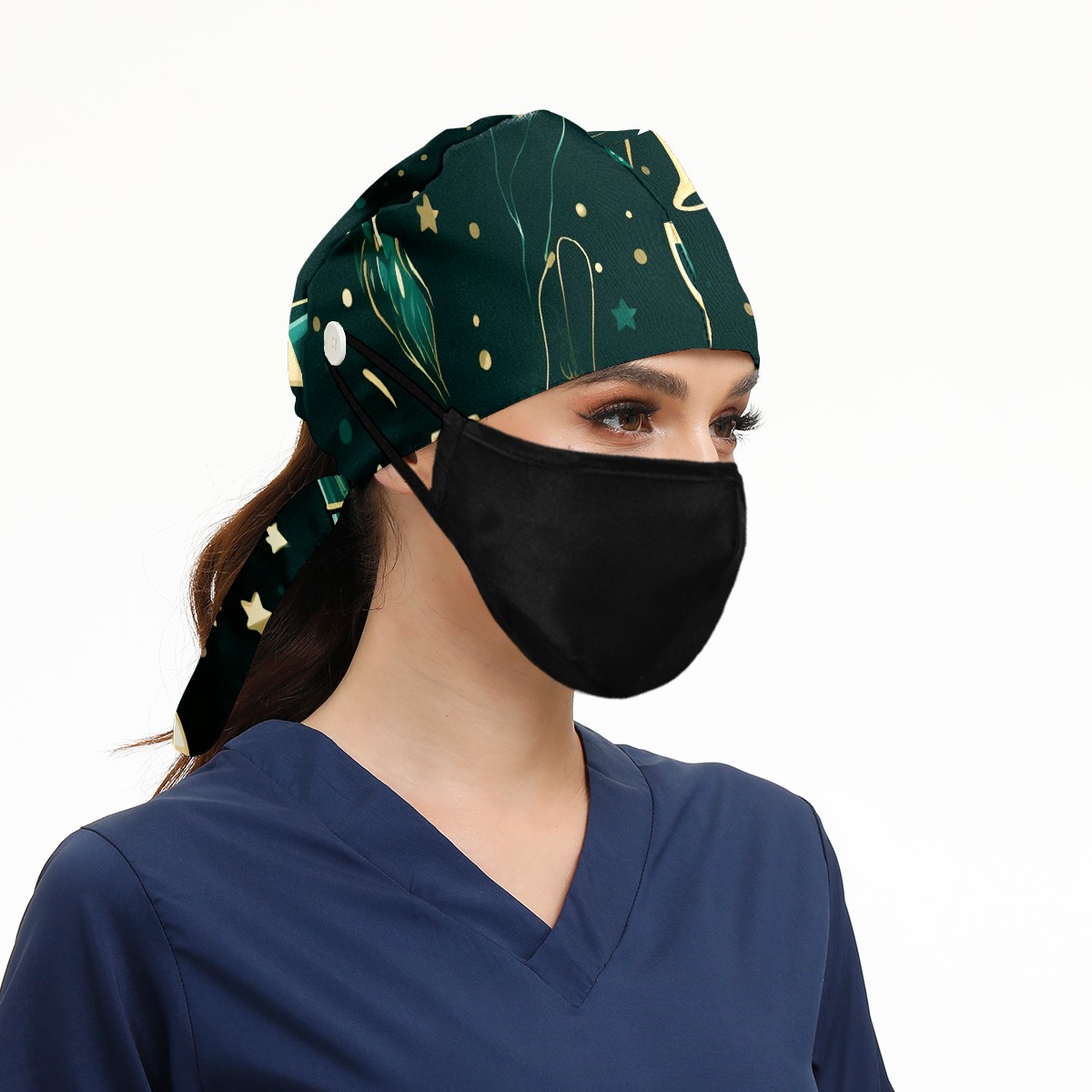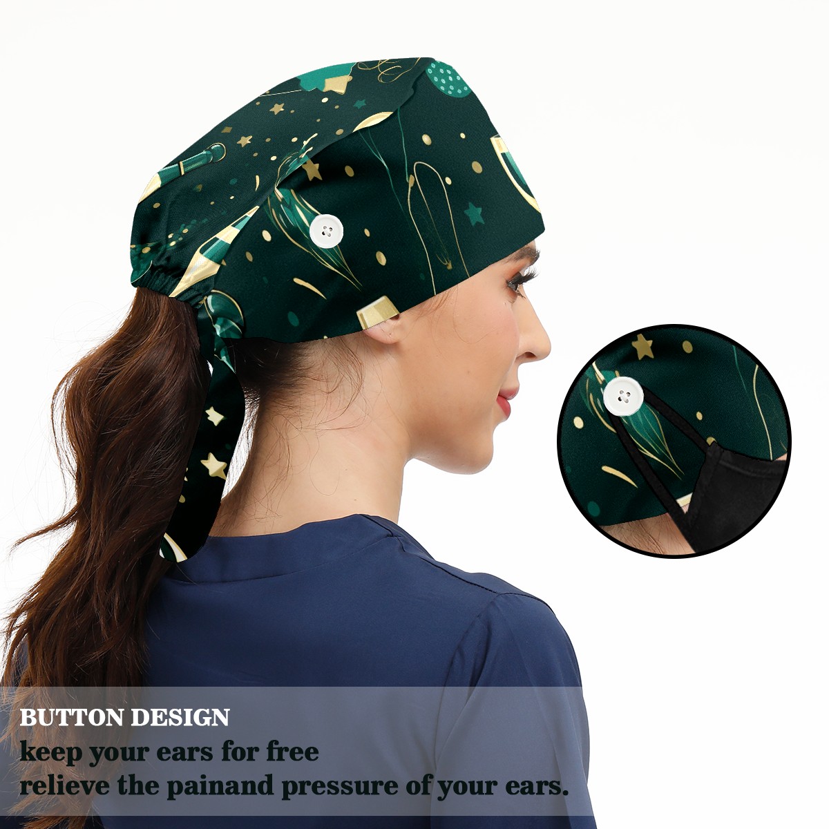 Working Caps with Button&Sweatband Satin Lined Cotton Adjustable Nurse Hats Elastic Band Scrub Cap Surgeon Hat ST Patrick 82