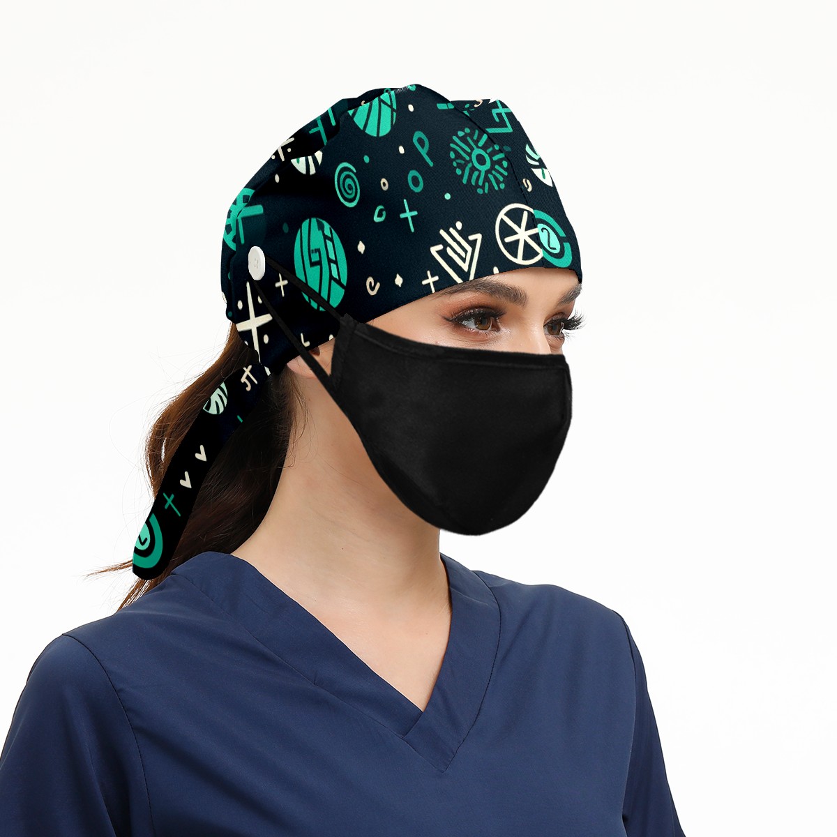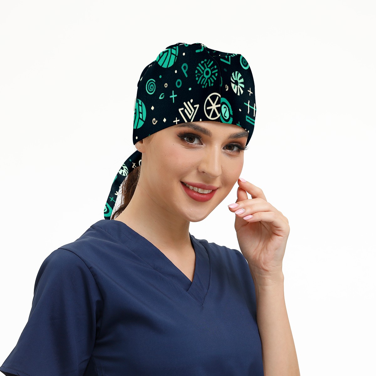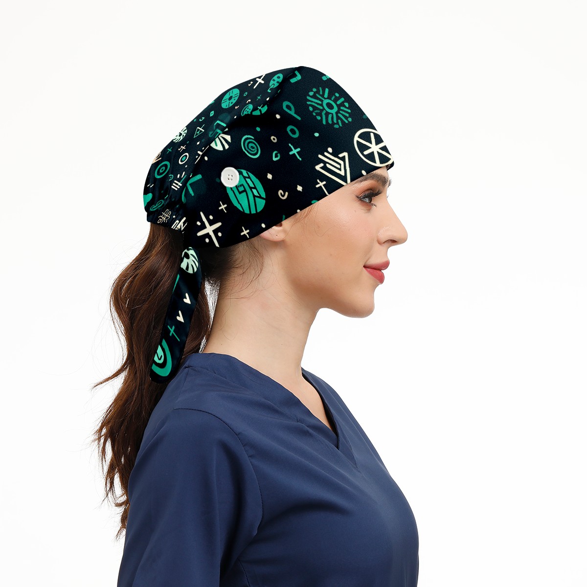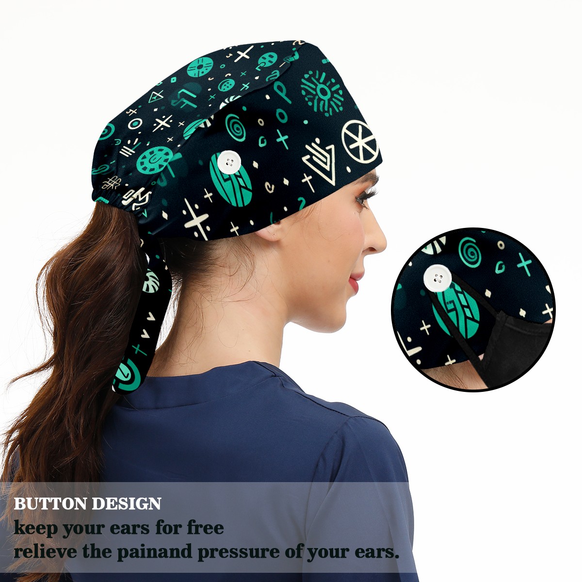 Working Caps with Button&Sweatband Satin Lined Cotton Adjustable Nurse Hats Elastic Band Scrub Cap Surgeon Hat ST Patrick 75