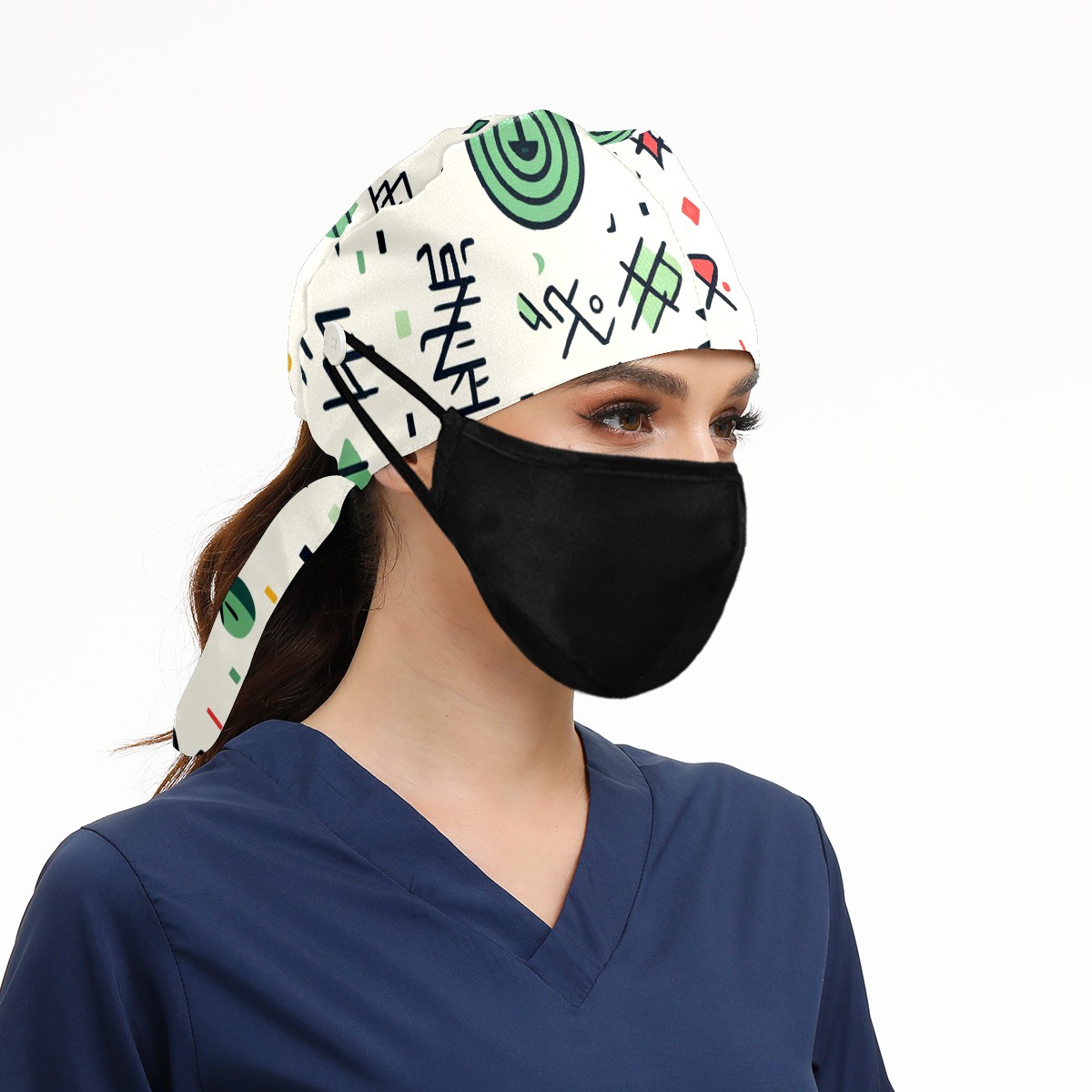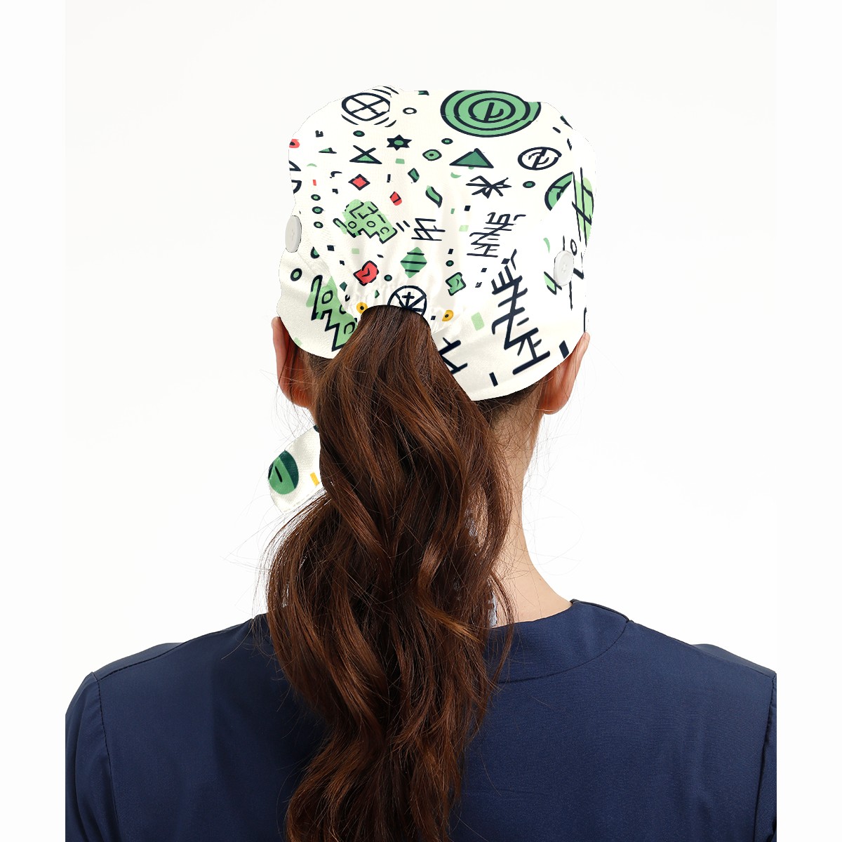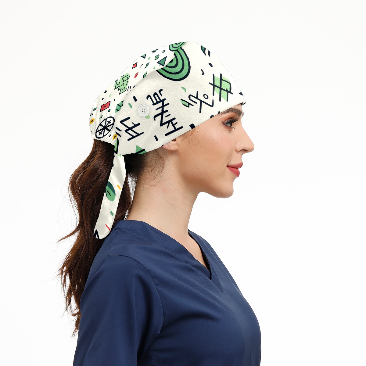 Working Caps with Button&Sweatband Satin Lined Cotton Adjustable Nurse Hats Elastic Band Scrub Cap Surgeon Hat ST Patrick 74