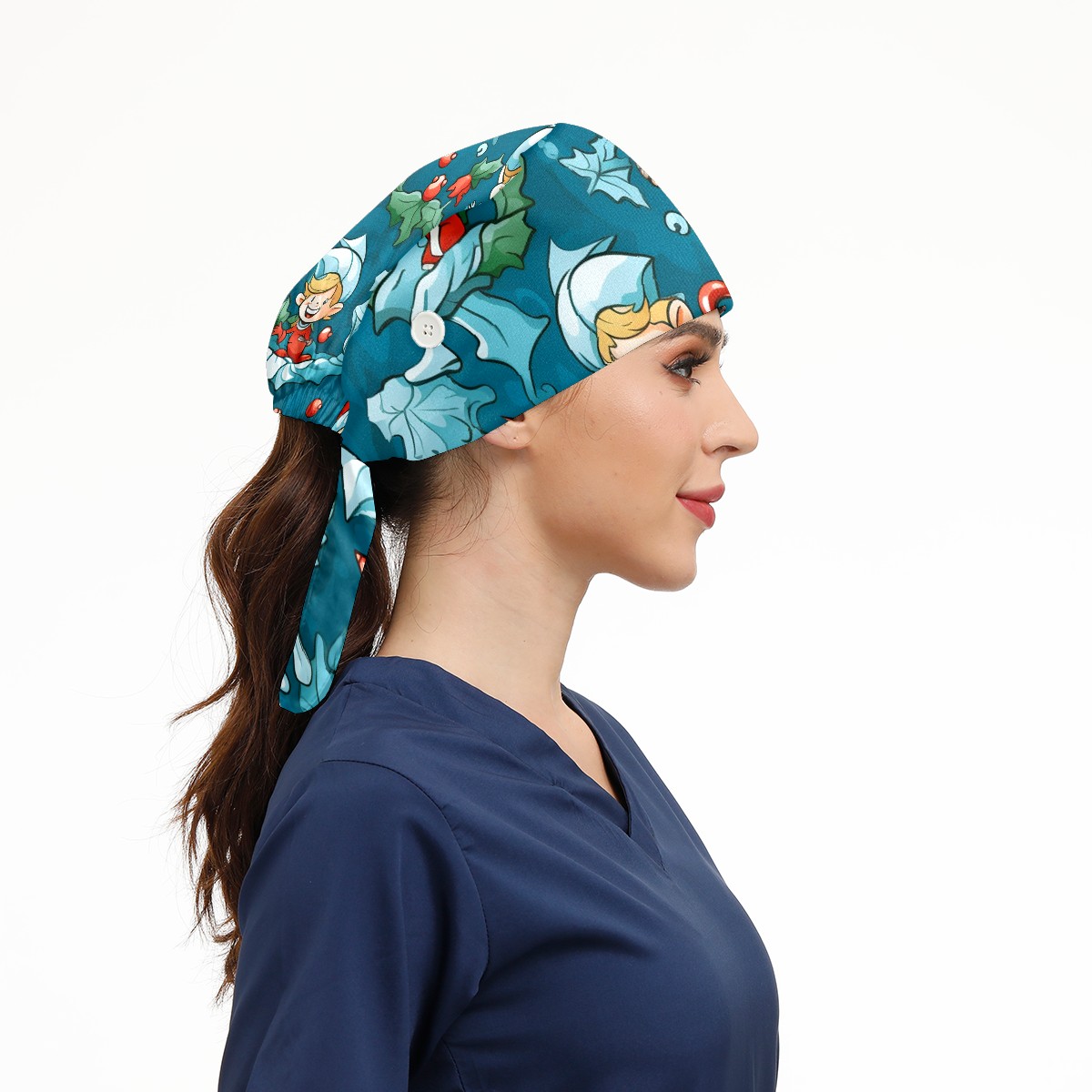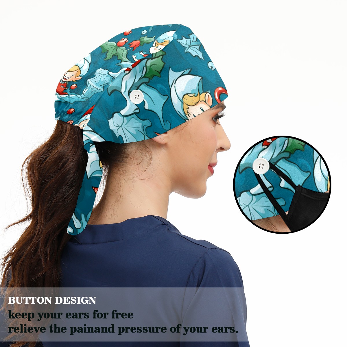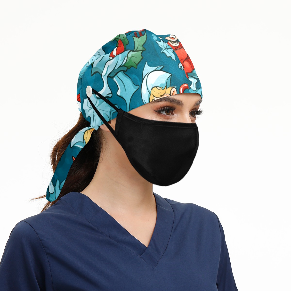 Working Caps with Button&Sweatband Satin Lined Cotton Adjustable Nurse Hats Elastic Band Scrub Cap Surgeon Hat ST Patrick 66