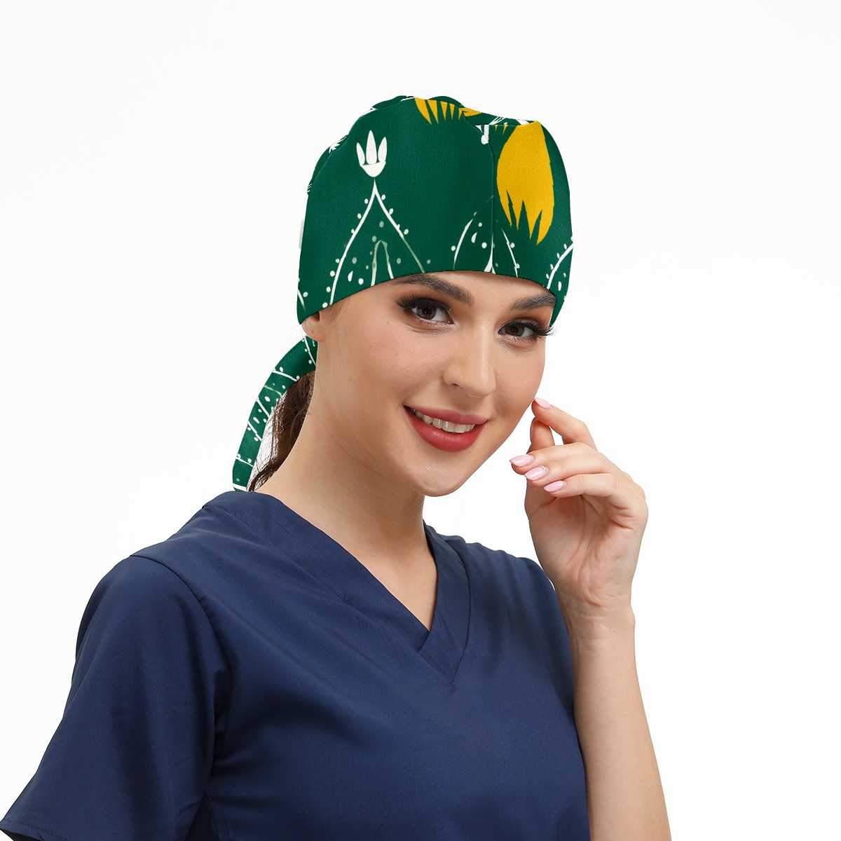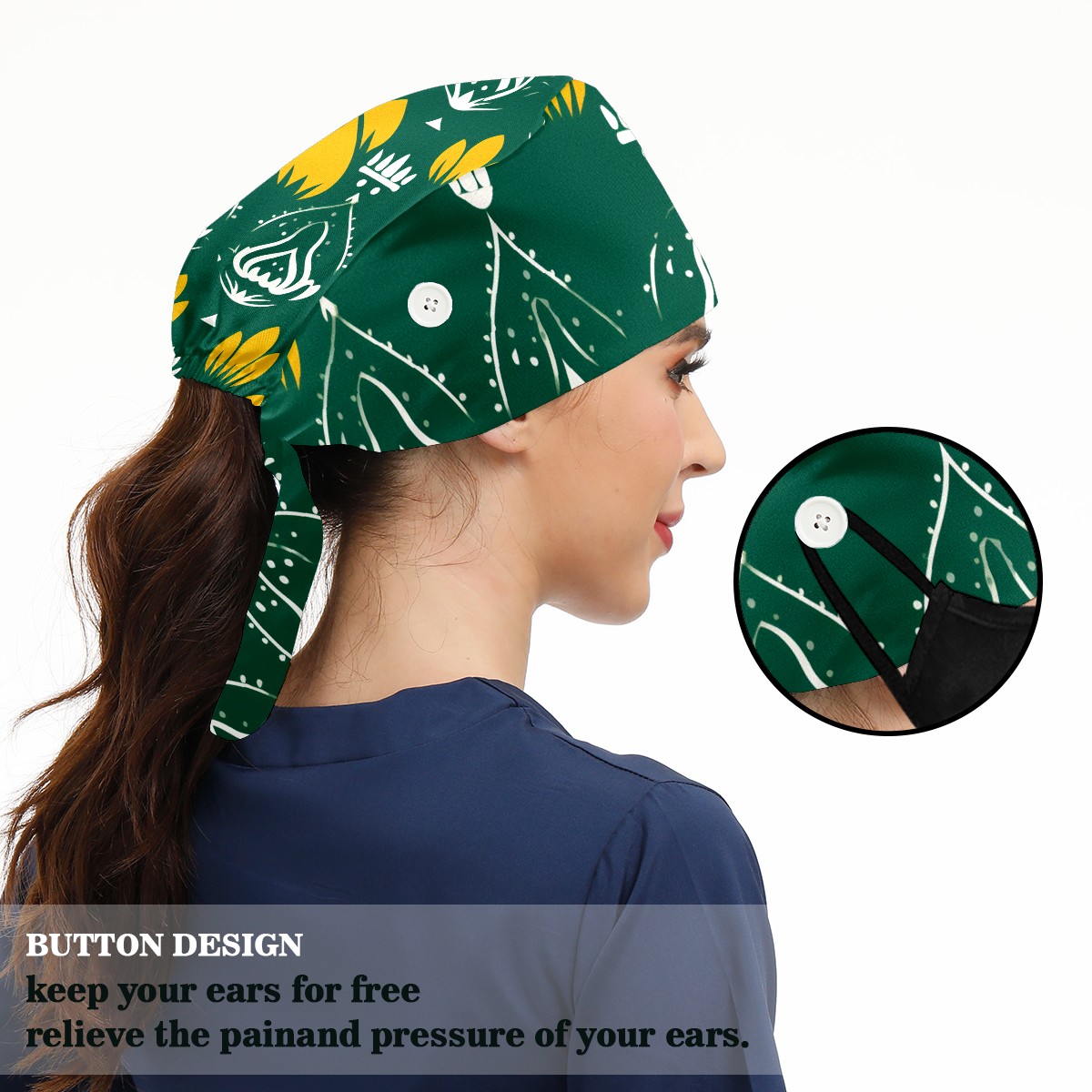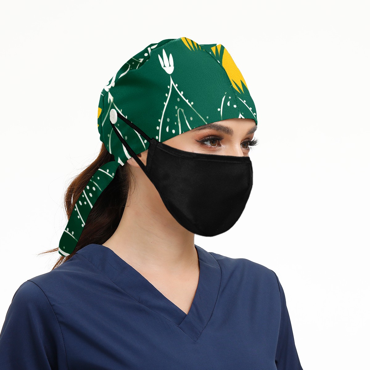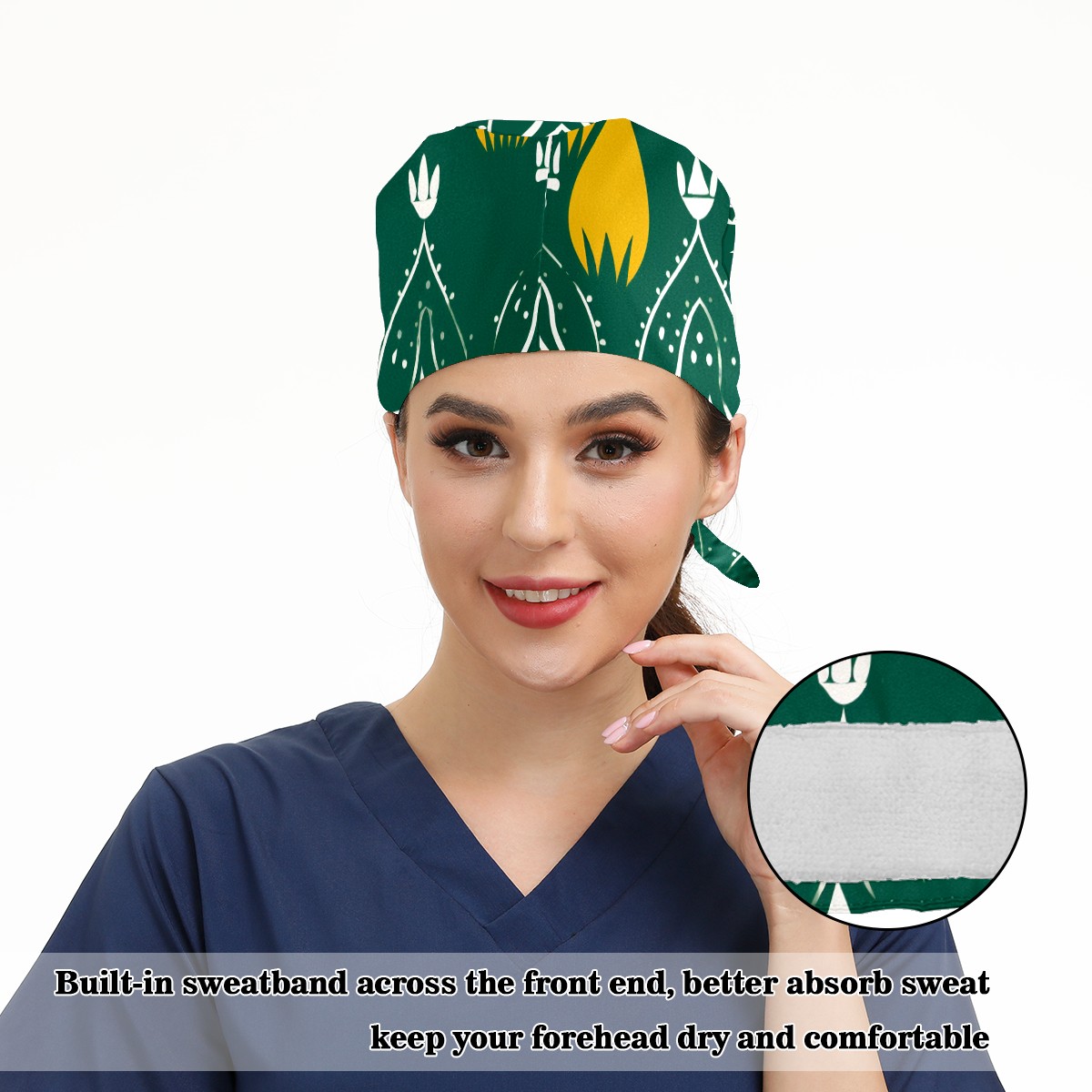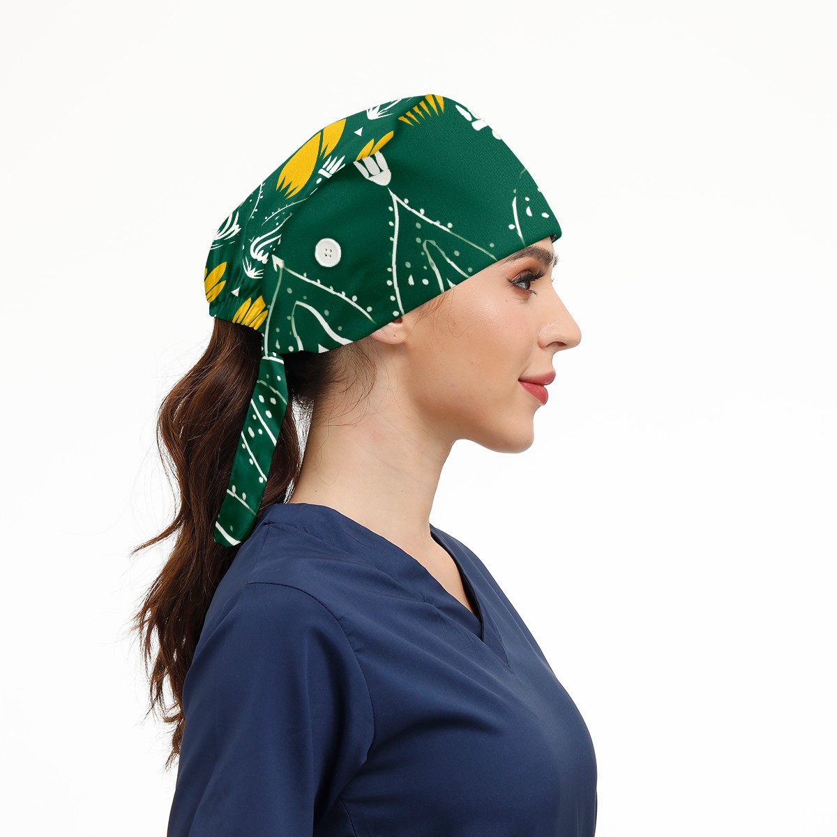 Working Caps with Button&Sweatband Satin Lined Cotton Adjustable Nurse Hats Elastic Band Scrub Cap Surgeon Hat St. Patrick177
