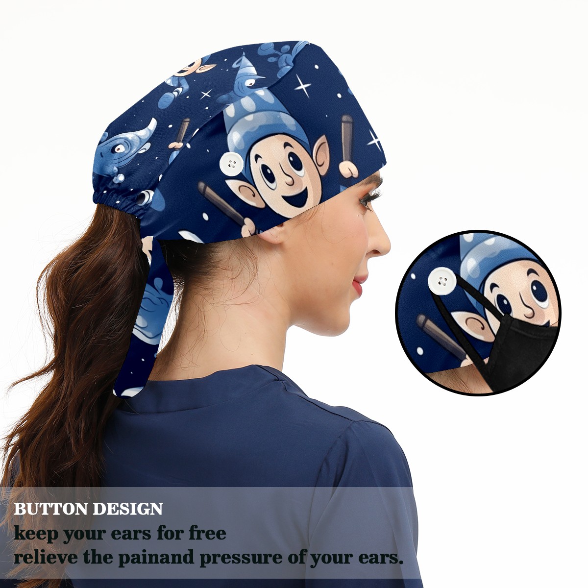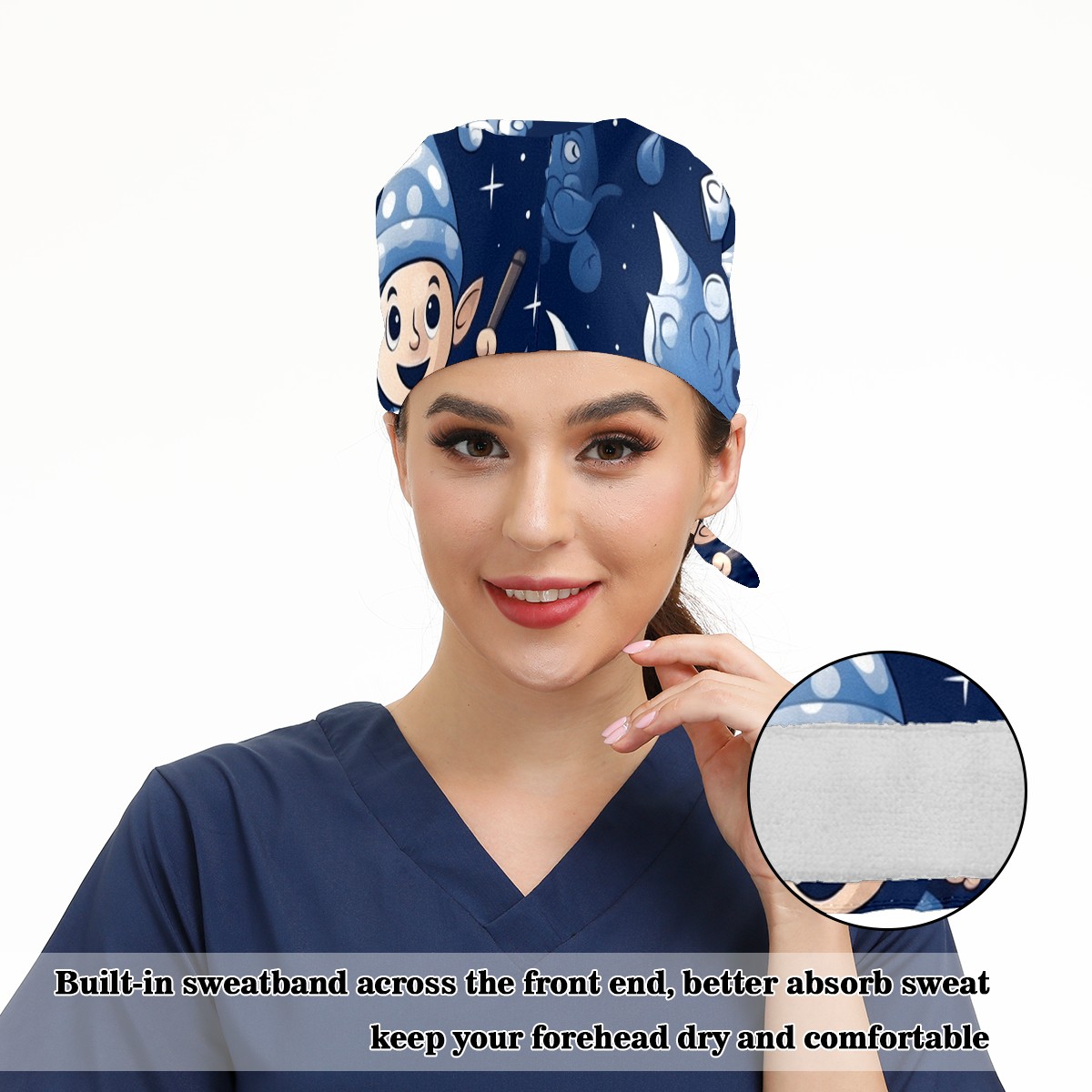 Working Caps with Button&Sweatband Satin Lined Cotton Adjustable Nurse Hats Elastic Band Scrub Cap Surgeon Hat St. Patrick106