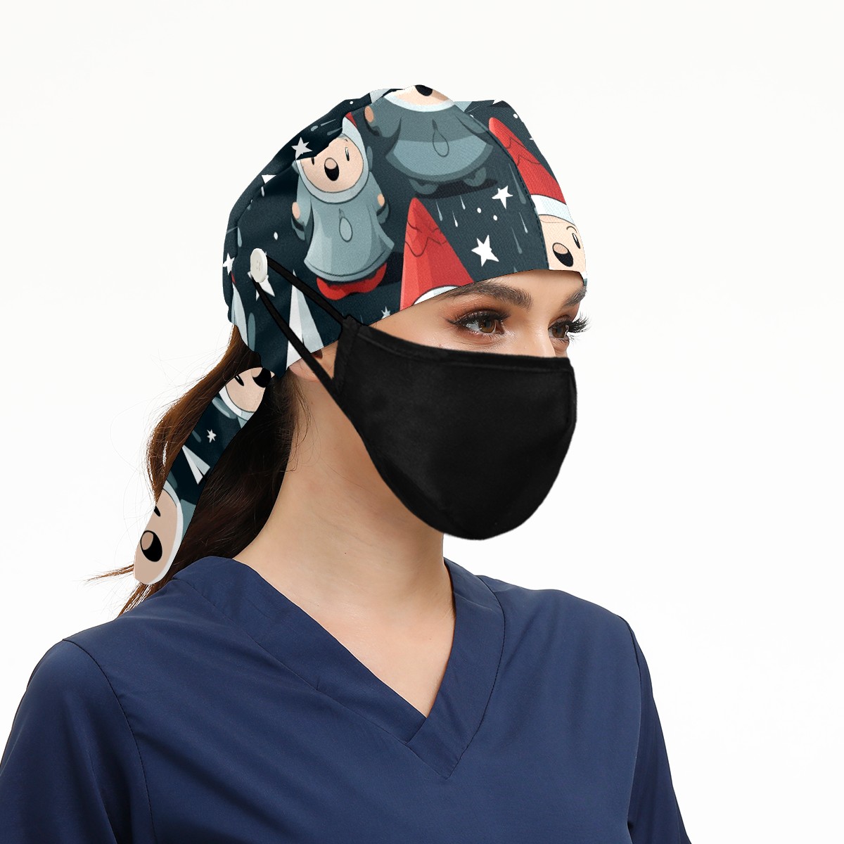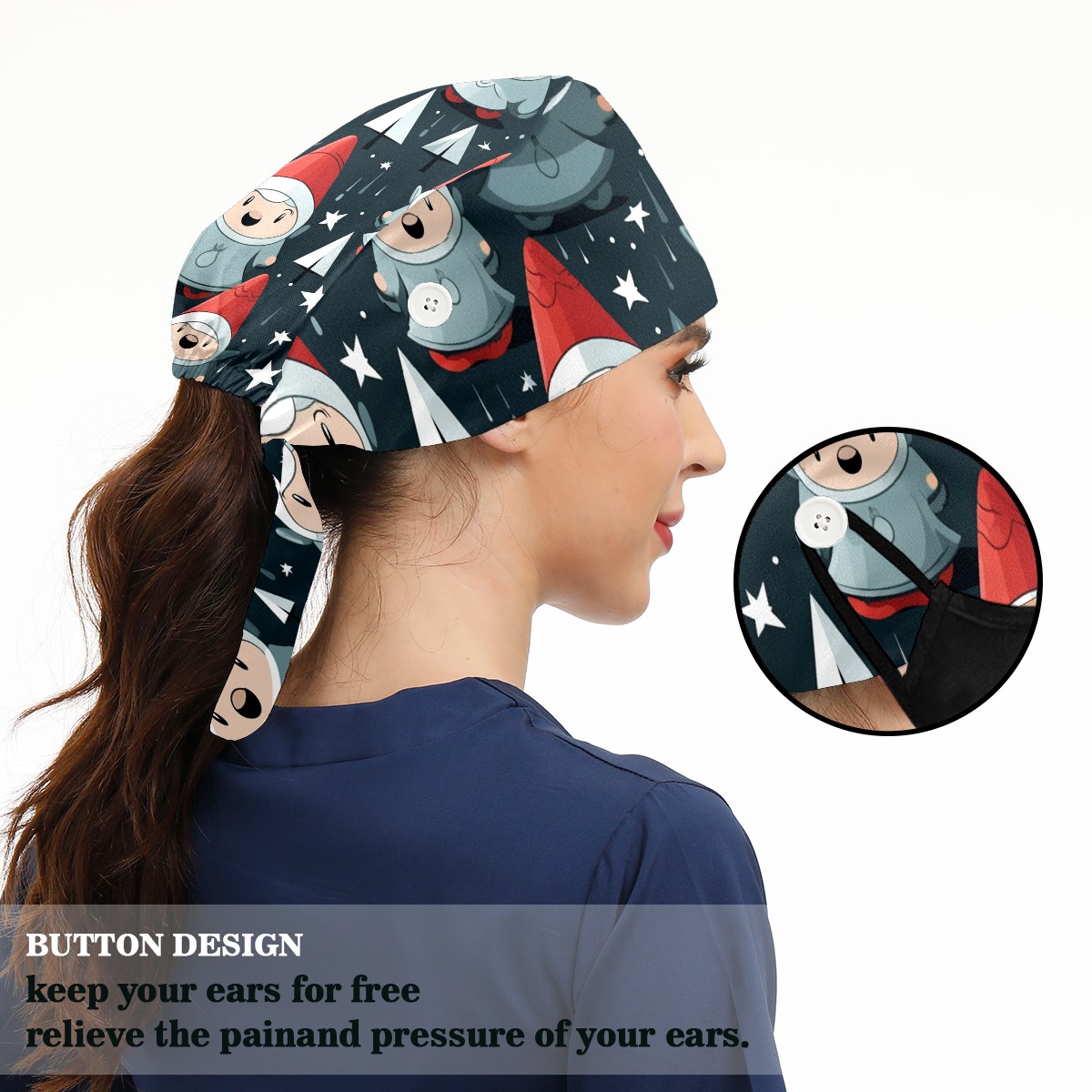 Working Caps with Button&Sweatband Satin Lined Cotton Adjustable Nurse Hats Elastic Band Scrub Cap Surgeon Hat St. Patrick104