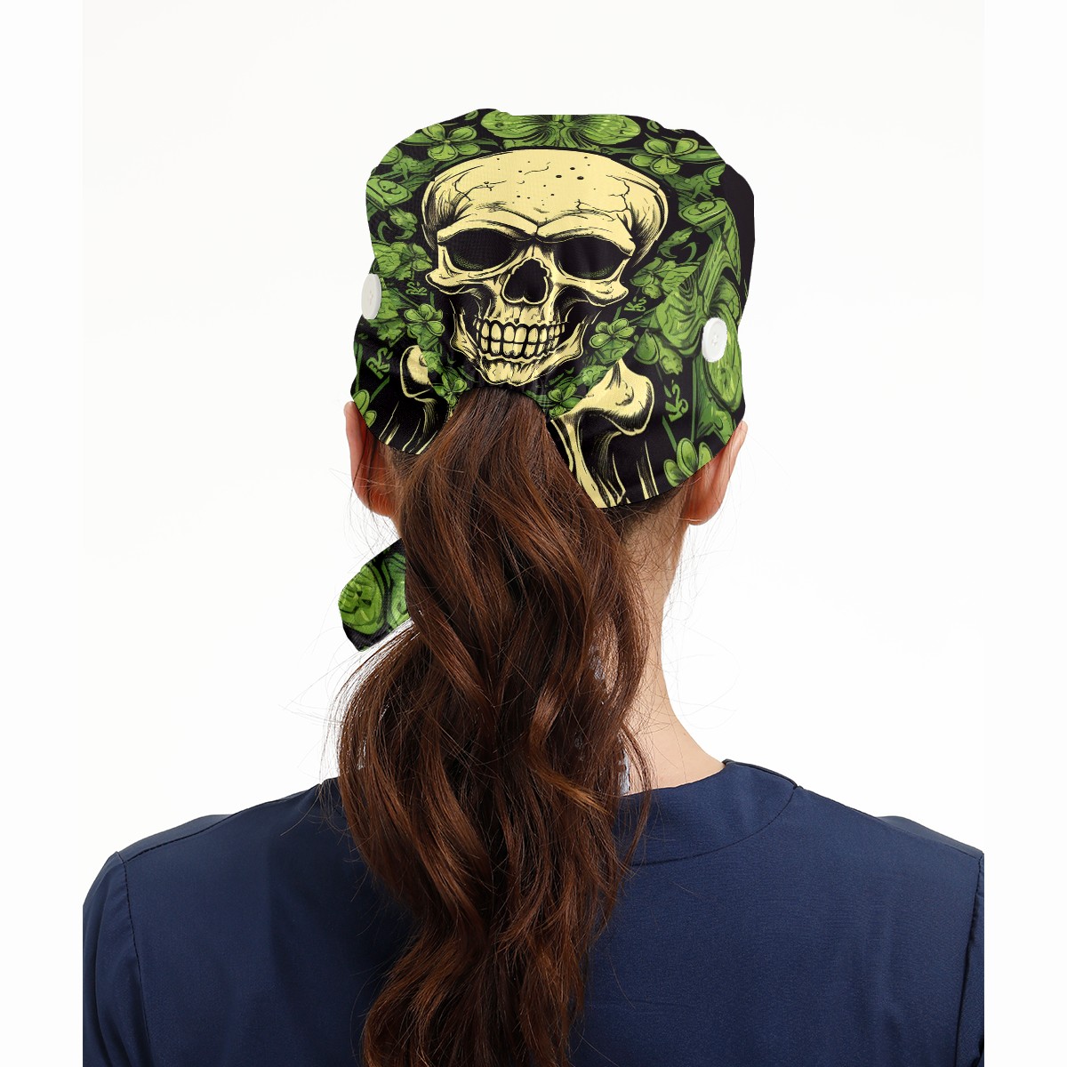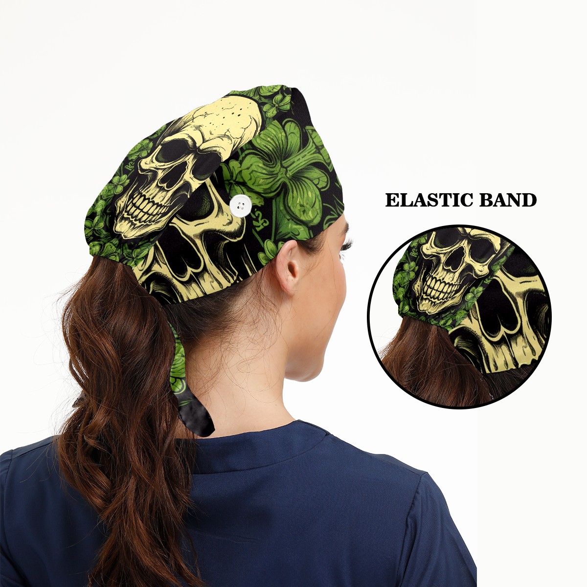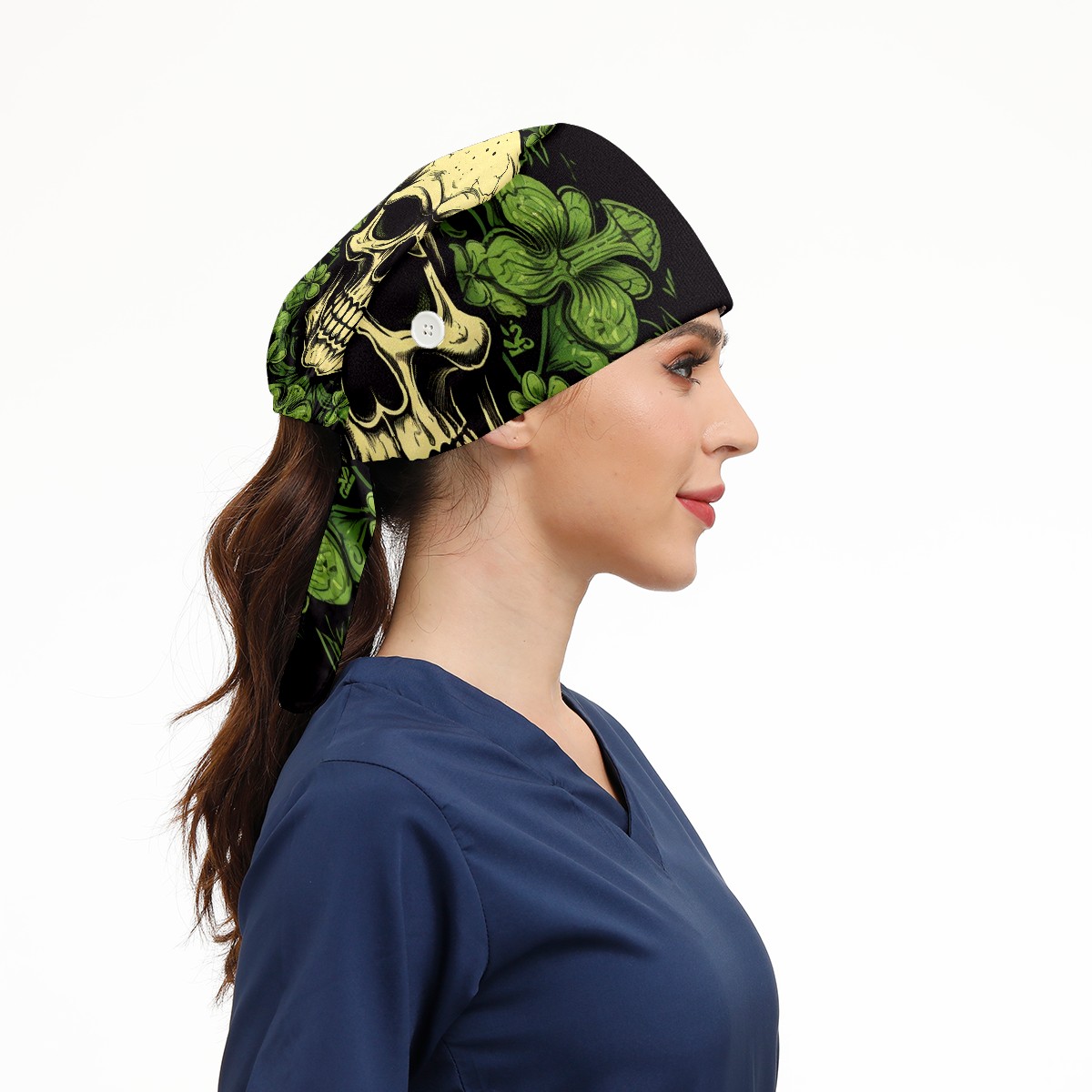Working Caps with Button&Sweatband Satin Lined Cotton Adjustable Nurse Hats Elastic Band Scrub Cap Surgeon Hat St. Patrick's Day (78)