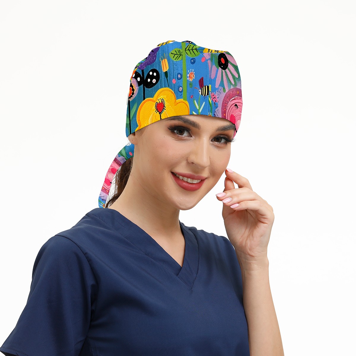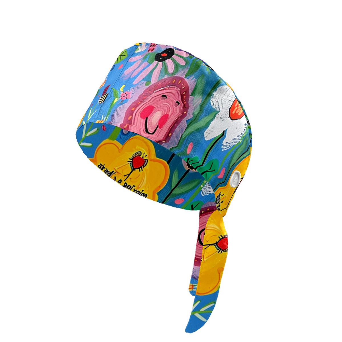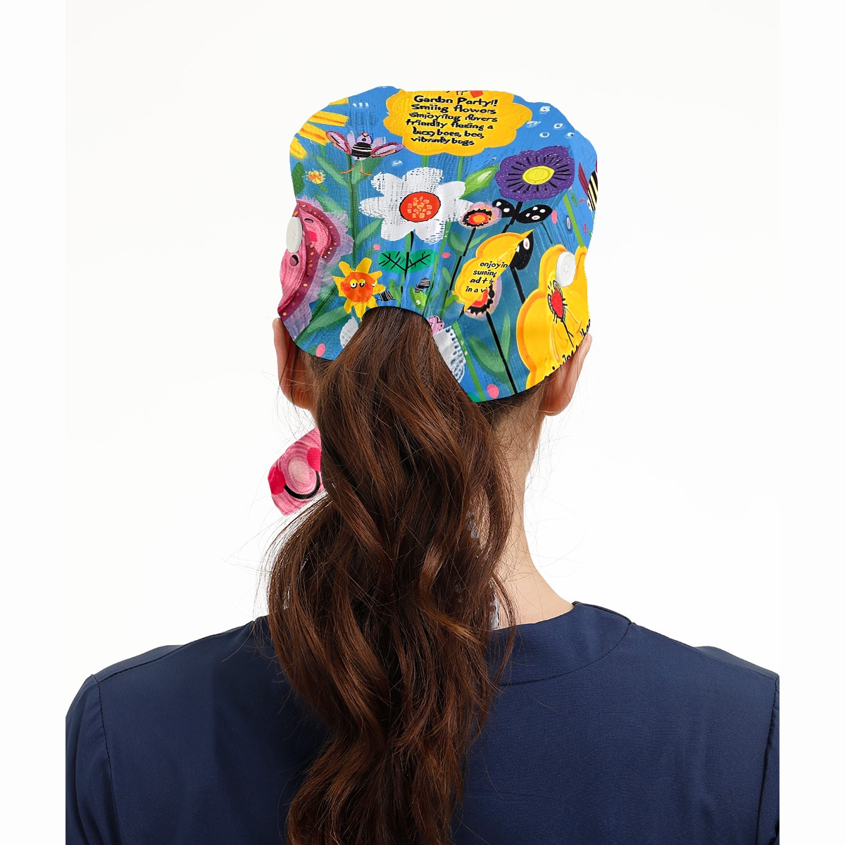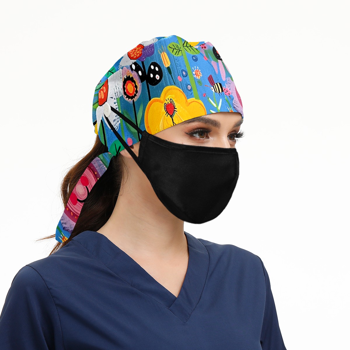 Working Caps with Button&Sweatband Satin Lined Cotton Adjustable Nurse Hats Elastic Band Scrub Cap Surgeon Hat Sunflower
