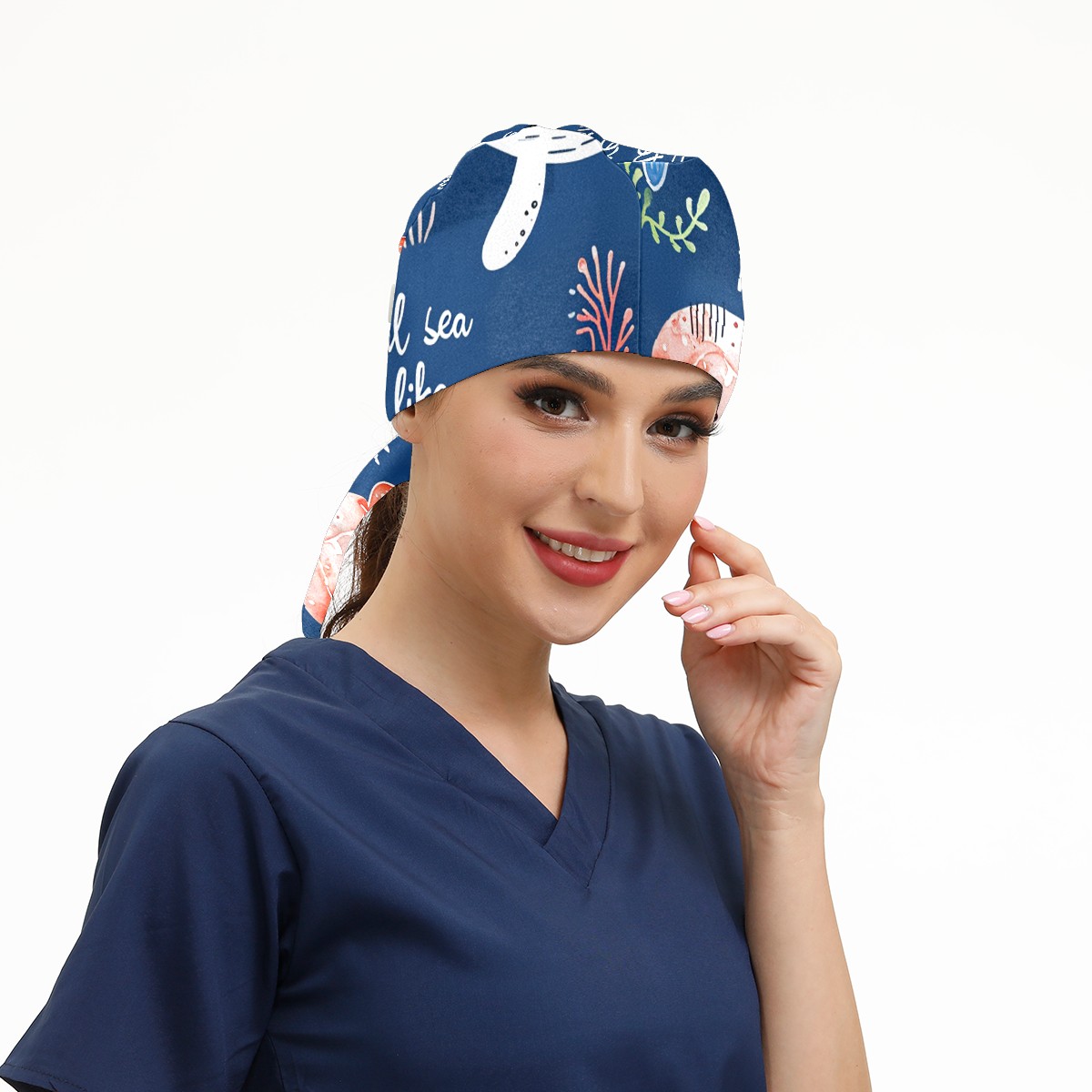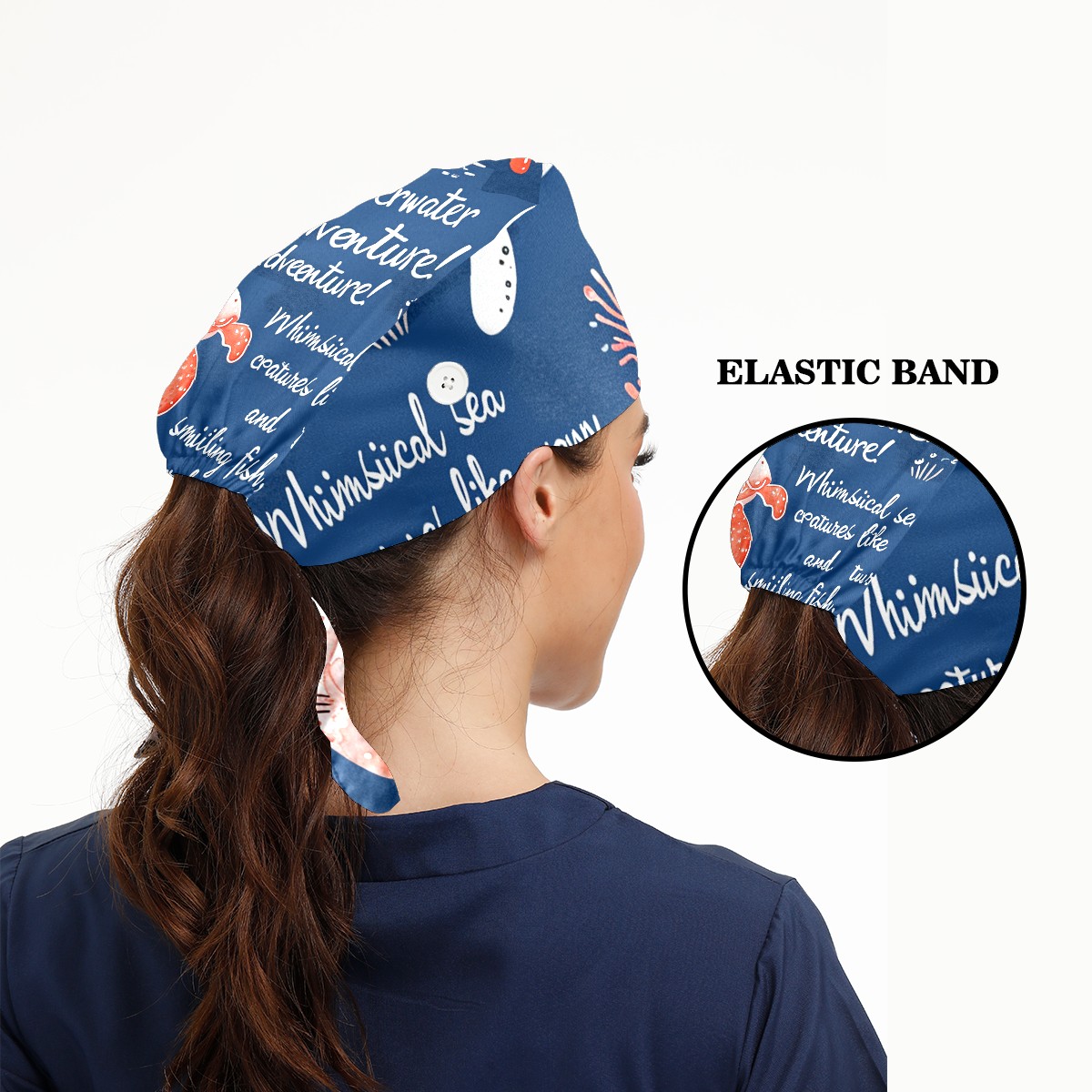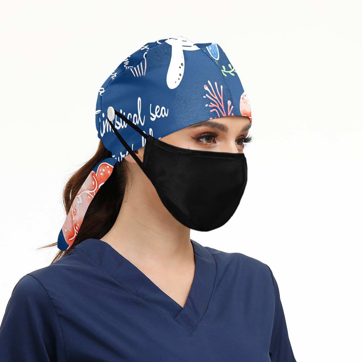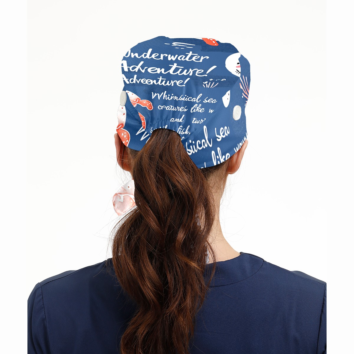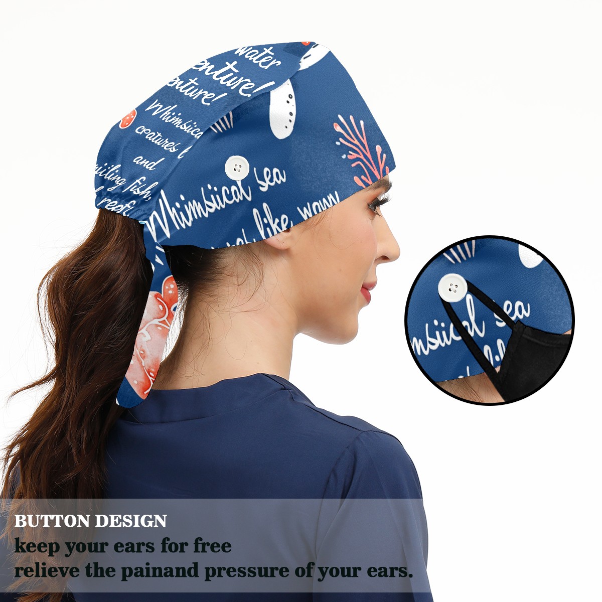Working Caps with Button&Sweatband Satin Lined Cotton Adjustable Nurse Hats Elastic Band Scrub Cap Surgeon Hat Octopus