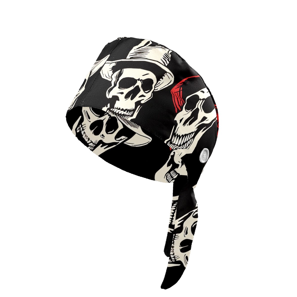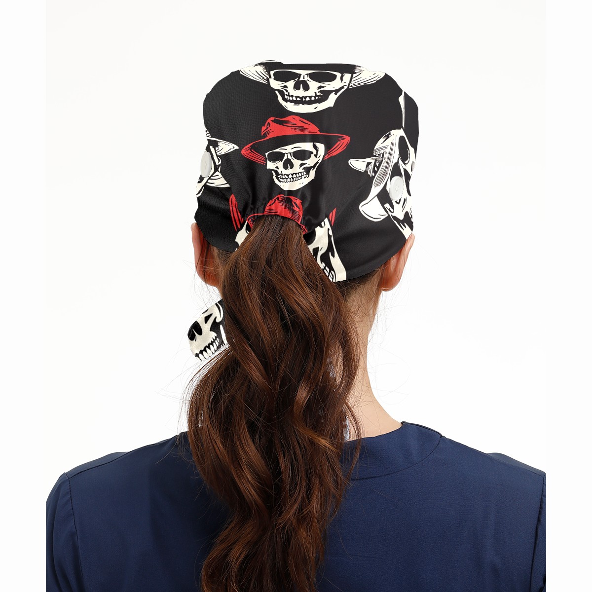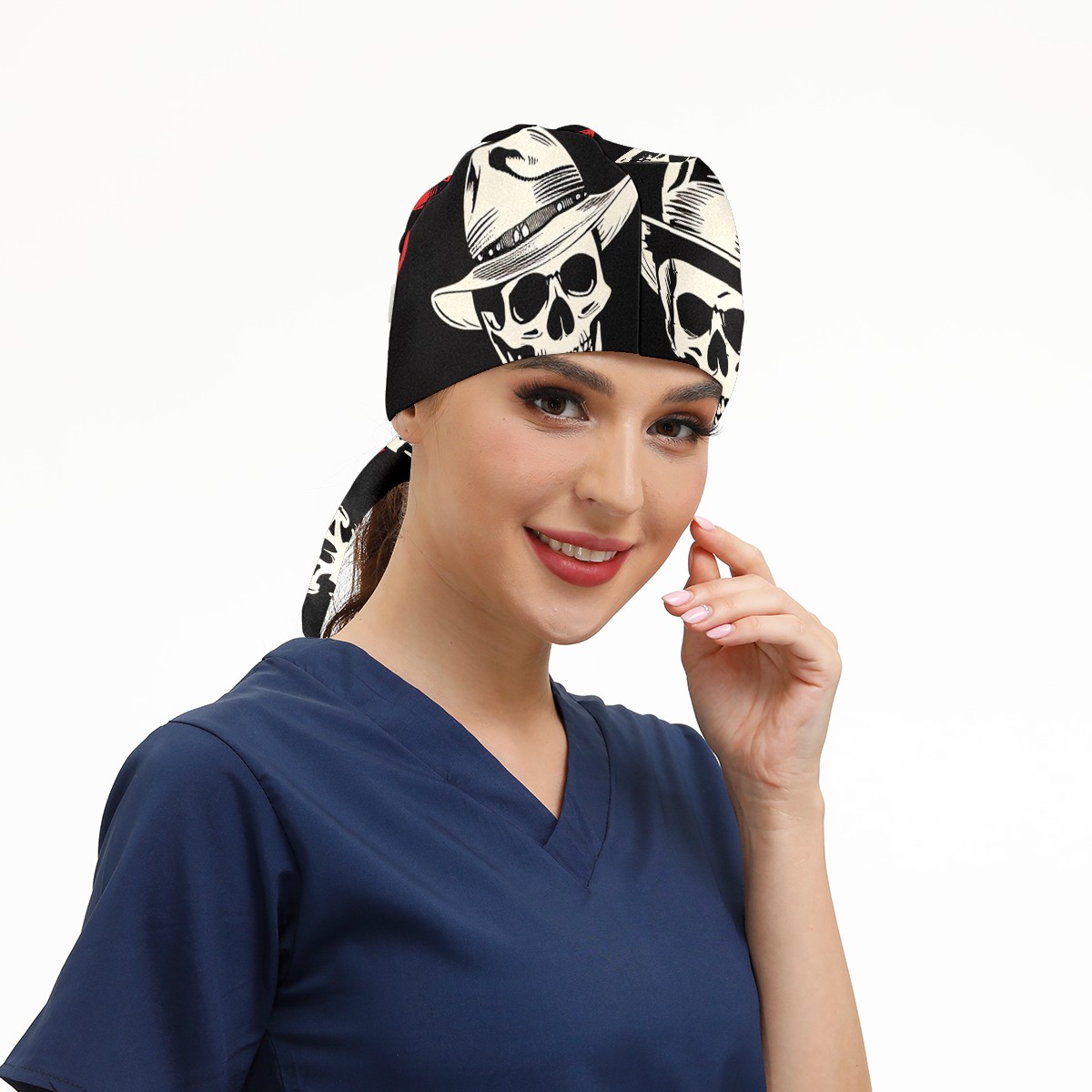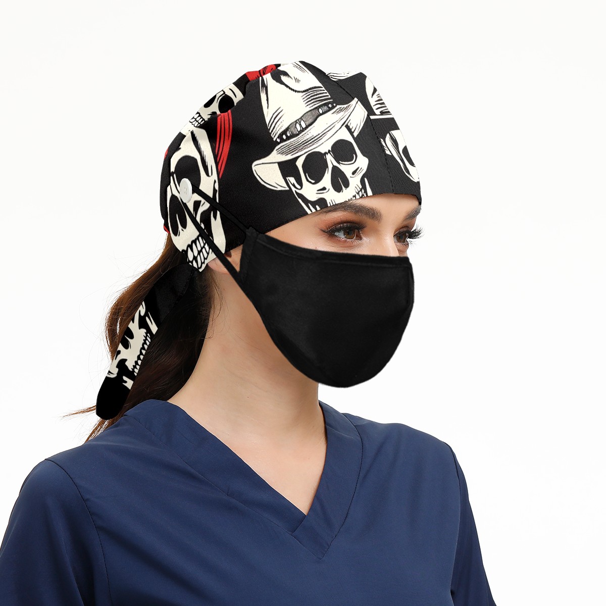 Working Caps with Button&Sweatband Satin Lined Cotton Adjustable Nurse Hats Elastic Band Scrub Cap Surgeon Hat Skull Head