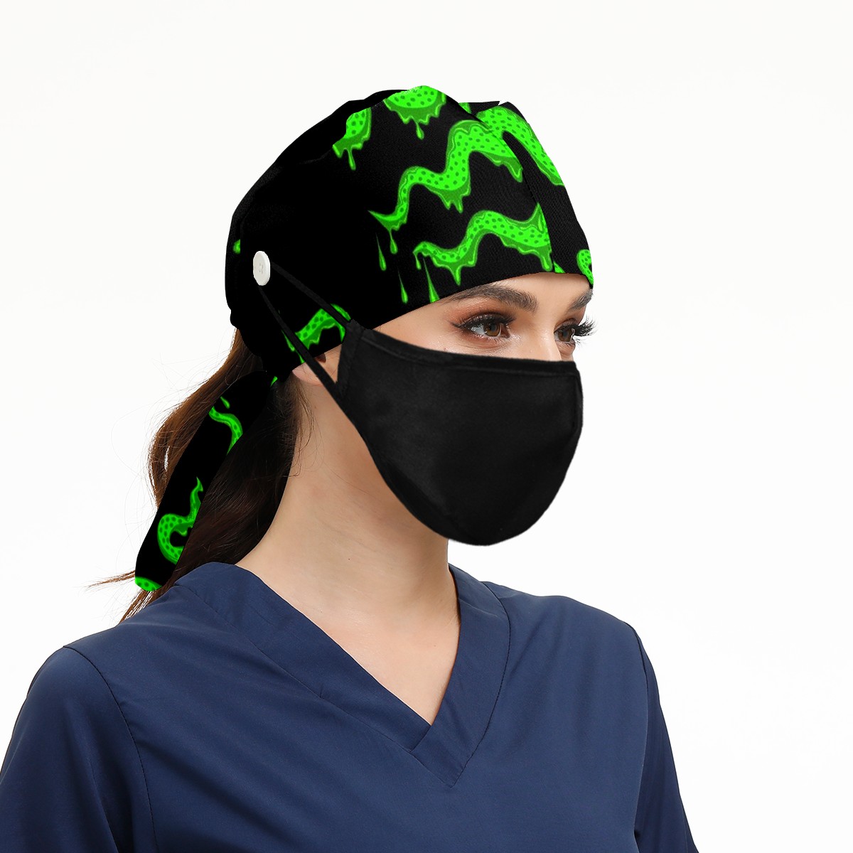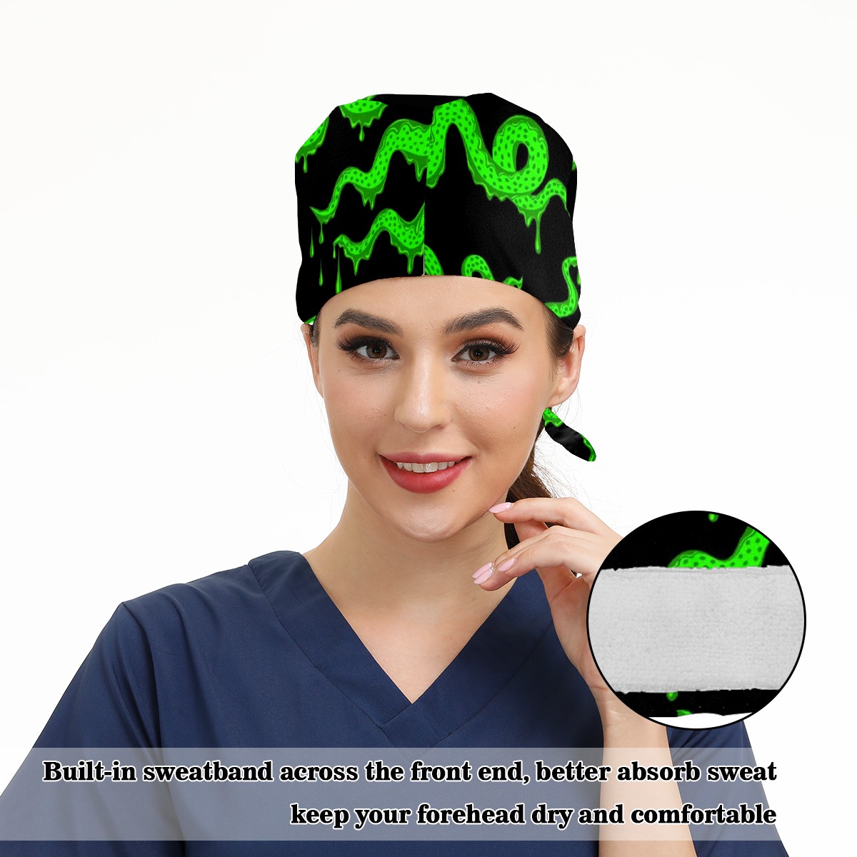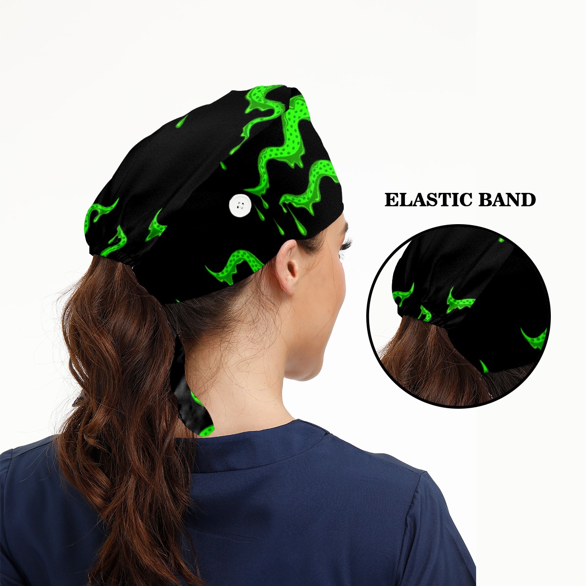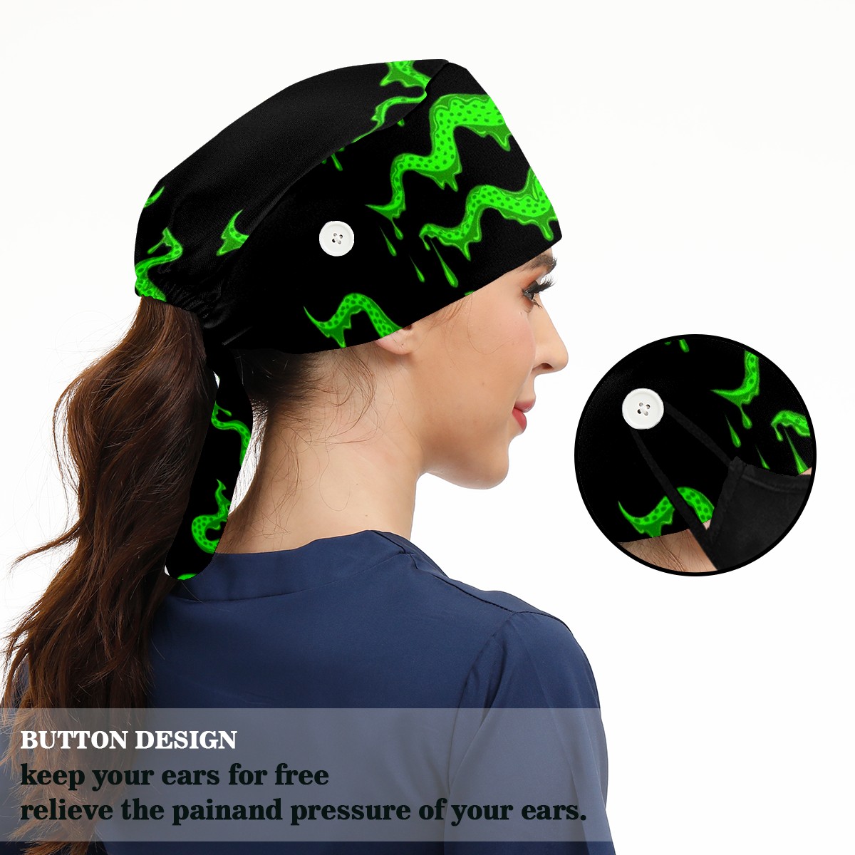 Working Caps with Button&Sweatband Satin Lined Cotton Adjustable Nurse Hats Elastic Band Scrub Cap Surgeon Hat Green Marine Life