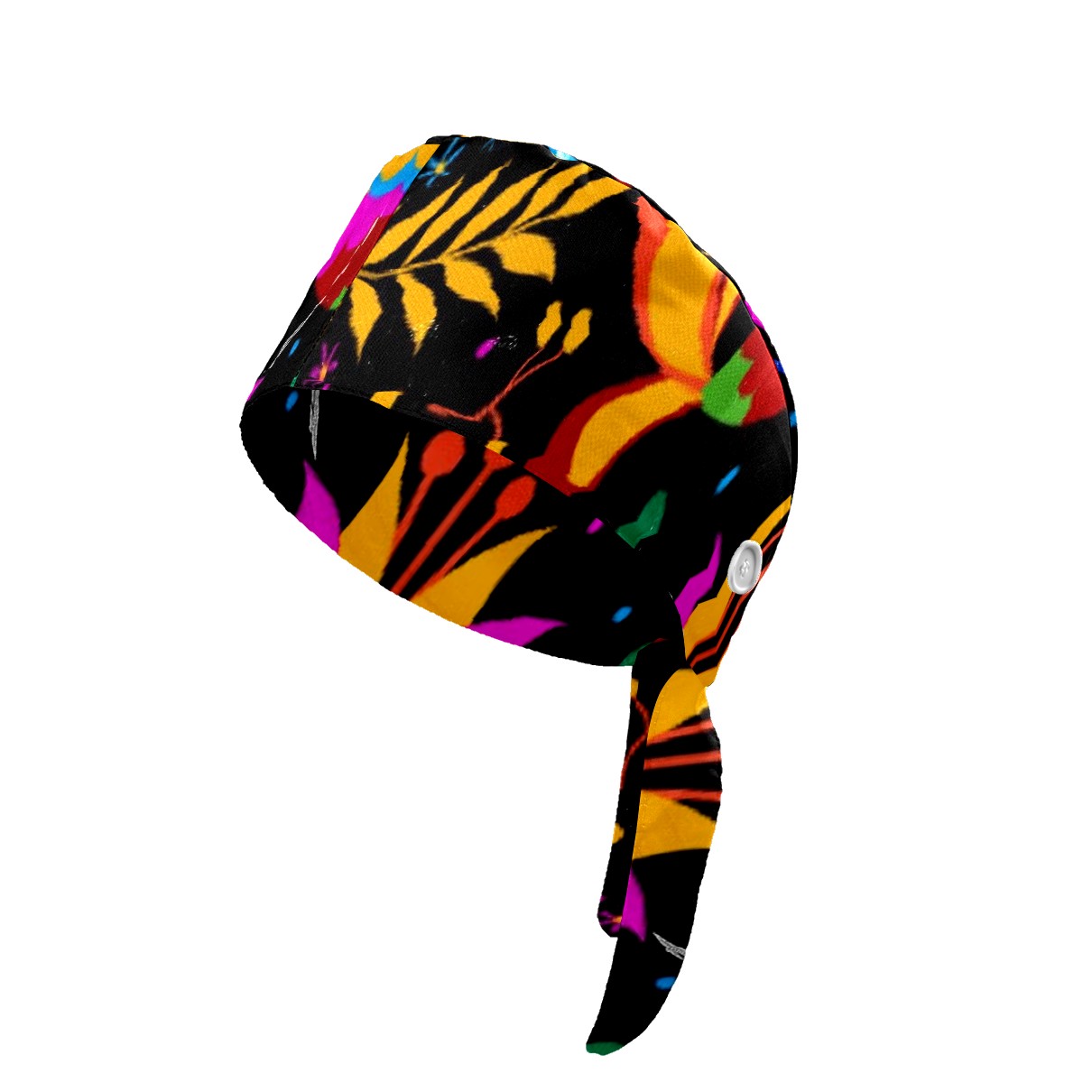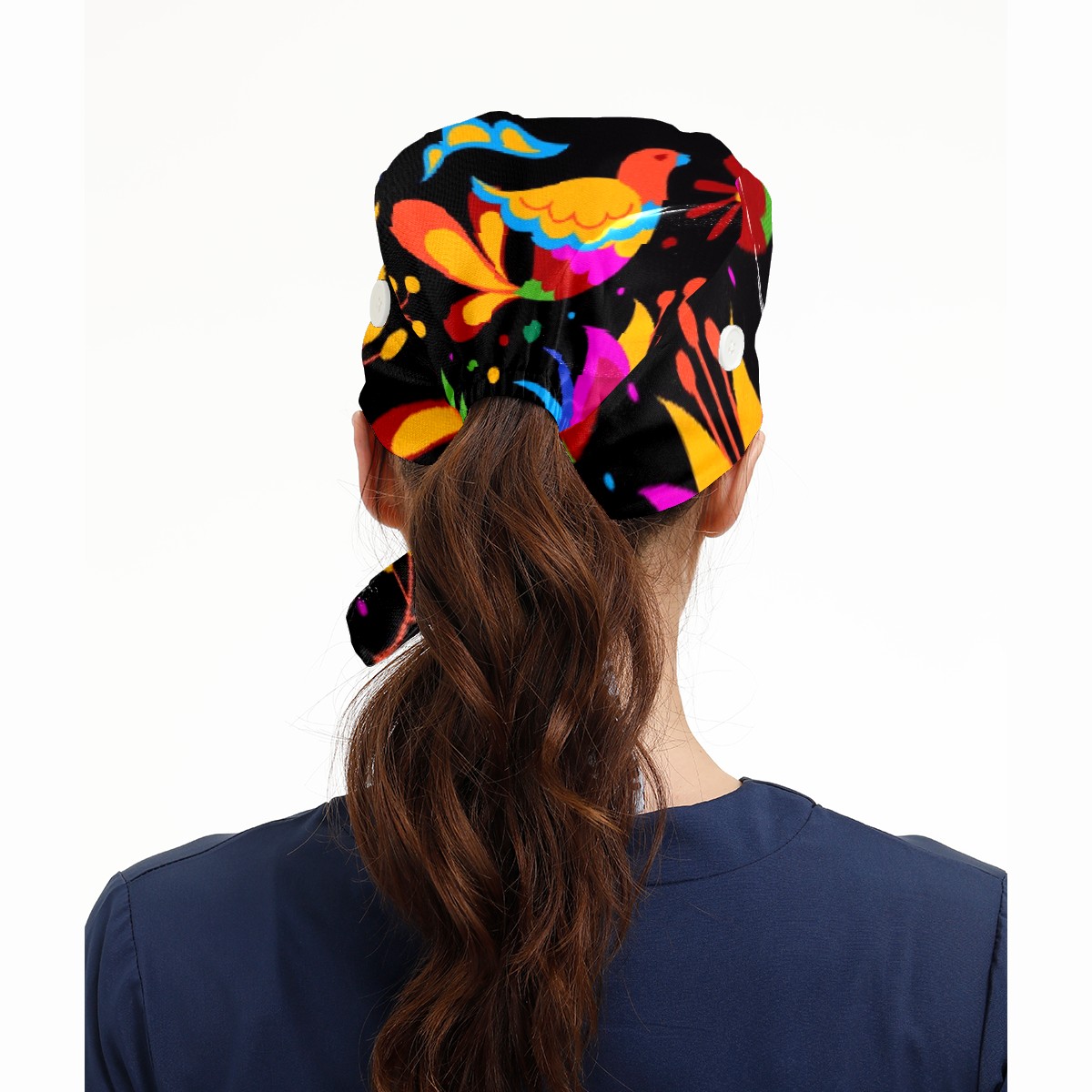 Working Caps with Button&Sweatband Satin Lined Cotton Adjustable Nurse Hats Elastic Band Scrub Cap Surgeon Hat Mexican Flowering Birds