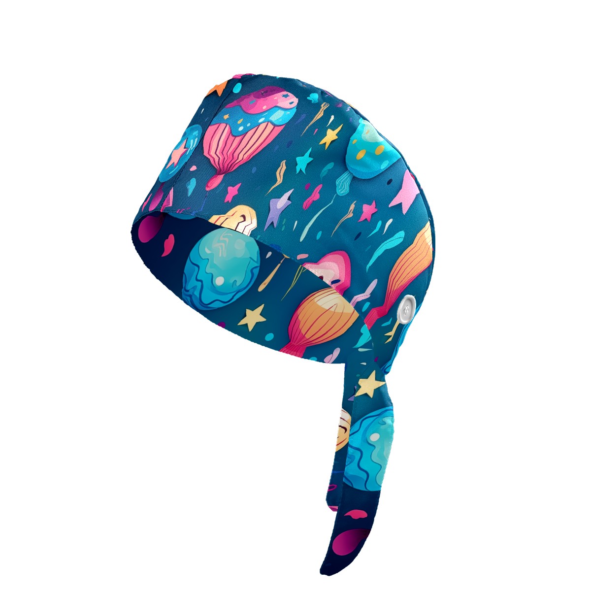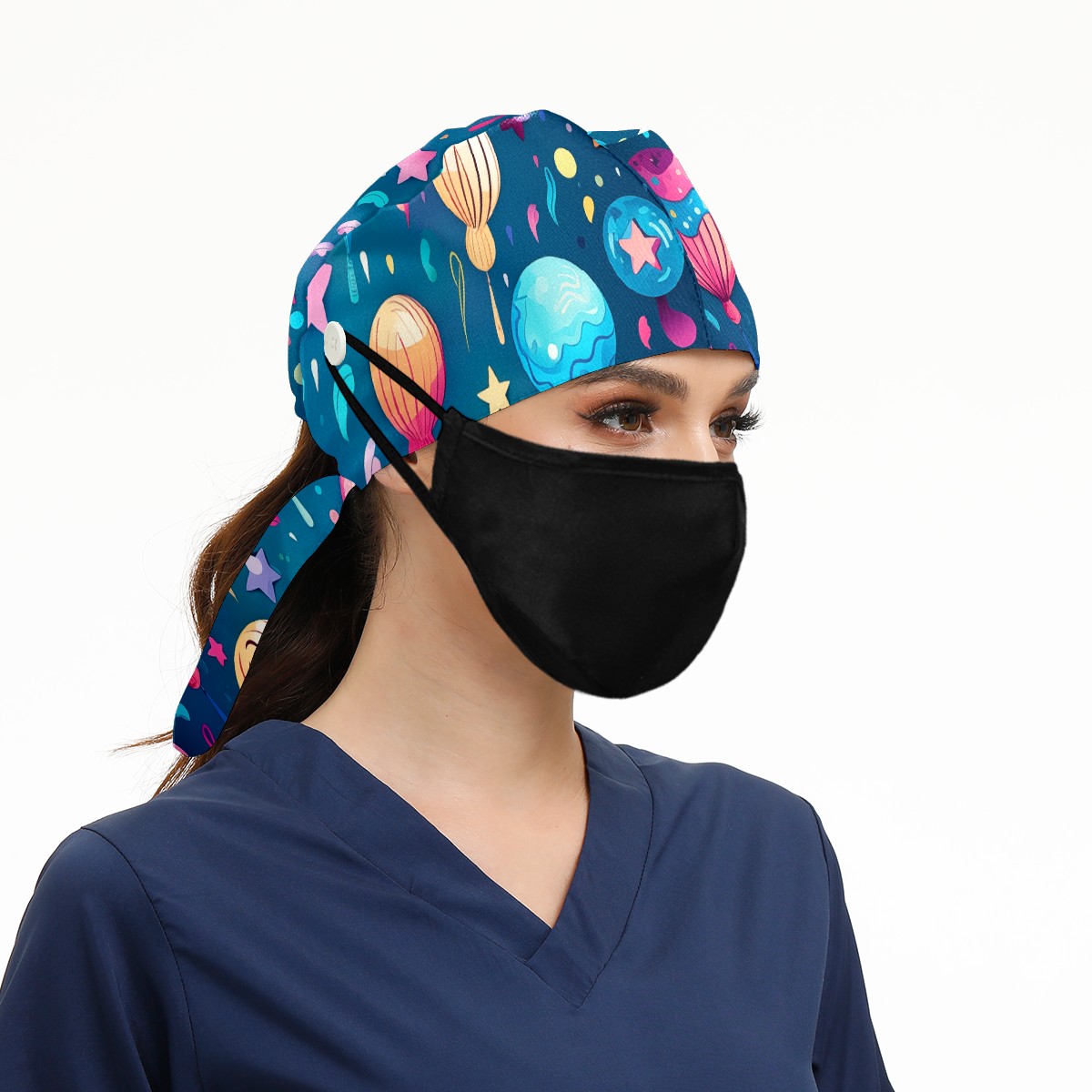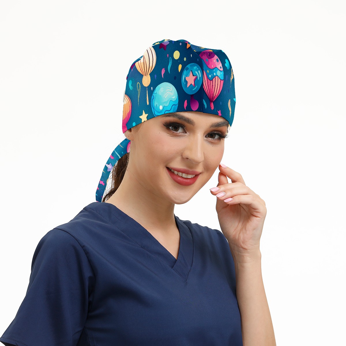Working Caps with Button&Sweatband Satin Lined Cotton Adjustable Nurse Hats Elastic Band Scrub Cap Surgeon Hat Funny Balloons